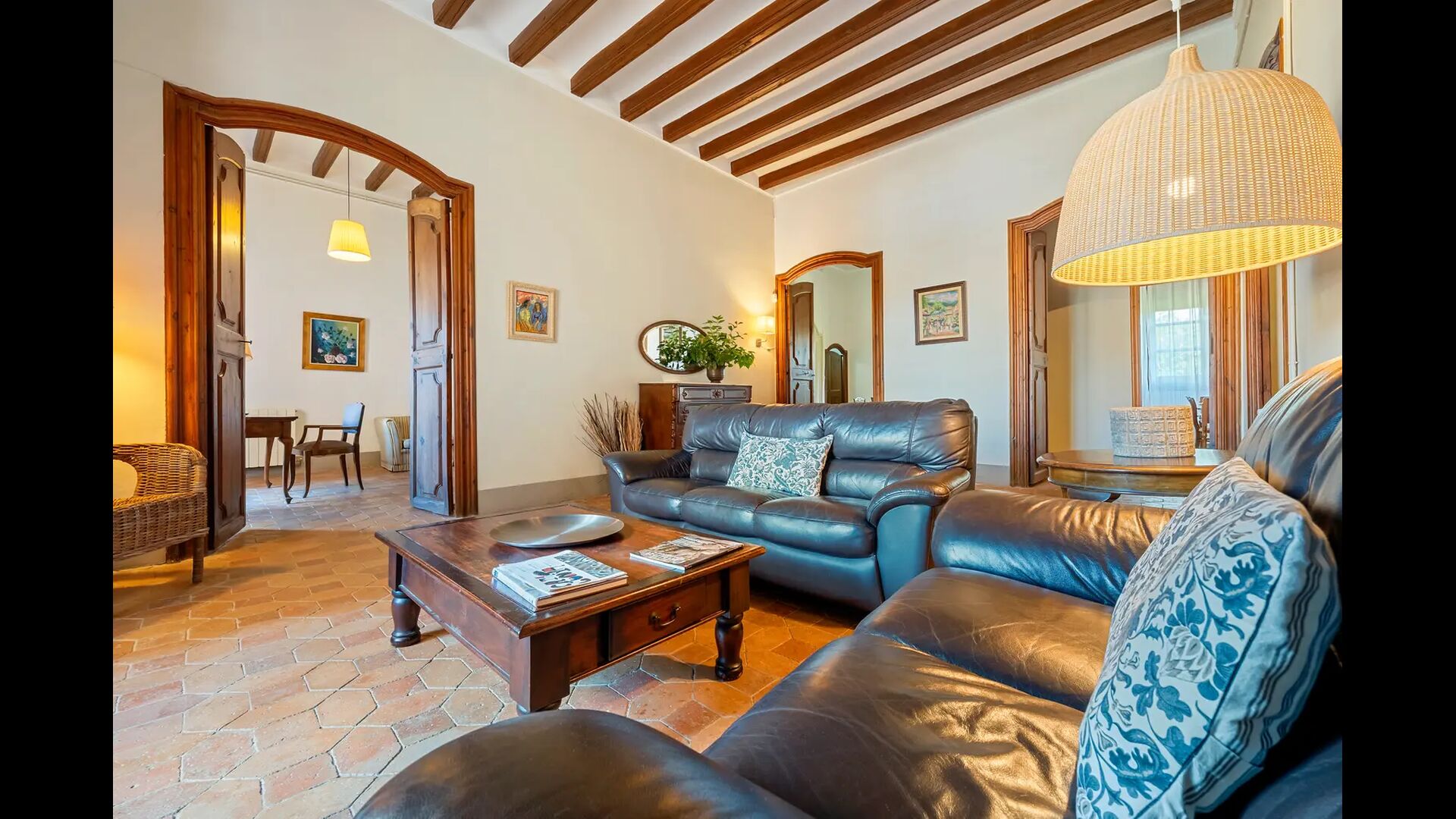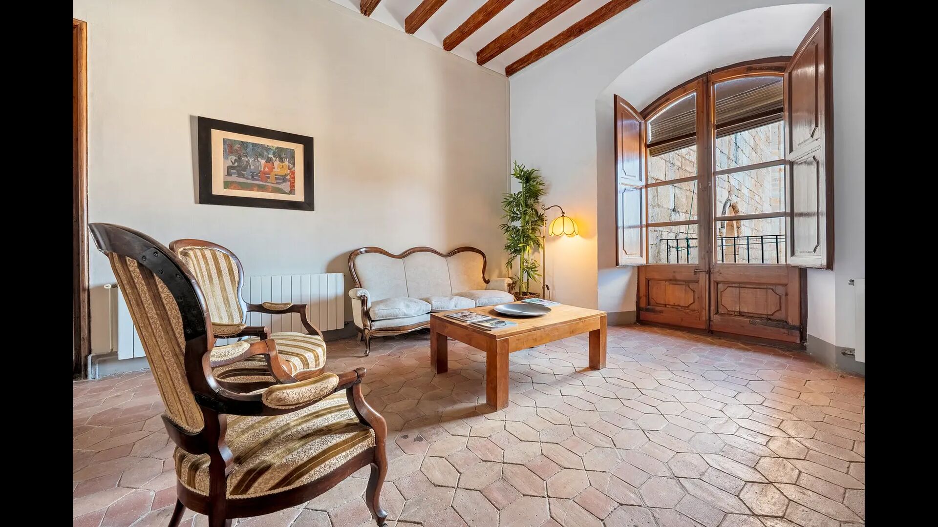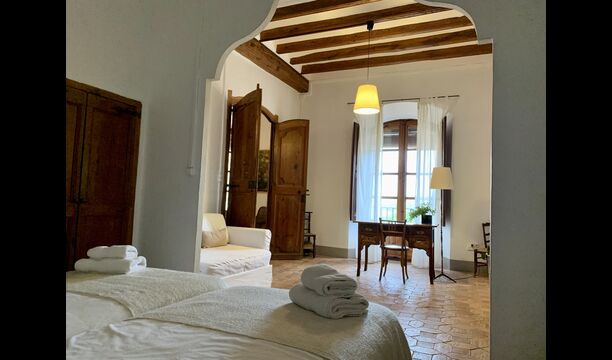 - 6 habitaciones, 3 de ellas con alcoba de 24 m2 cada una, todas con vistas a la Plaza de Jaume el Just o a las viñas.