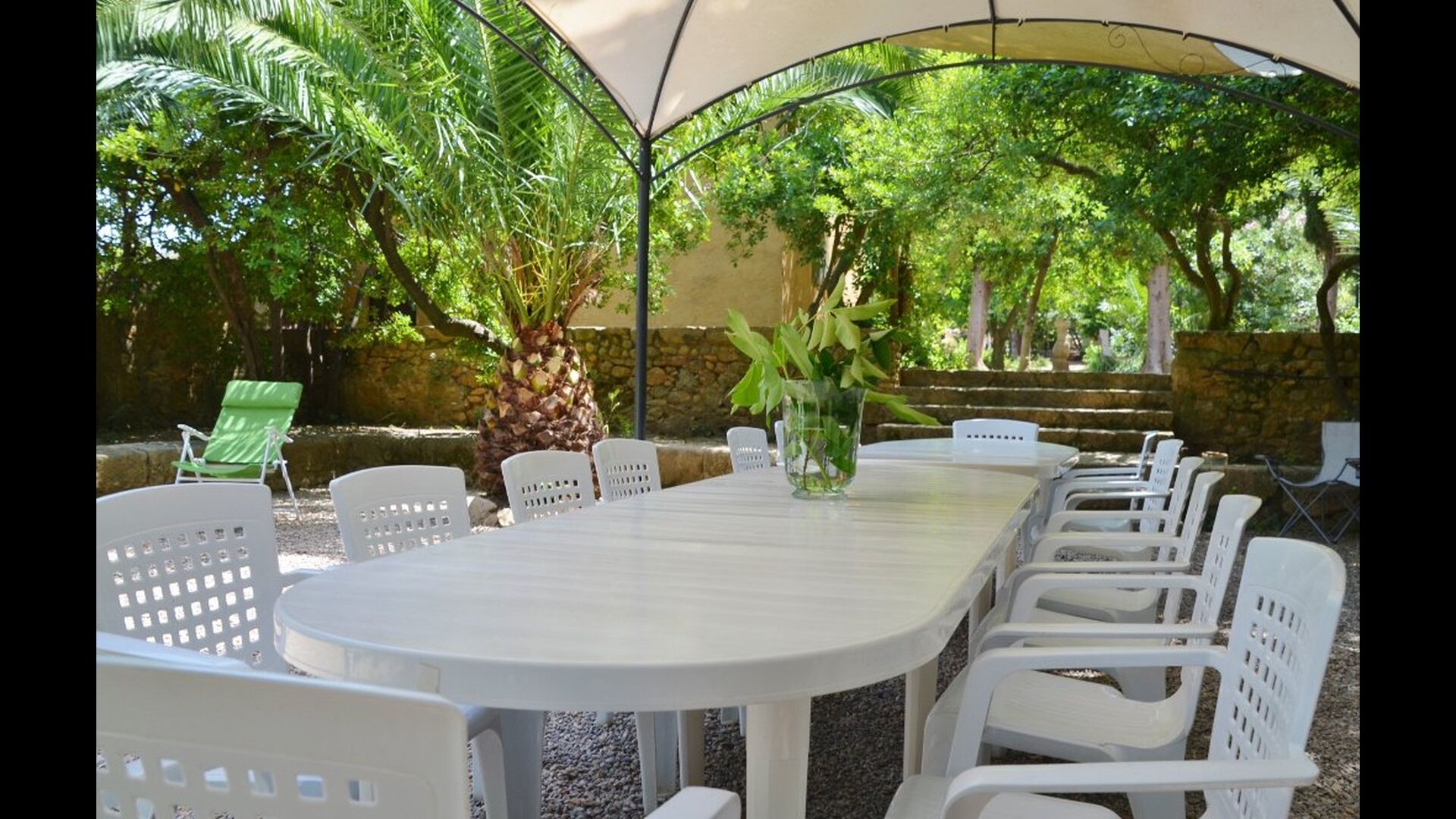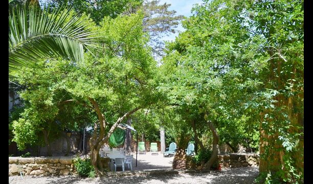 La Masia del Monestir dispone de una zona verde de unos 3.000 m2, formada por el jardín de la abadía y los antiguos huertos de "la Rambla", de "la Mare de Déu" y "el Llarg". La vegetación la forman especies básicamente arbóreas como: el laurel (Laurus nobilis), el ciprés (Cupressus sempervirens), el saúco (Sambucus nigra), el nogal (Juglans regia), etc. Una balsa y un surtidor recuerdan los dos usos que ha tenido este espacio verde, huerto y jardín.