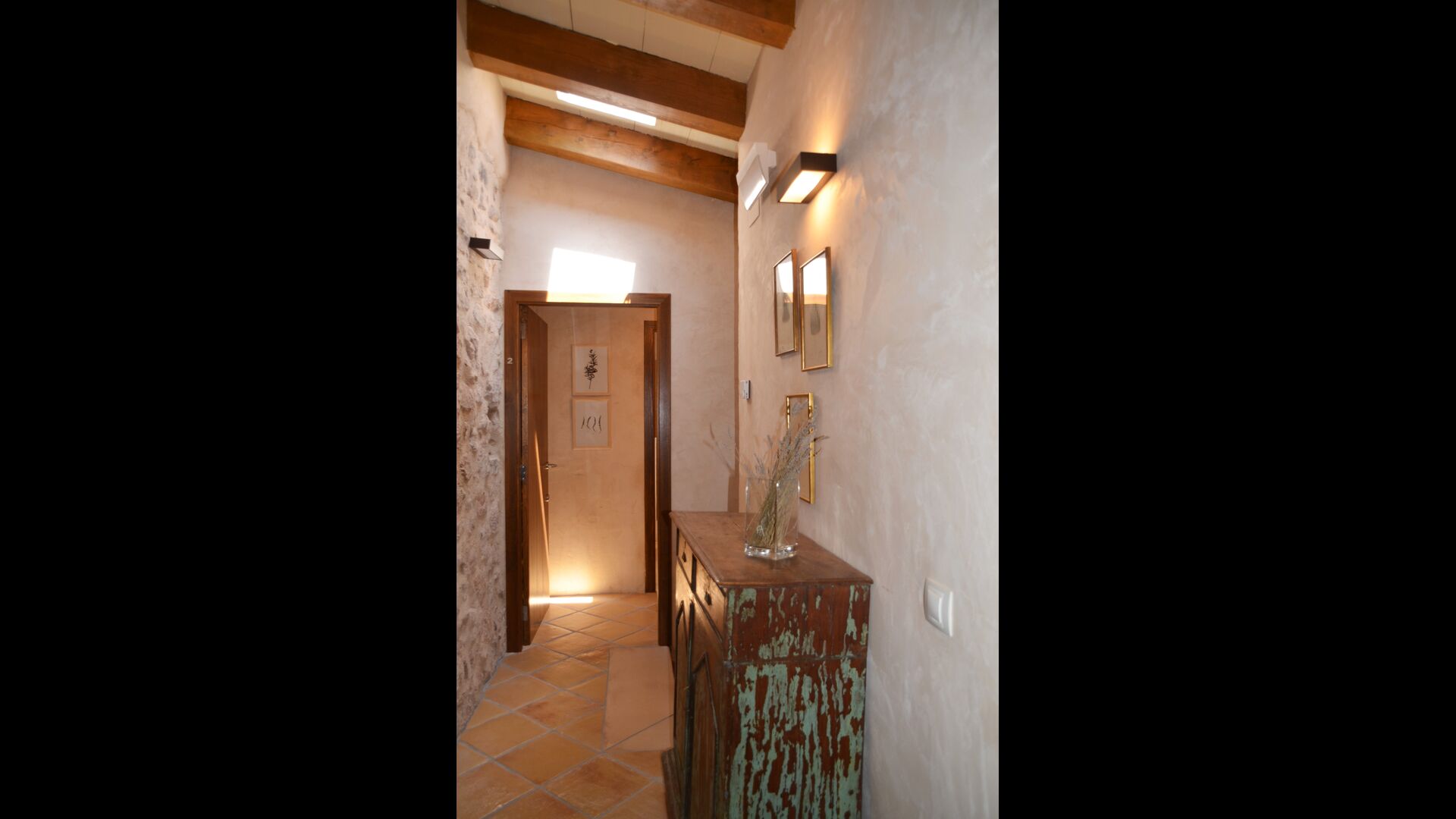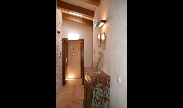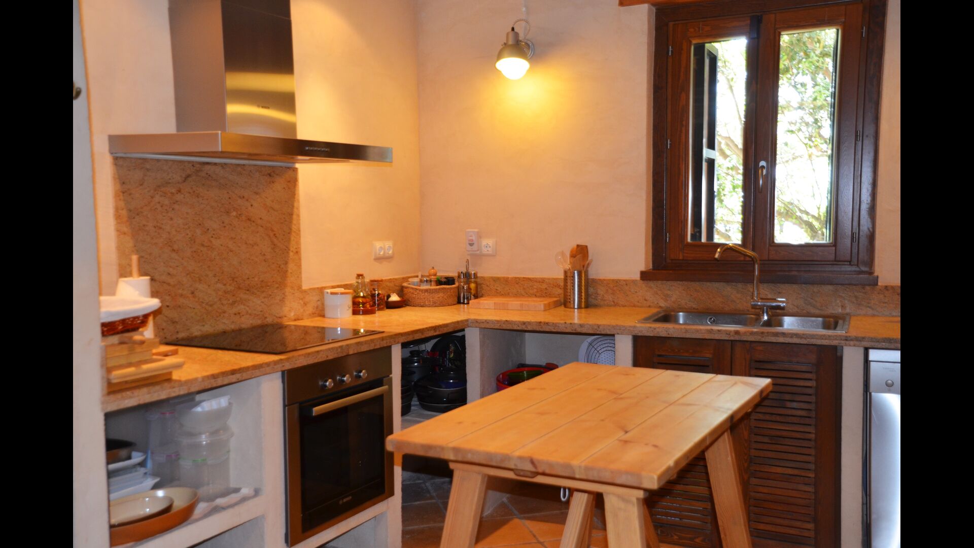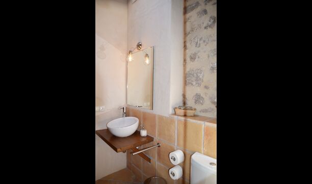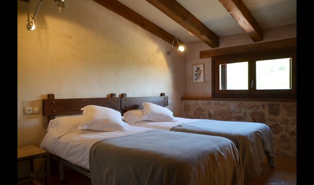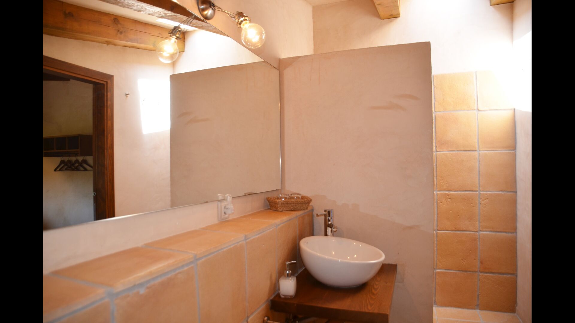 En el primer piso, se encuentran las 3 habitaciones dobles restantes, dos con camas dobles y una con dos camas individuales. Todas las habitaciones tienen baño privado. Si son más de 8 personas, hay dos camas supletorias para niños. Las paredes de piedra caliza mantienen la temperatura agradable en verano.