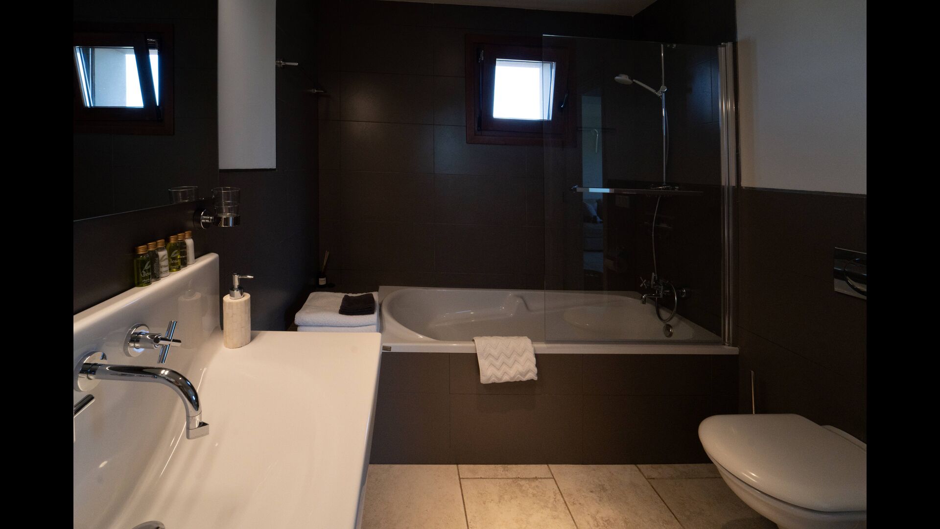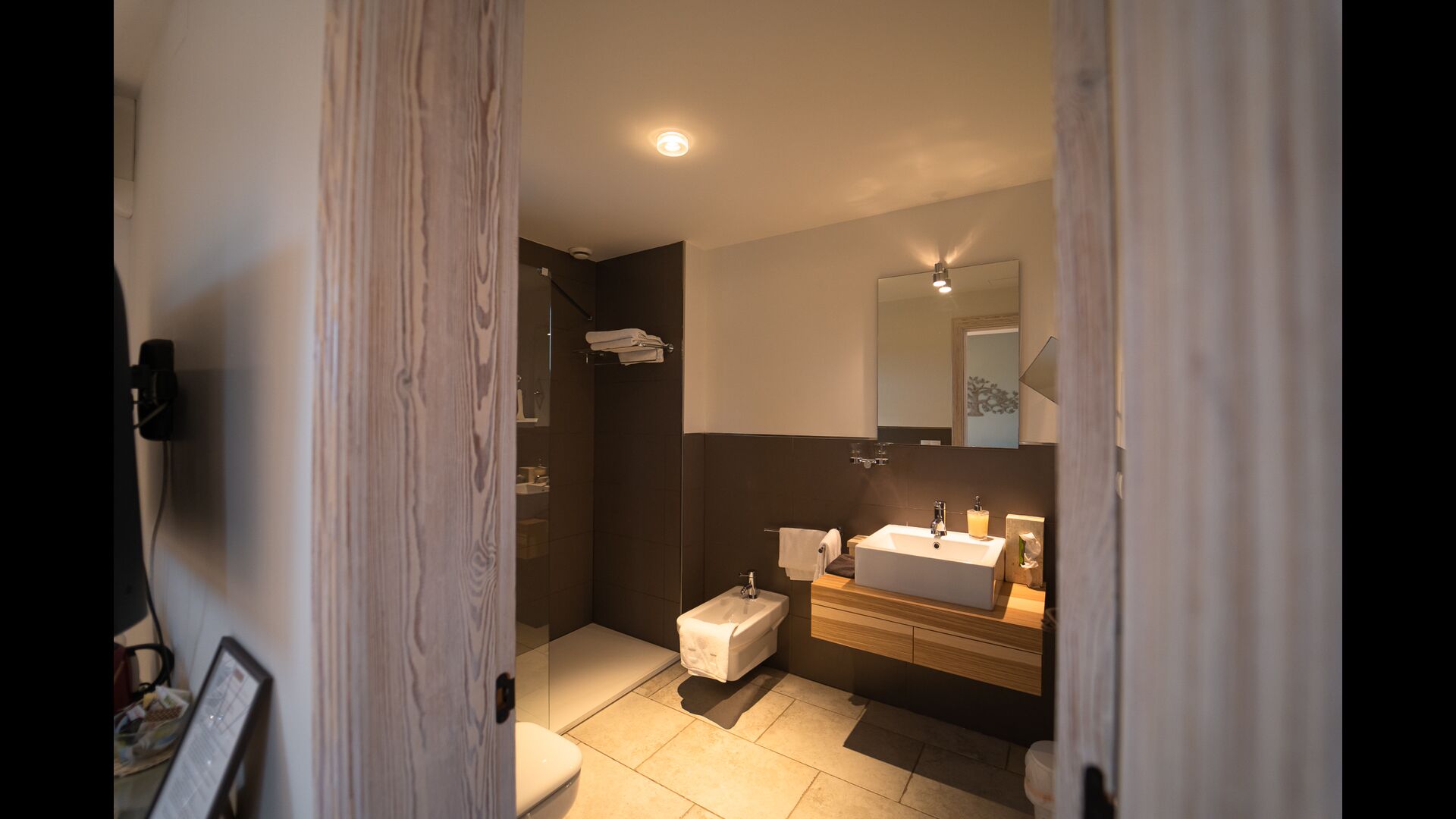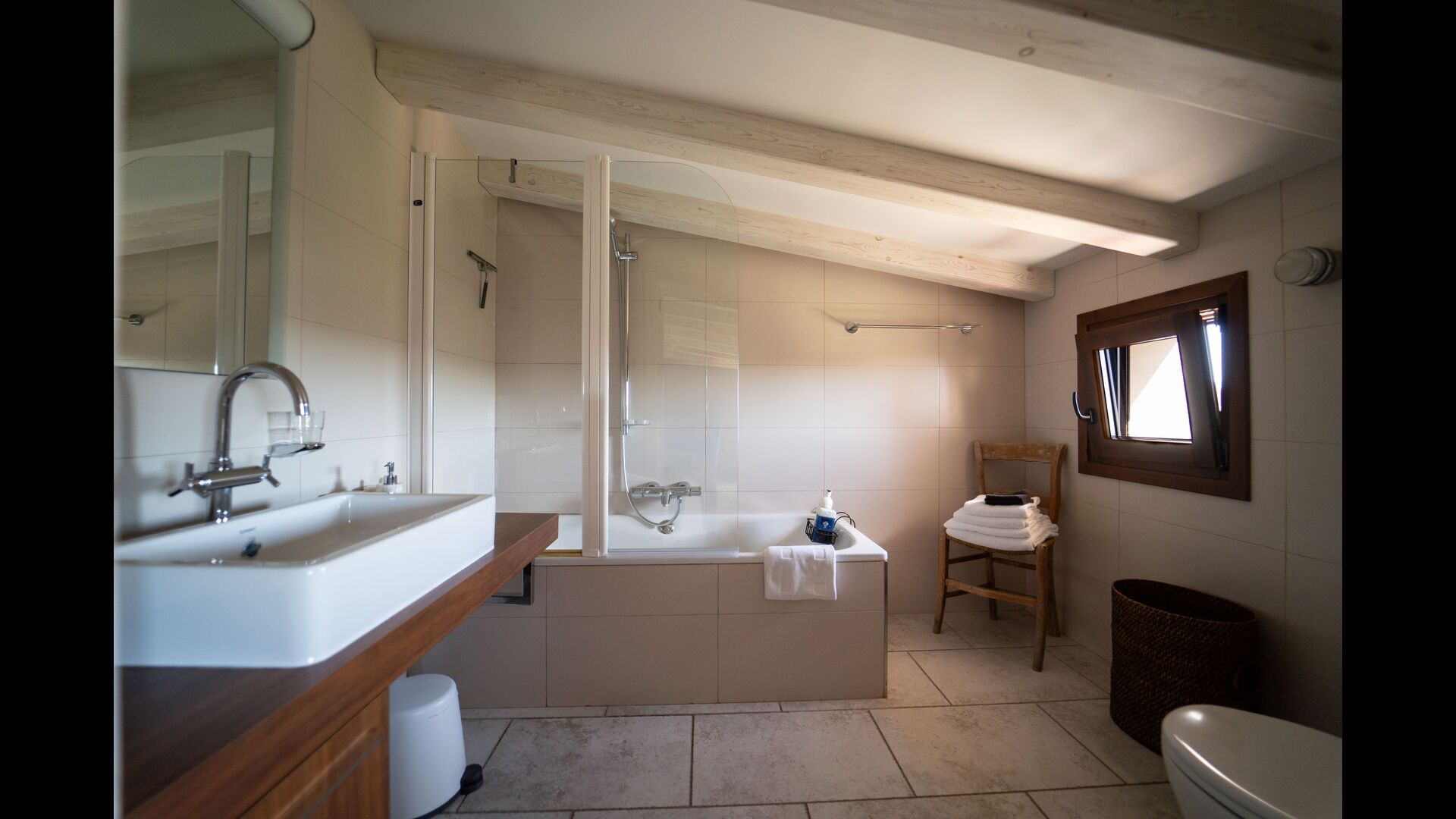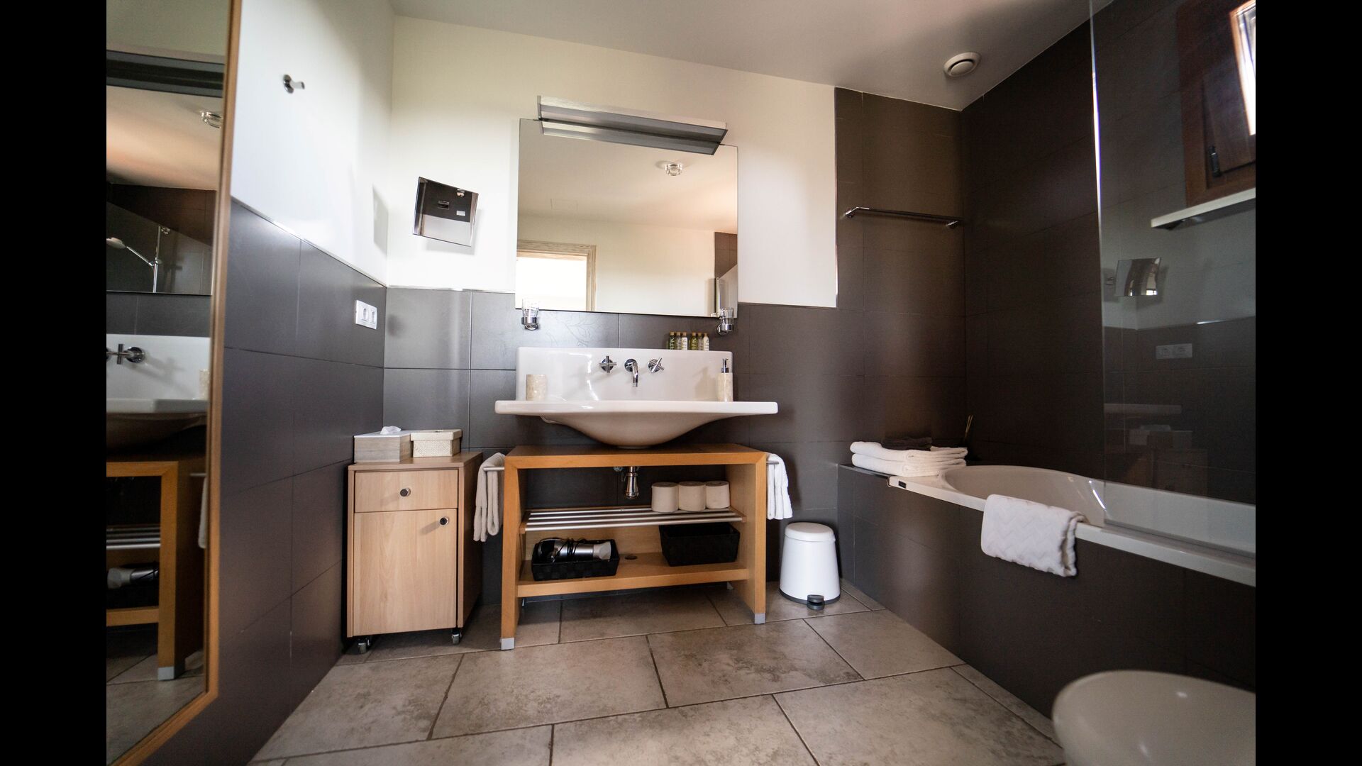 Dado Como la casa fuera de temporada también funciona como hotel/BB,todas las habitaciones son estándar de hotel. Tres de ellos son suites con sala de estar privada, y un espacio es un apartamento familiar de dos habitaciones para cuatro personas, que tiene su propia cocina. El apartamento familiar dispone de un amplio baño con bañera y dos