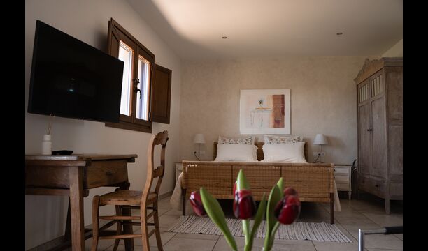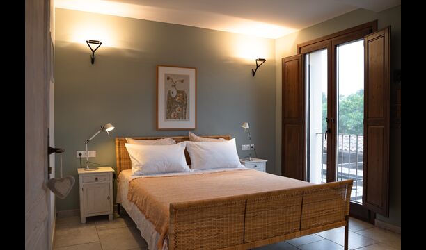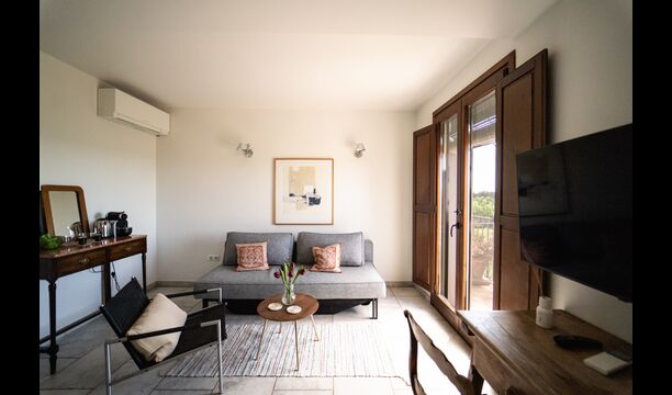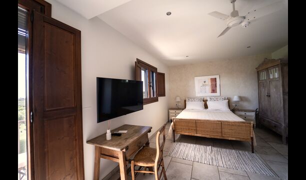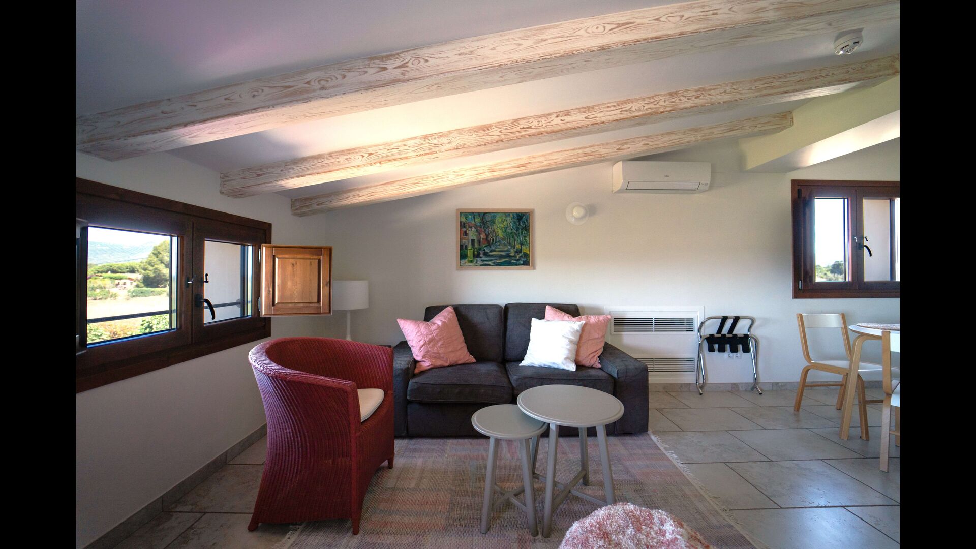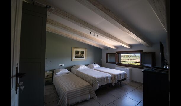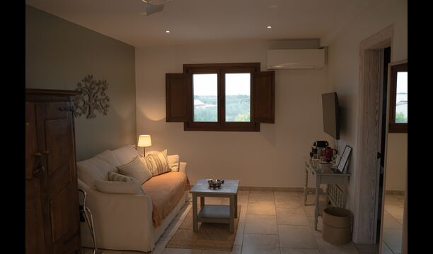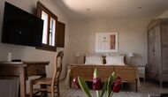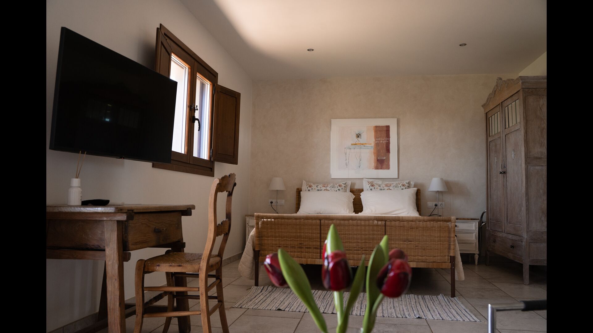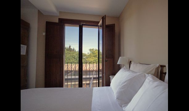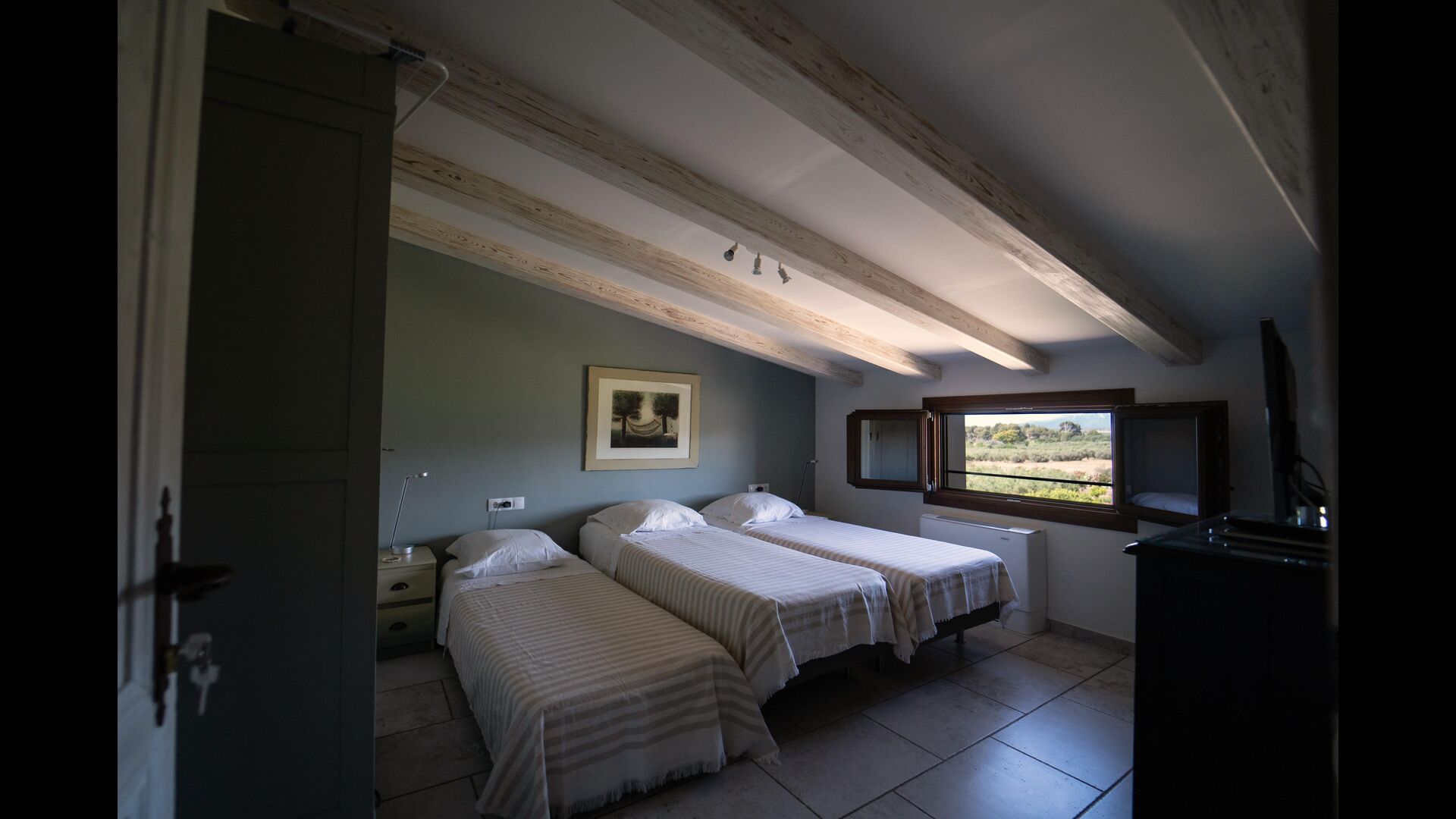 Todas las habitaciones dobles ofrecen vistas al mar Mediterráneo a lo lejos, a las montañas con la puesta de sol oa los olivares. Todas están equipadas con aire acondicionado, televisión por satélite, suelo radiante, wifi, ; café Nespresso y baño privado. El mobiliario de cada habitación es una mezcla inteligente de lo antiguo y lo moderno, creando un ambiente de muy buen gusto.