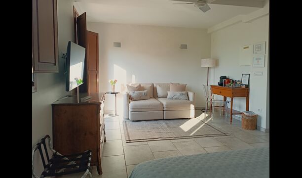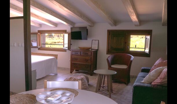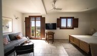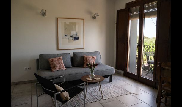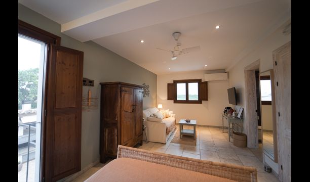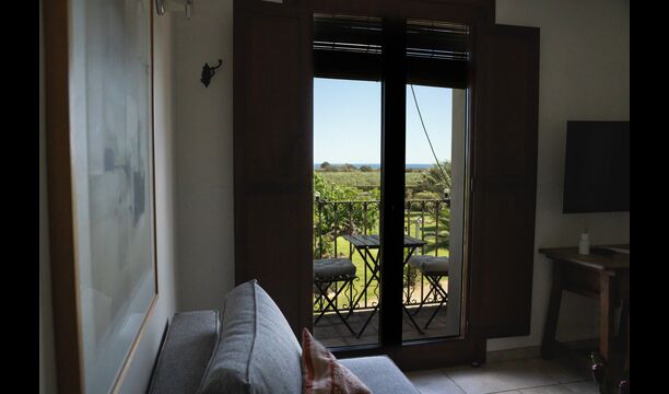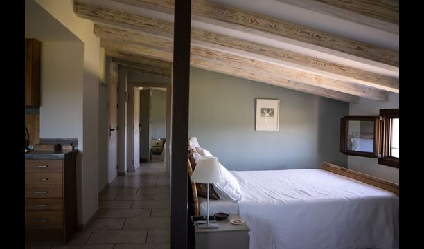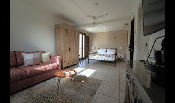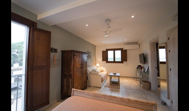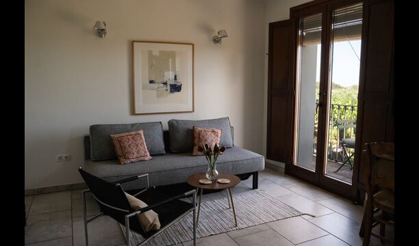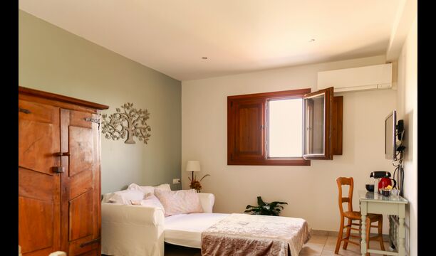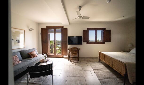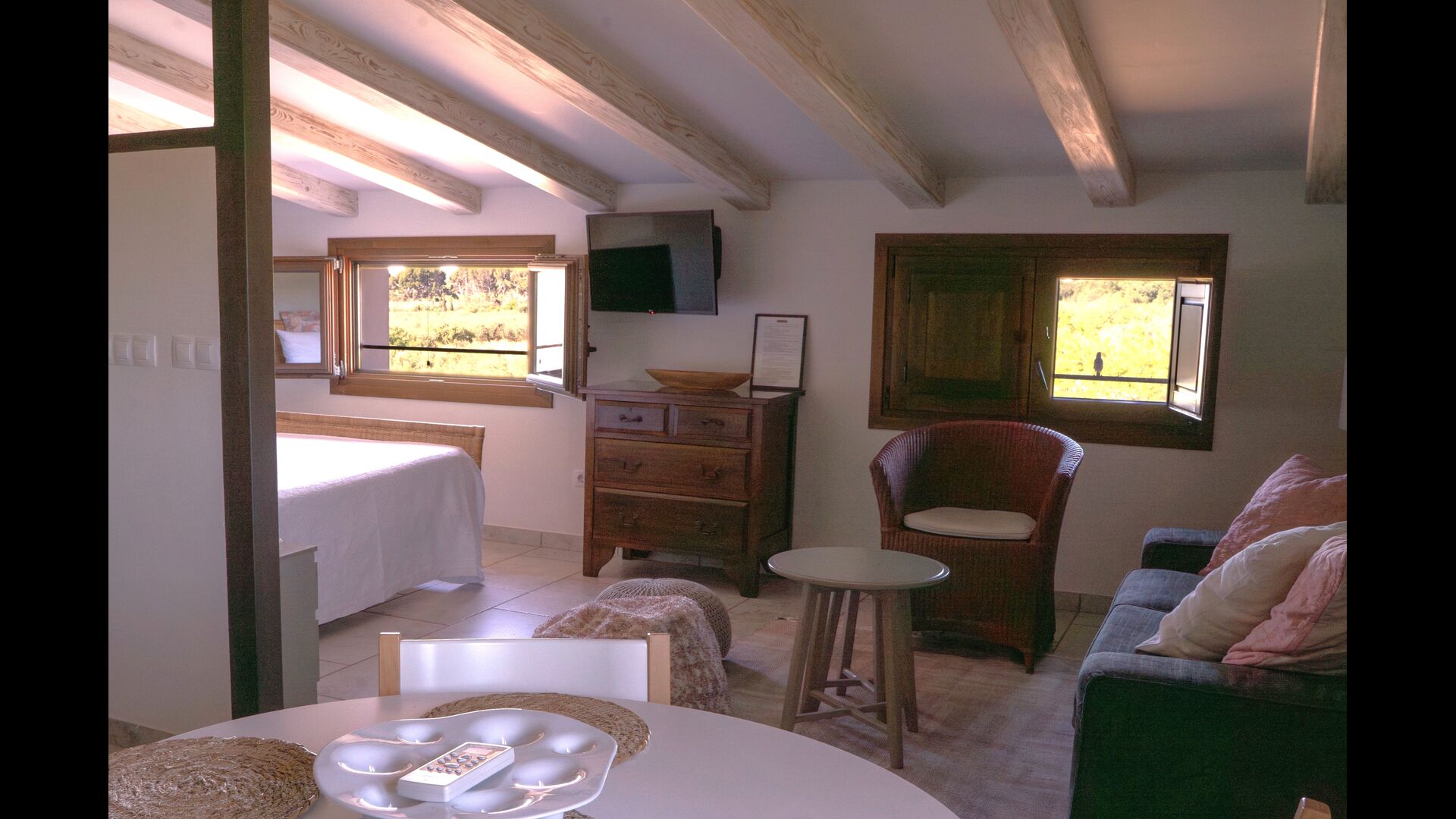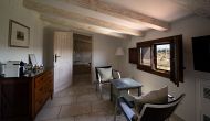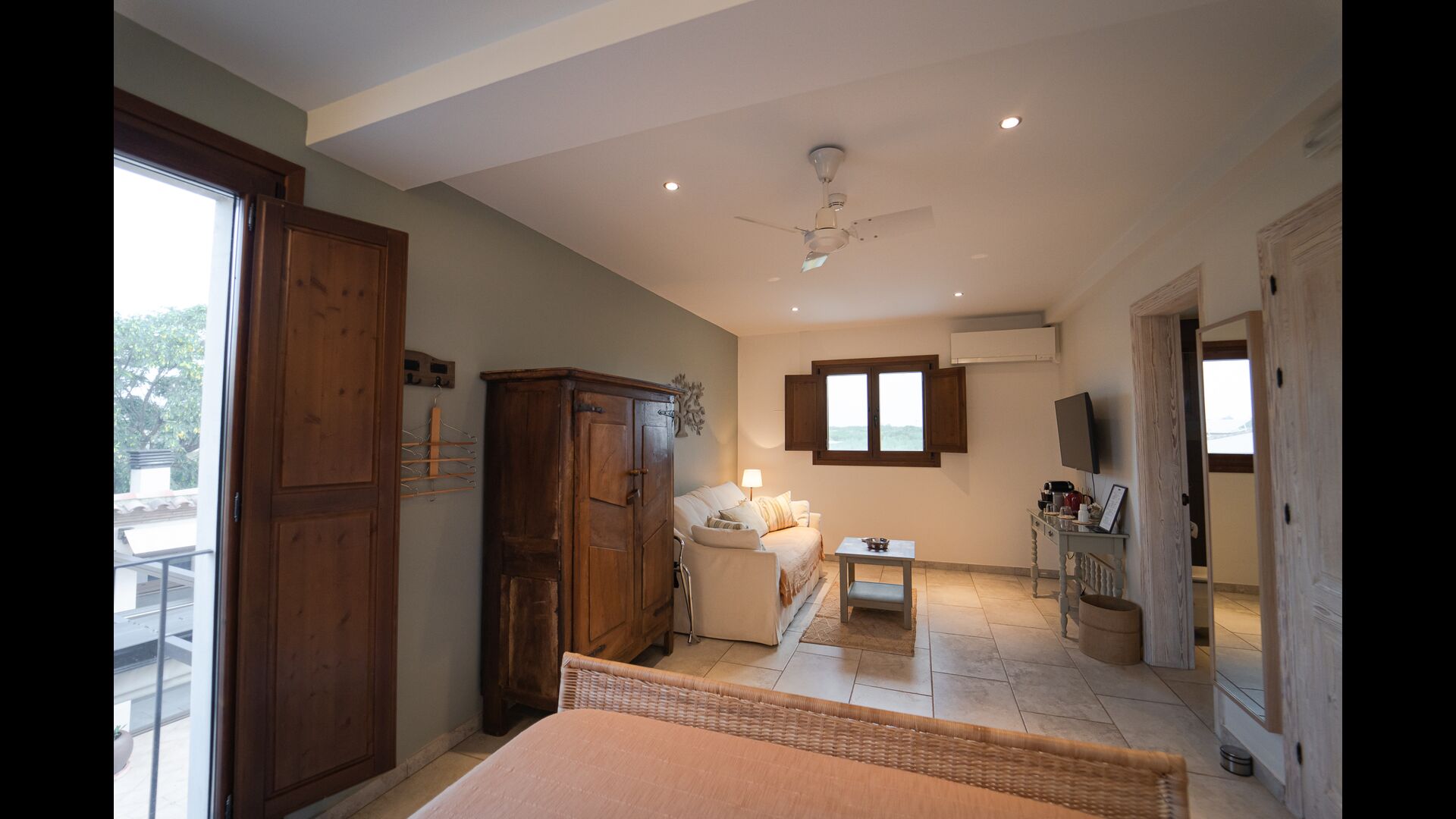 Todas las habitaciones dobles ofrecen vistas al mar Mediterráneo a lo lejos, a las montañas con la puesta de sol oa los olivares. Todas están equipadas con aire acondicionado, televisión por satélite, suelo radiante, wifi, ; café Nespresso y baño privado. El mobiliario de cada habitación es una mezcla inteligente de lo antiguo y lo moderno, creando un ambiente de muy buen gusto.