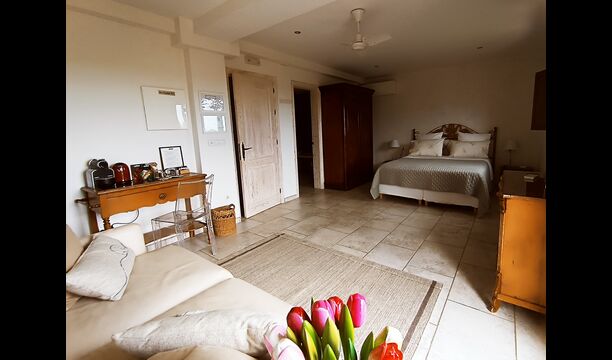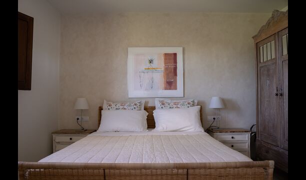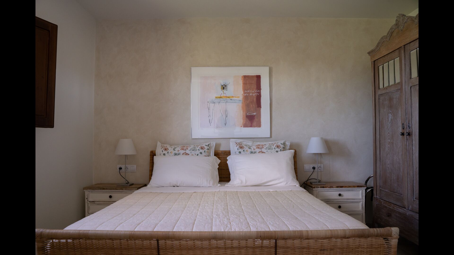 Este hermoso dormitorio es el hermano gemelo del dormitorio 1. Es un dormitorio superior, lo que significa que es uno de los más bonitos y grandes de la casa. El dormitorio está orientado al sur y tiene bonitas vistas al jardín hasta el balcón. el mar El dormitorio es aireado y luminoso y tiene un pequeño balcón.