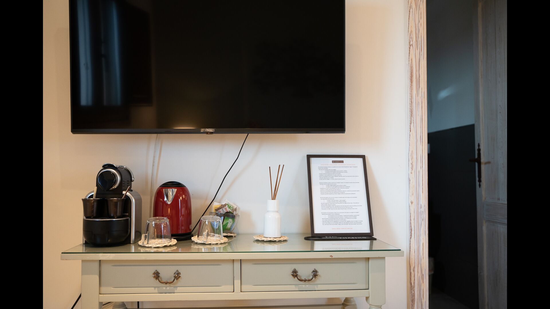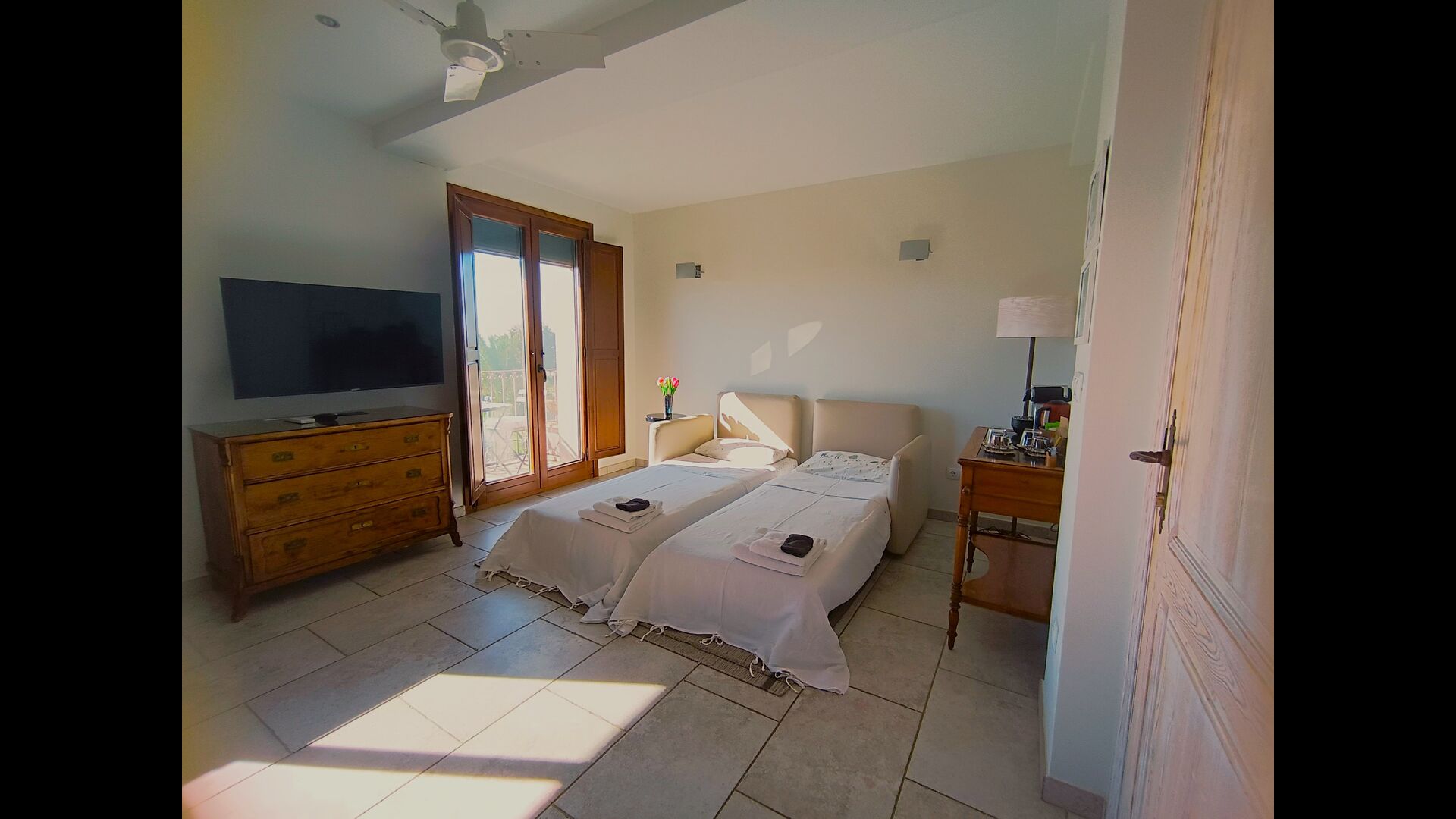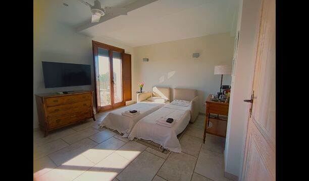 La habitación 7 es una habitación doble con 2 camas individuales de 0,80 x 2,00 m y una segunda TV. Bajo petición, el propietario añade una cama supletoria en este segundo dormitorio.