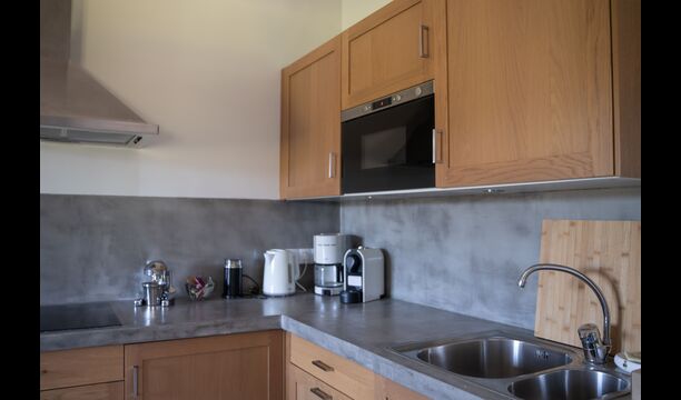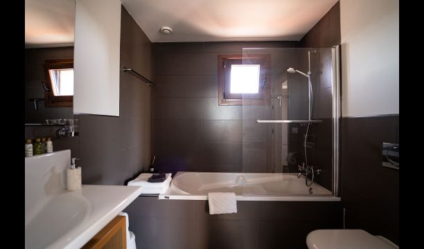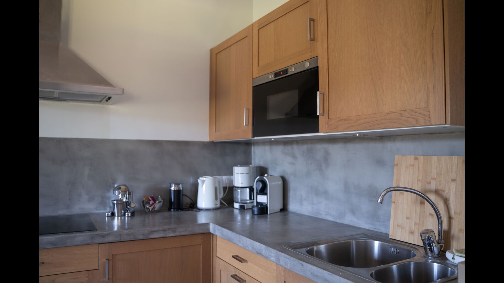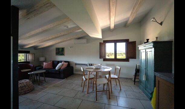 El dormitorio 6 y el dormitorio 7 se encuentran en un luminoso apartamento de dos habitaciones de 53 m2 en el segundo piso de la casa. Ofrece impresionantes vistas de las montañas y la puesta del sol y está orientado; oeste El apartamento tiene una sala de estar, TV vía satélite, una cocina totalmente equipada con vitrocerámica. 4 fogones, un horno microondas y un frigorífico, una lavadora. café Nespresso y una tetera, y una mesa de comedor. comedor con 4 sillas.
