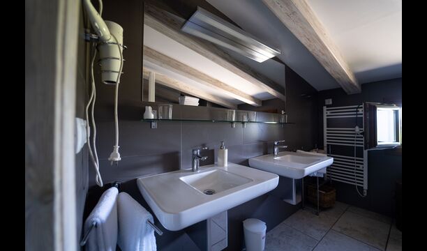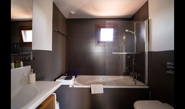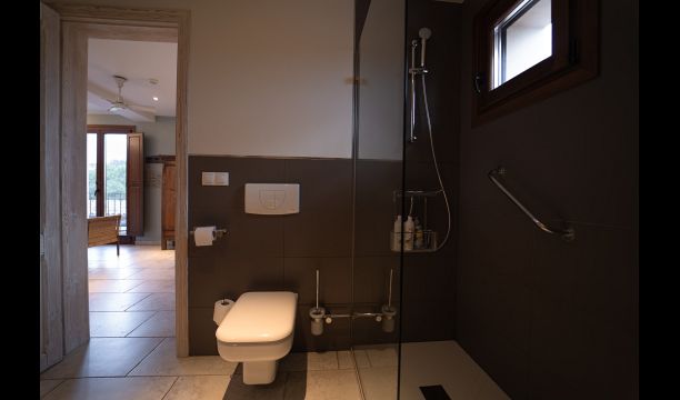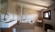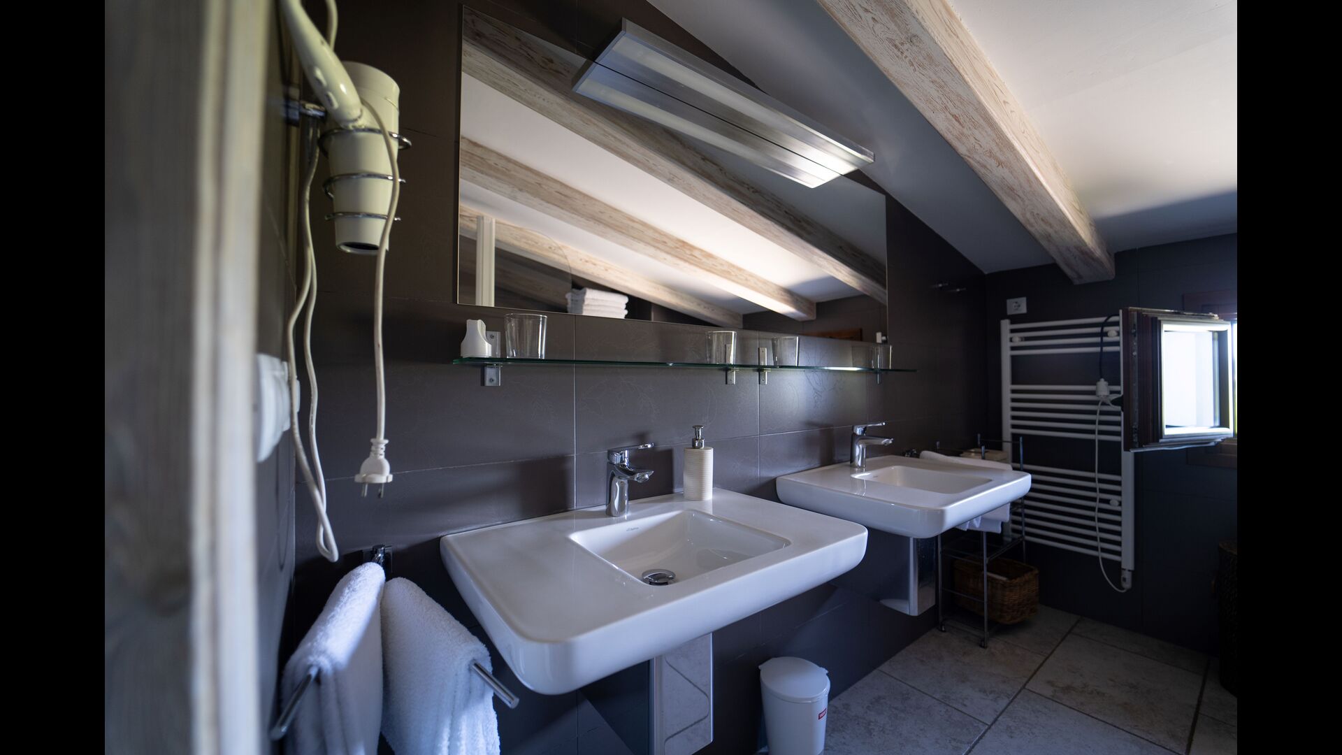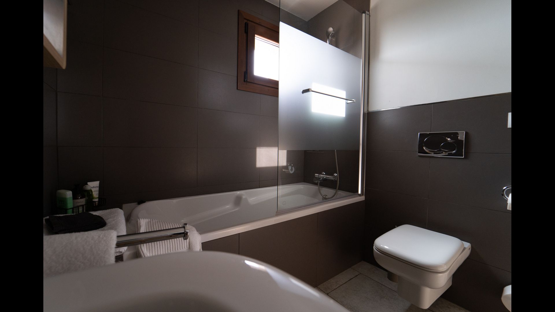 Comparten baño equipado con bañera, wc, dos lavabos, wc, secador de pelo, espejo de aumento y artículos de aseo gratuitos. Accesible por escaleras.
