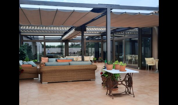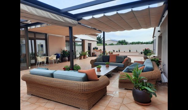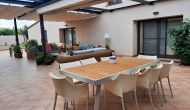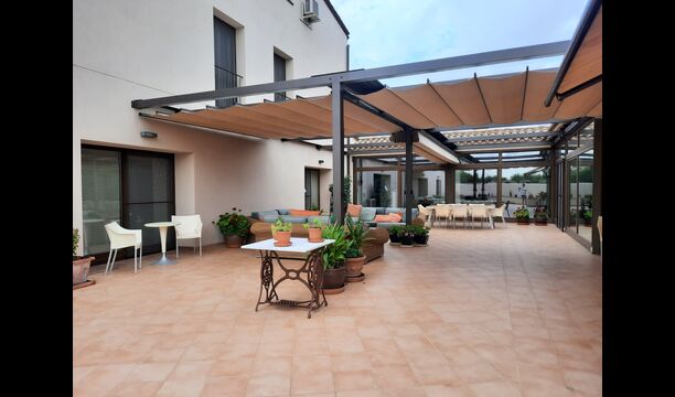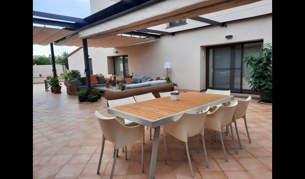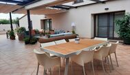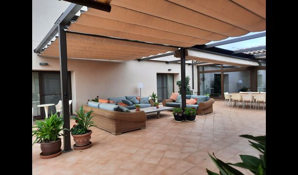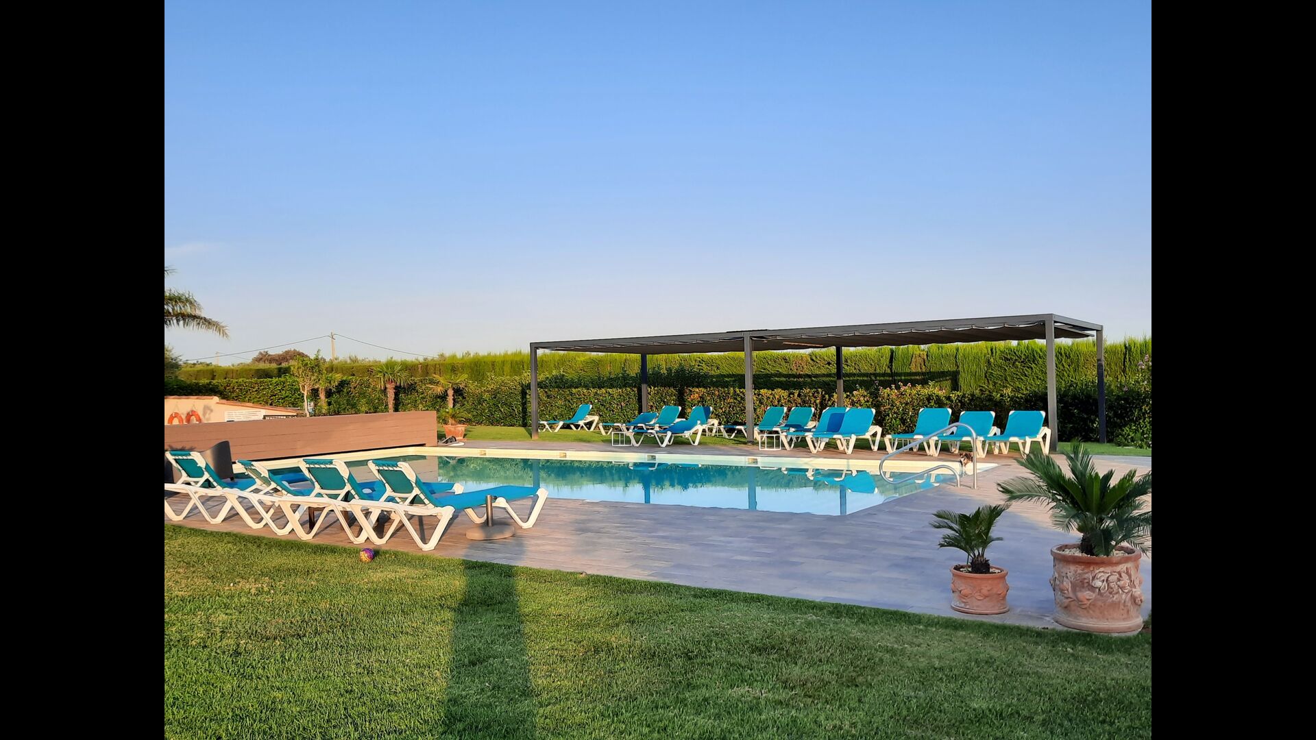 hornos (incluido un horno de vapor), 2 lavavajillas, dos refrigeradores y mucho más. la cocina y desde la cocina se accede al patio cerrado con barbacoa, zona de estar y mesa de comedor. comer, que se puede cubrir con grandes toldos. Si elige cenar en; el interior, la sala de estar; comer desde casa se adapta perfectamente; tu grupo.