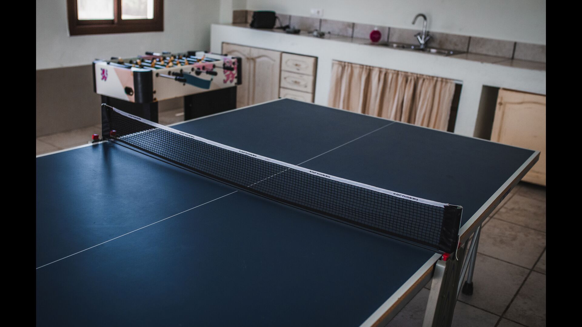 À Masía Montbello, hay también un pequeño gimnasio, biblioteca con una amplia selección de libros de mesa, Wi-Fi gratuito en todas las habitaciones y zonas comunes,< fuerte> lavadora, secadora y plancha.Aparte de la casan, hay una sala de juegos con mesa de ping-pong, juegos de mesa, pelota de fútbol y juguetes para los niños. Al lado desde la sala de juegos hay un trampolín incorporado seguro. en el suelo. En el jardín hay un campo de fútbol de 300m2 esperando a padres e hijos para jugar sus partidos de fútbol.