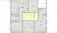 Un amplio dormitorio doble con dos camas individuales de 0,90 x 2,00 y un sofá cama, al norte de la