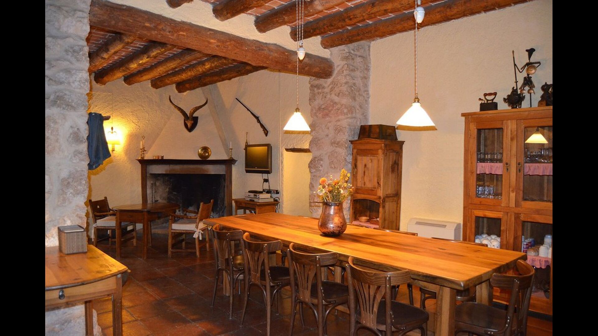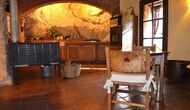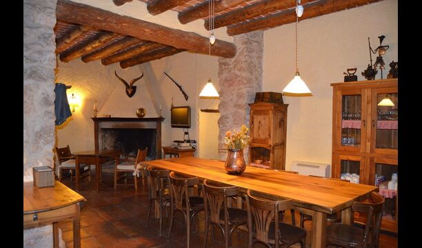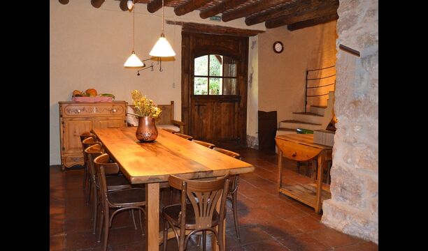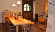 Al ser un molino de agua, el agua pasa por debajo del edificio, y en la parte más baja, la maquinaria sigue ahí. Aquí también hay un aseo y una pequeña cocina, se ha instalado una barbacoa y se ha instalado una mesa larga, como alternativa a comer fuera o en el comedor.