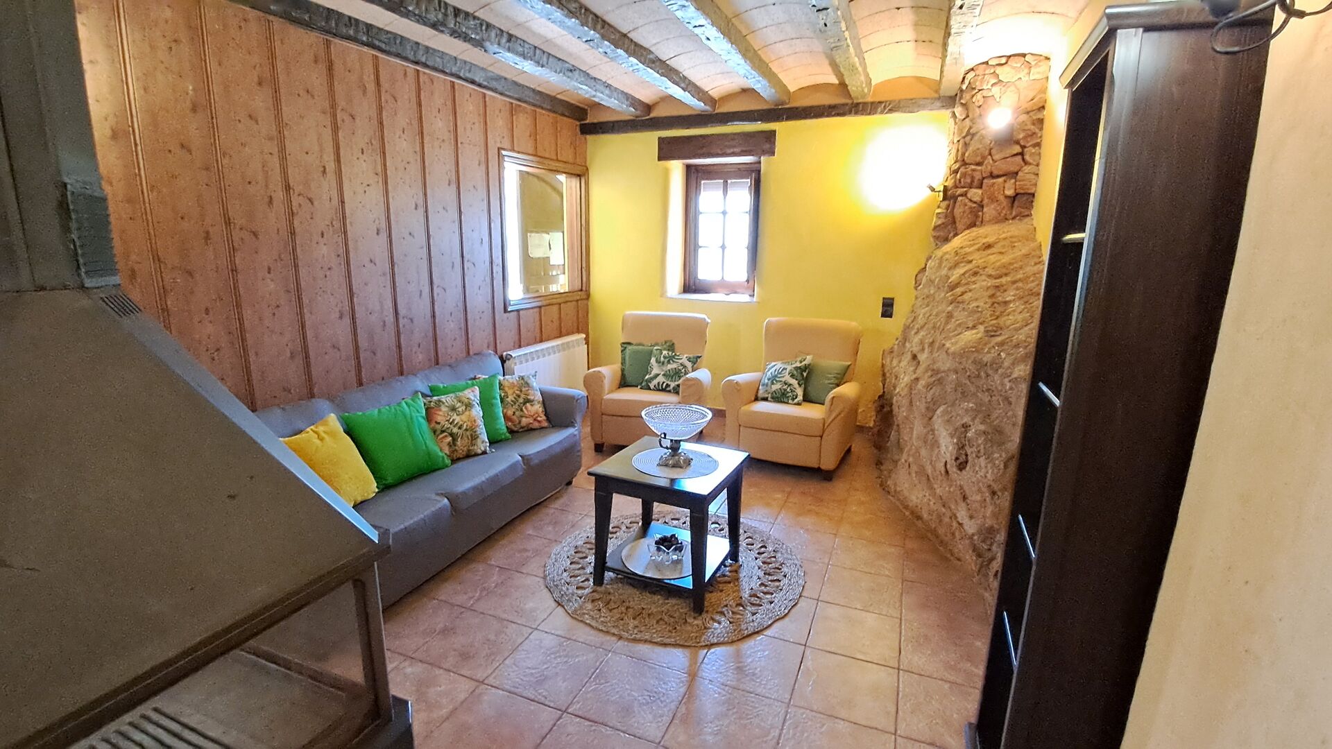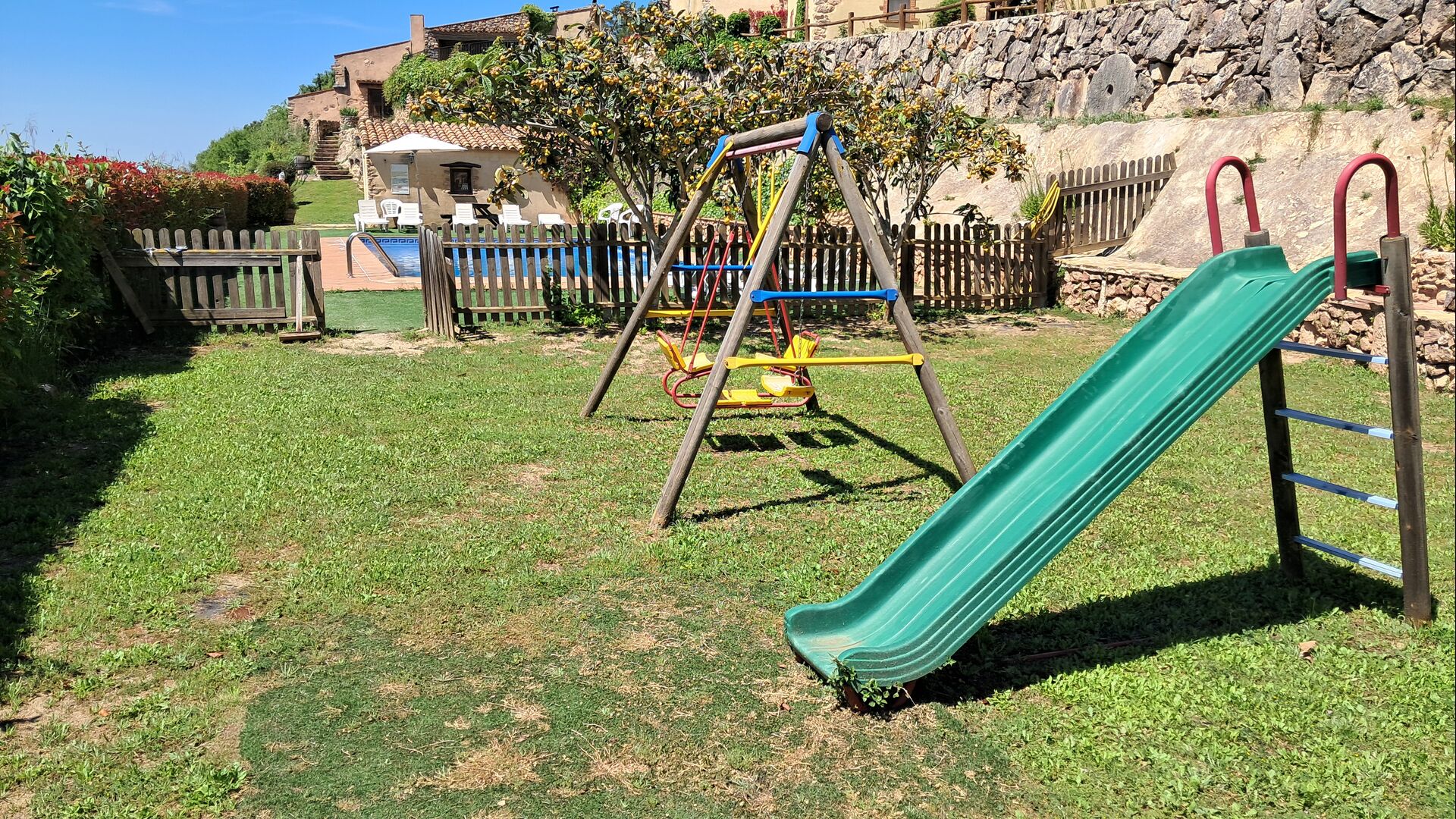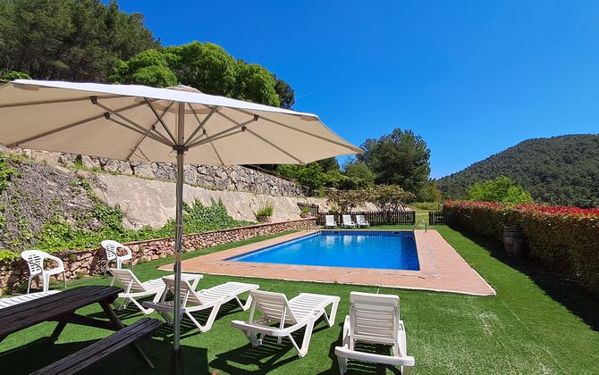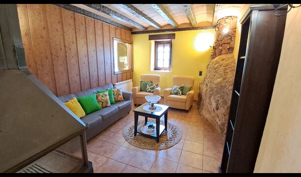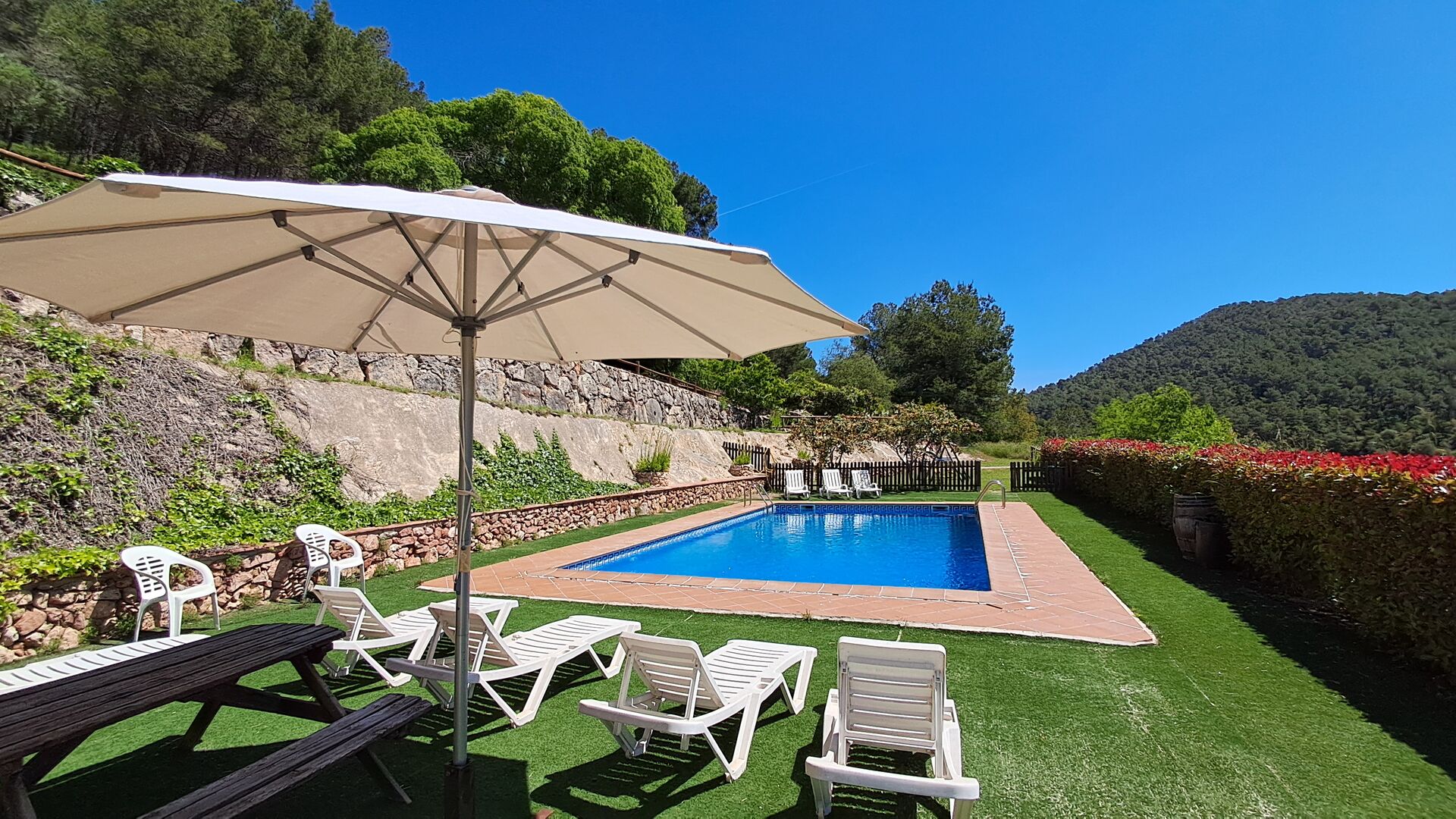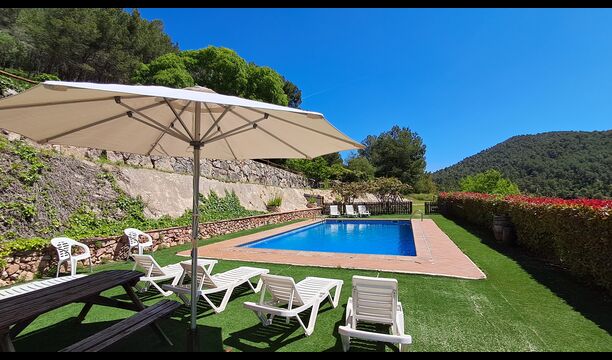 La casa ha sido completamente renovada y modernizada hasta el más mínimo detalle, respetando la estructura original de la típica casa de campo catalana. Ahora tiene una capacidad de hasta 11 + 2 personas. La casa está perfectamente estructurada, la planta baja es una sala común muy espaciosa con una excelente cocina moderna, un comedor con mesa de comedor y un área de sofá con TV, DVD y chimenea. En esta planta hay un dormitorio con una cama individual y una litera y un baño. También hay acceso directo a la terraza con barbacoa en el jardín, lo cual es muy conveniente cuando se quiere cenar al aire libre en los cálidos veranos catalanes.