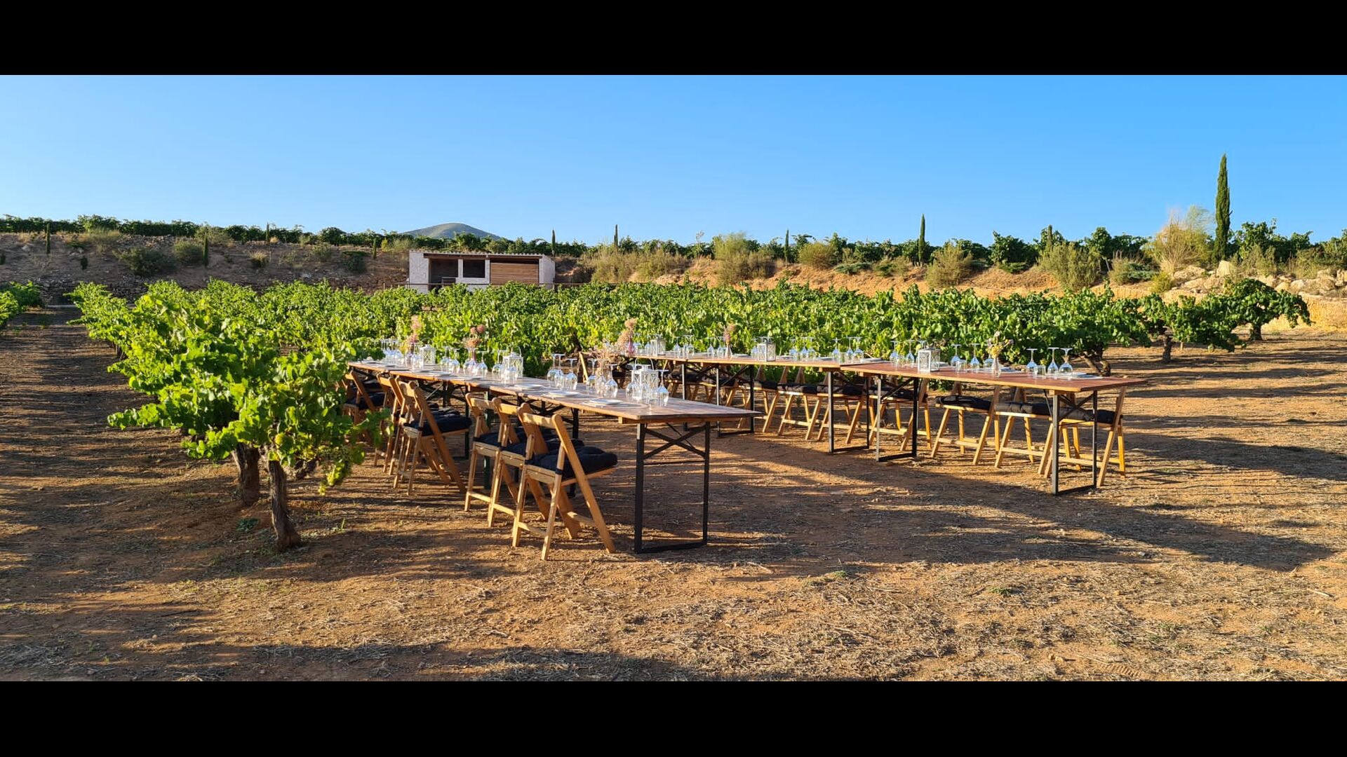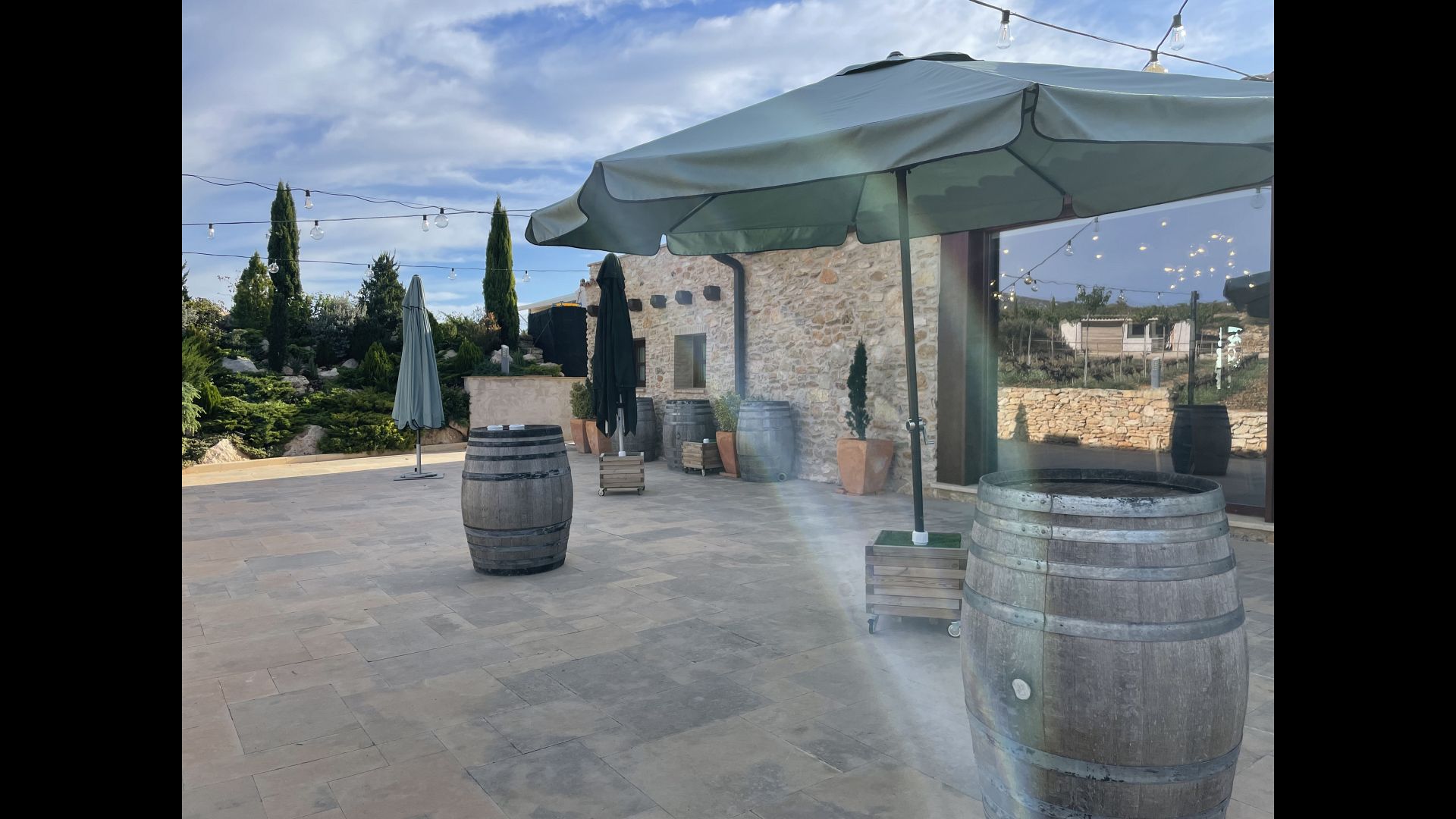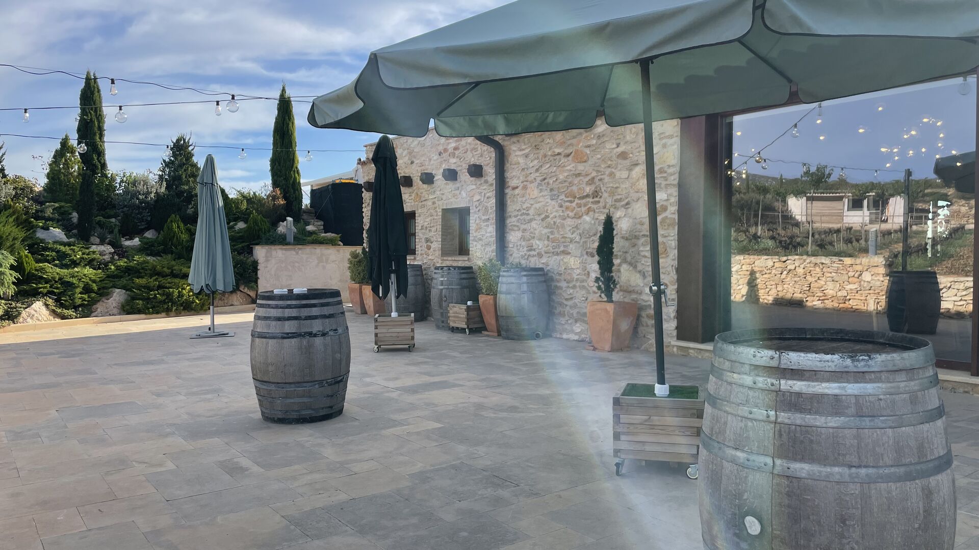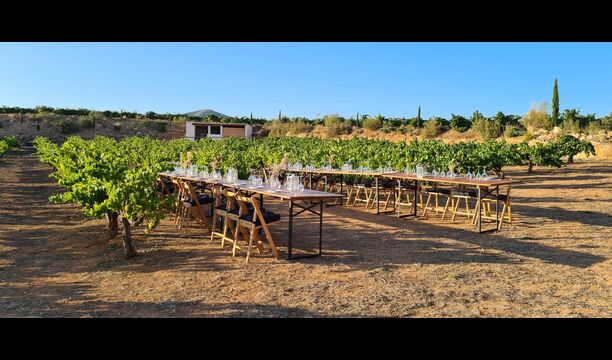 Está situado justo enfrente de los viñedos de Cristina y Pere y, a menudo,el evento se traslada al exterior en la terraza o incluso en los viñedos. En el interior, las grandes ventanas panorámicas proporcionan la alfombra perfecta para su celebración, con vistas a los viñedos y la puesta de sol.
