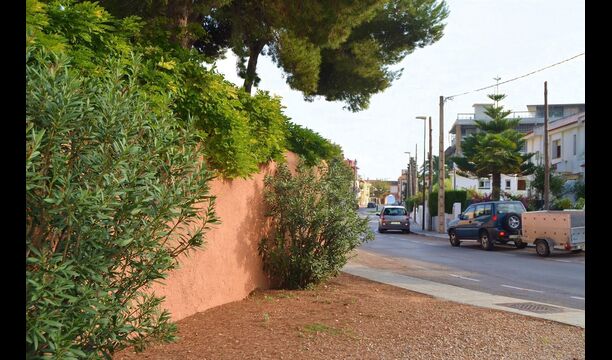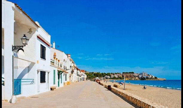 La segunda sorpresa es caminar a la playa. Justo al final de la carretera, un pasillo a través de la hilera de casas nos dio una mirada del mar Mediterráneo desde la casa. Y al pasar por esta puerta integrada en la casa, encontramos la playa y el paseo marítimo más bellos y acogedores, con auténticas casas de pueblo de estilo pescador en una fila ininterrumpida. Cuando visitamos la playa, hicimos un descanso en uno de los restaurantes de la playa, disfrutando de un Café con leche, observando la vida relajada de la playa.