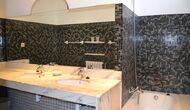 El primer piso tiene en total unos 300m2. En un extremo, hay dos habitaciones muy grandes, una de ellas con terraza privada y un baño en suite, y la otra habitación tiene vista al jardín y también tiene baño en suite. En el otro extremo, encontrará dos dormitorios más también con baño en suite. La configuración es con cuatro camas dobles, pero 3 de las habitaciones se pueden cambiar a habitaciones dobles si se prefiere. Todas las habitaciones tienen ventiladores. Dos de los baños tienen bañeras y las otras dos duchas.