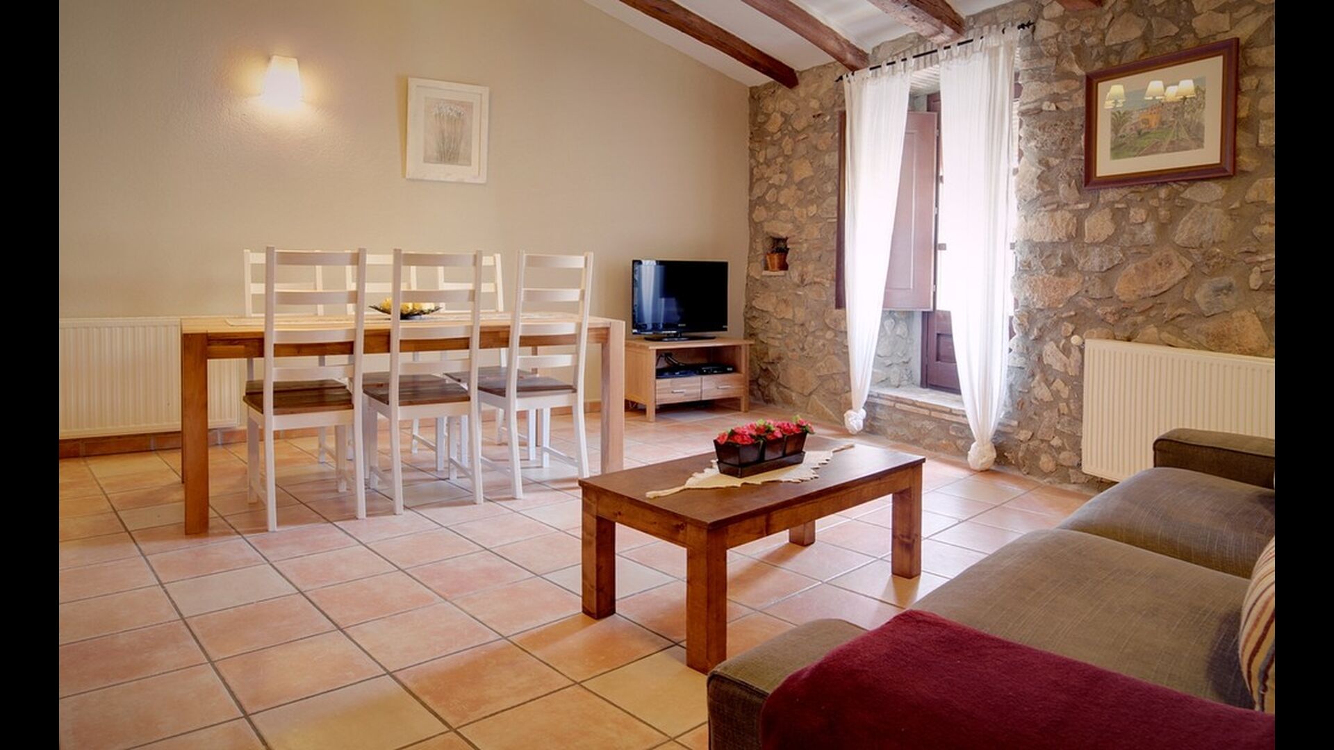 El alojamiento dispone de cocina,totalment equipada (lavavajillas, lavadora, microondas,horno, nevera-congelador grande, cafetera italiana y cafetera expresso, tostadora de pan, sandwichera,batidora, espremidor,...), una habitación doble y una individual, baño y sala de estar con TV, TDT, SATEL.LIT.