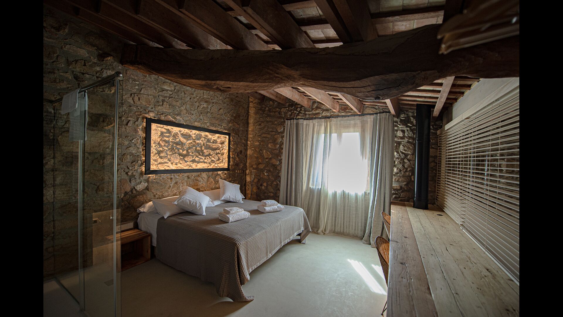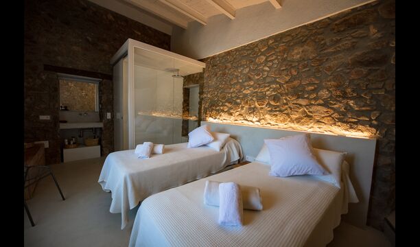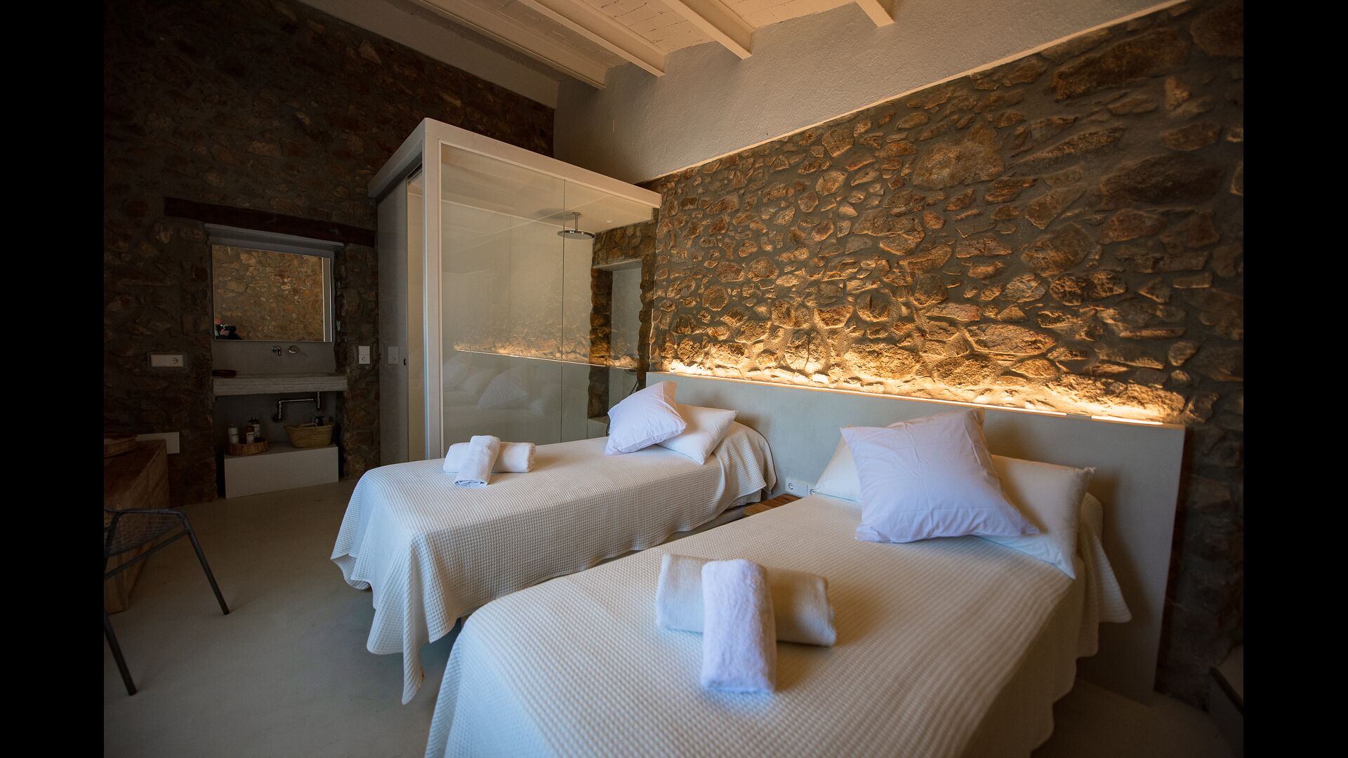 Encontrará los dos dormitorios en la planta baja. Ambas habitaciones son dormitorios dobles y ndash; luminosas y espaciosas, y cuentan con baños privados. Desde las ventanas de los dormitorios, se le ofrecerá una excelente vista del hermoso jardín de Can Matins y sus alrededores. Las camas de matrimonio también pueden funcionar como camas individuales.