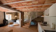 El apartamento tiene 80 m2 y es accesible desde el nivel del jardín. Encontrará una gran sala de estar, con sus paredes y ndash; como con el resto del apartamento – cubierto con un patrón de roca rústico y encantador, que te hace sentir inmerso en el largo y rústico legado de la casa... pero aún lleno de servicios modernos y un estilo de diseño interior que logra para facilitarte, combinando perfectamente lo antiguo y lo nuevo.
