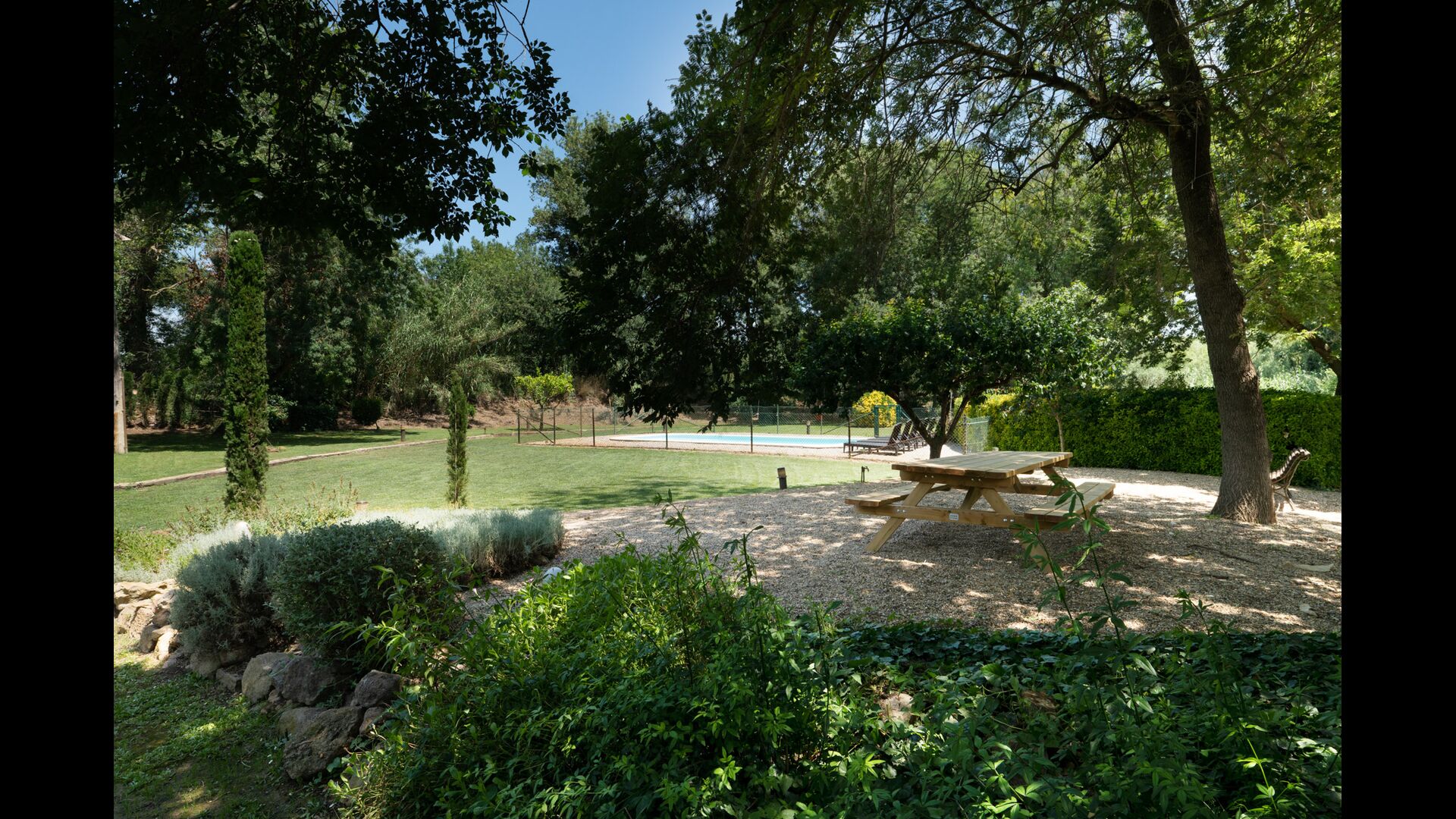 En la propiedad, también es fácil hacer que el tiempo vuele, no menos para los niños. Columpios, porterías de fútbol, juegos de mesa y tenis de mesa y, por supuesto, la piscina y el Wifi los mantendrán ocupados. Mientras tanto, puedes disfrutar de un café o una copa de vino, leyendo un libro, en los múltiples y acogedores rincones que encontrarás a tu alrededor, a la sombra o al sol como prefieras.