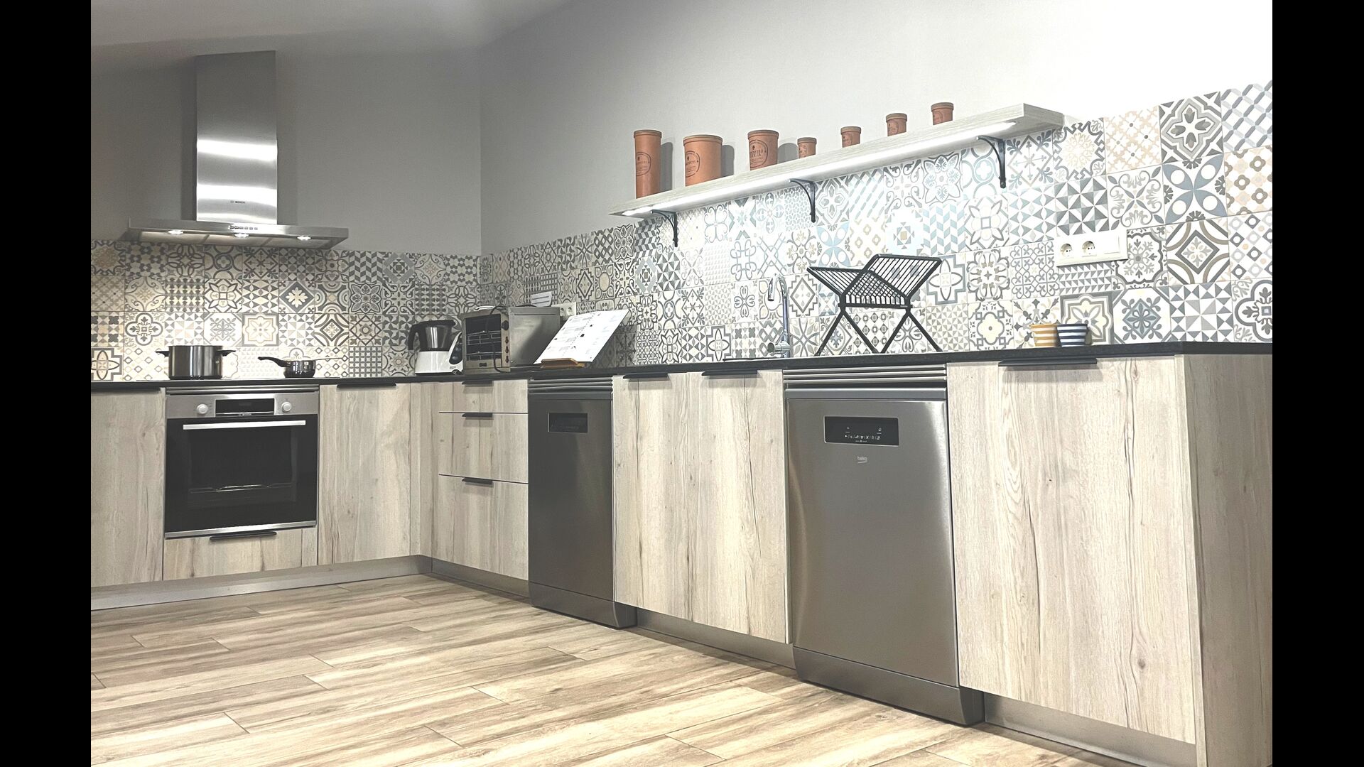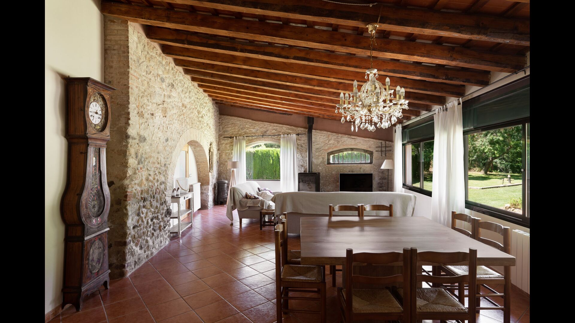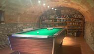 La hermosa planta baja te transporta a la historia, ya que se ha conservado la estructura auténtica, con los hermosos arcos que forman el techo tanto en el comedor como en la sala de estar y la biblioteca con los billares. . Con vistas al jardín, hay un salón más moderno con sofás y TV. Finalmente, hay una cocina grande y moderna, con mucho equipamiento de cocina y de fácil acceso con armarios abiertos. Por supuesto, también está equipada con horno, vitrocerámica, dos lavavajillas, nevera/congelador doble y más. También hay una mesa, que es conveniente para el desayuno.