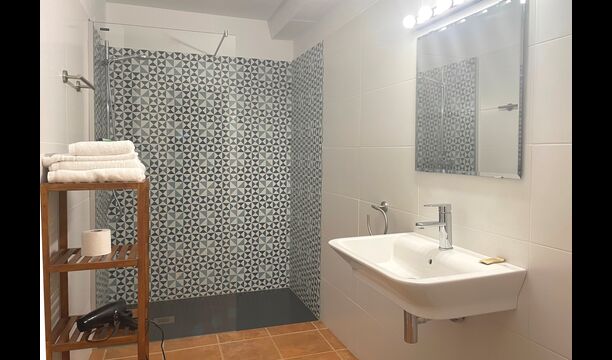 La casa es muy grande, ofrece 9 dormitorios, 7 de ellos con baños en suite. Hay dos baños adicionales en la casa, y también la posibilidad de arreglar un 10mo dormitorio si es necesario. La configuración de las camas también es muy flexible, por lo que, según sus necesidades, se pueden organizar habitaciones triples o cuádruples. Dos de los dormitorios del primer piso también tienen acceso a la terraza del primer piso, que es el lugar perfecto para leer un libro o tomar una copa de vino al atardecer.