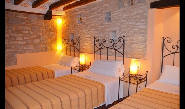 Hay una habitación grande y espaciosa en la entrada en el piso inferior, una habitación de nivel ajustado con baño en suite (accesible para sillas de ruedas). En el segundo piso, encontrará las otras siete habitaciones dobles. Las habitaciones están decoradas con colores vivos y varias de ellas tienen vigas en el techo. Hay 6 baños.