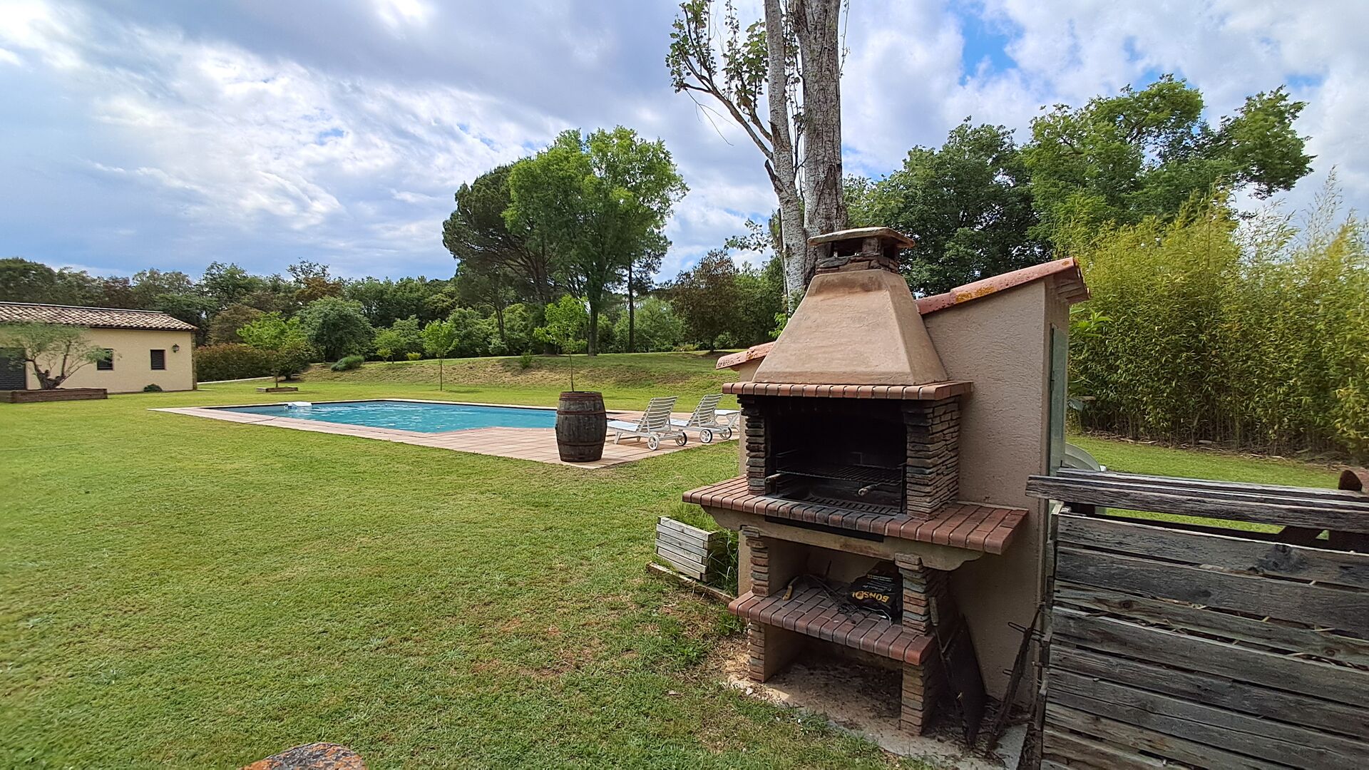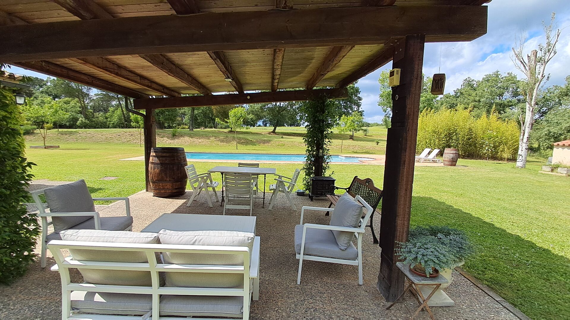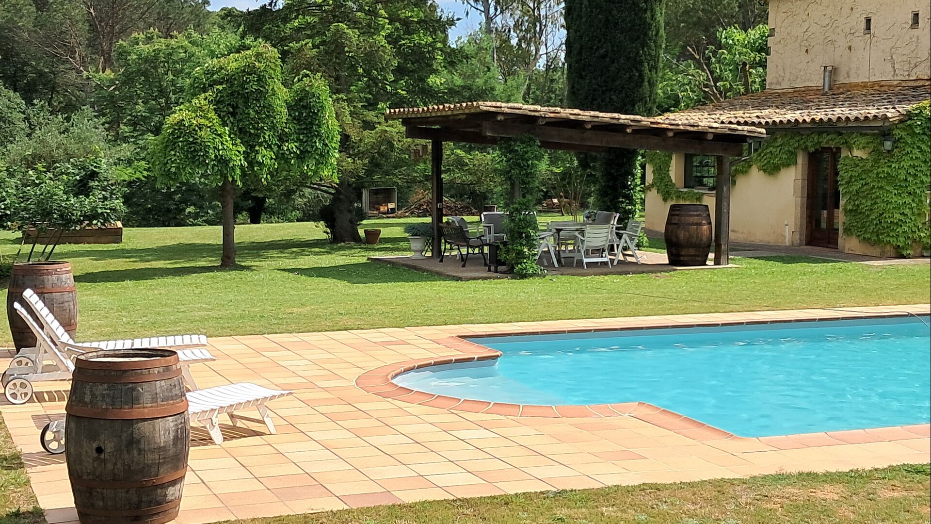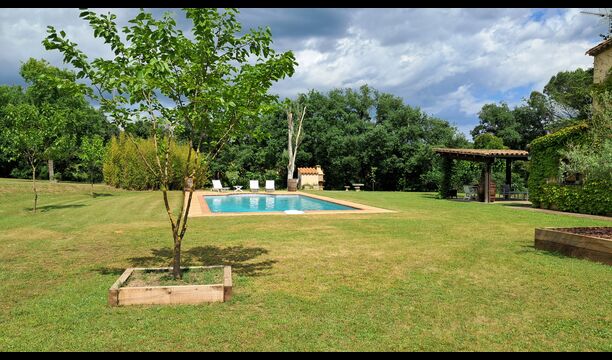 La propiedad consta de dos secciones: la casa principal, disponible para alquiler, y un anexo independiente reservado para los propietarios. Los huéspedes tendrán acceso exclusivo al gran jardín y a la piscina que rodean la casa principal, garantizando privacidad y comodidad.