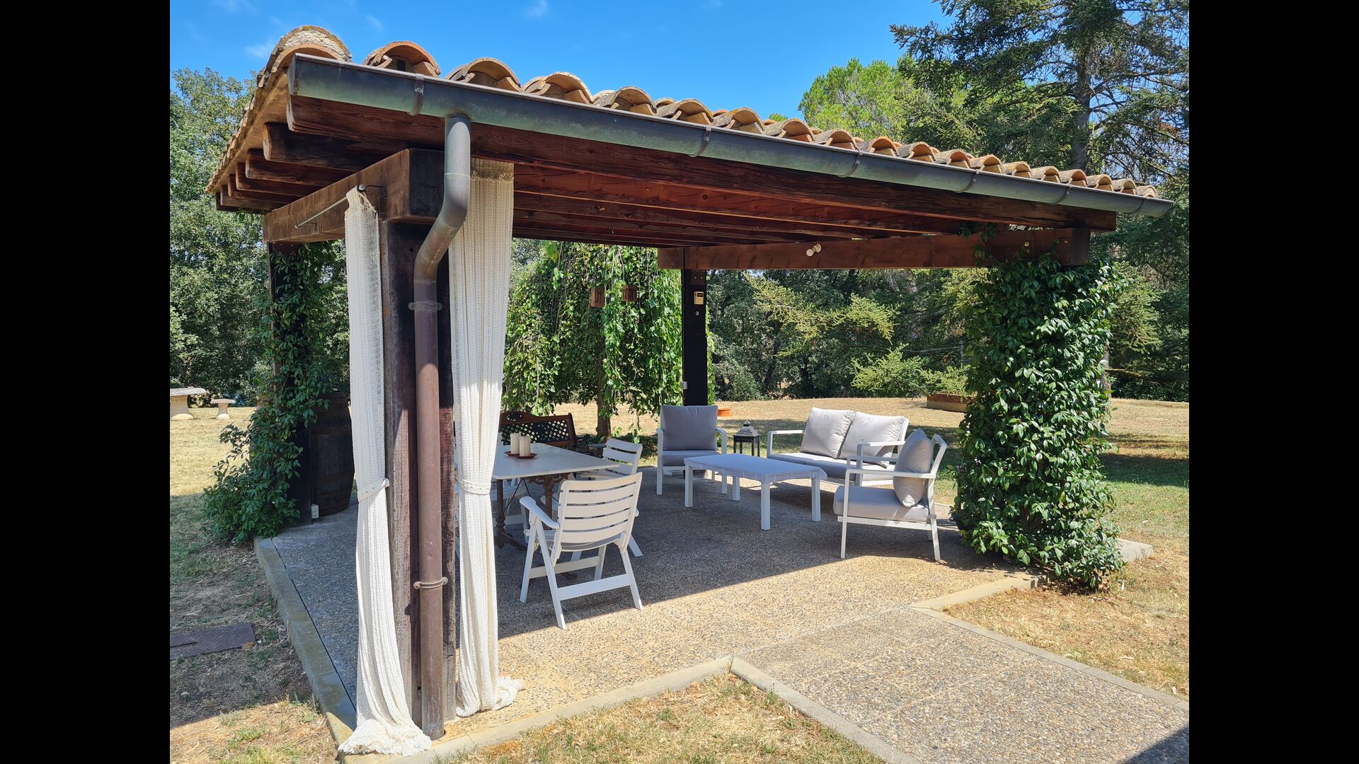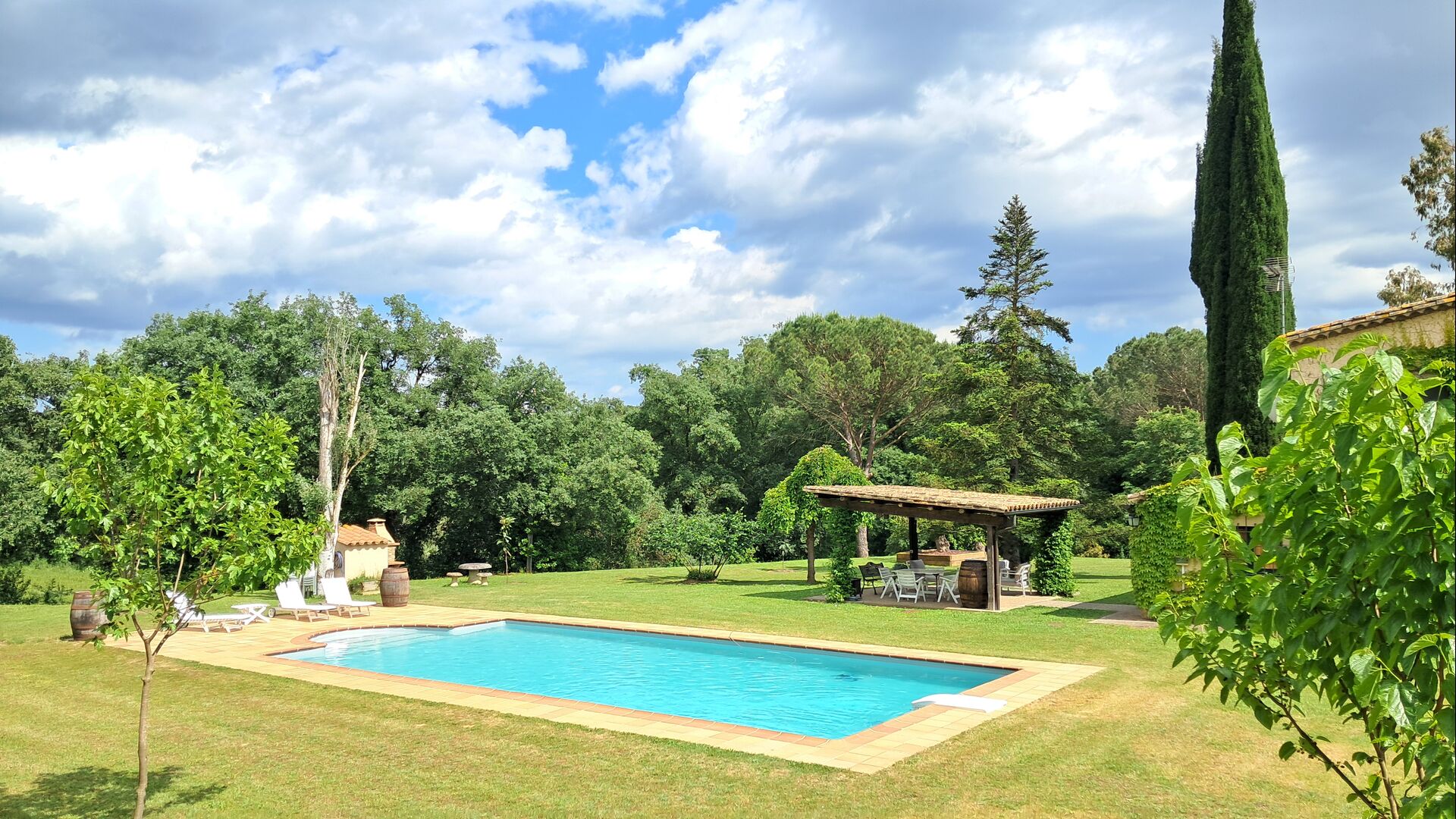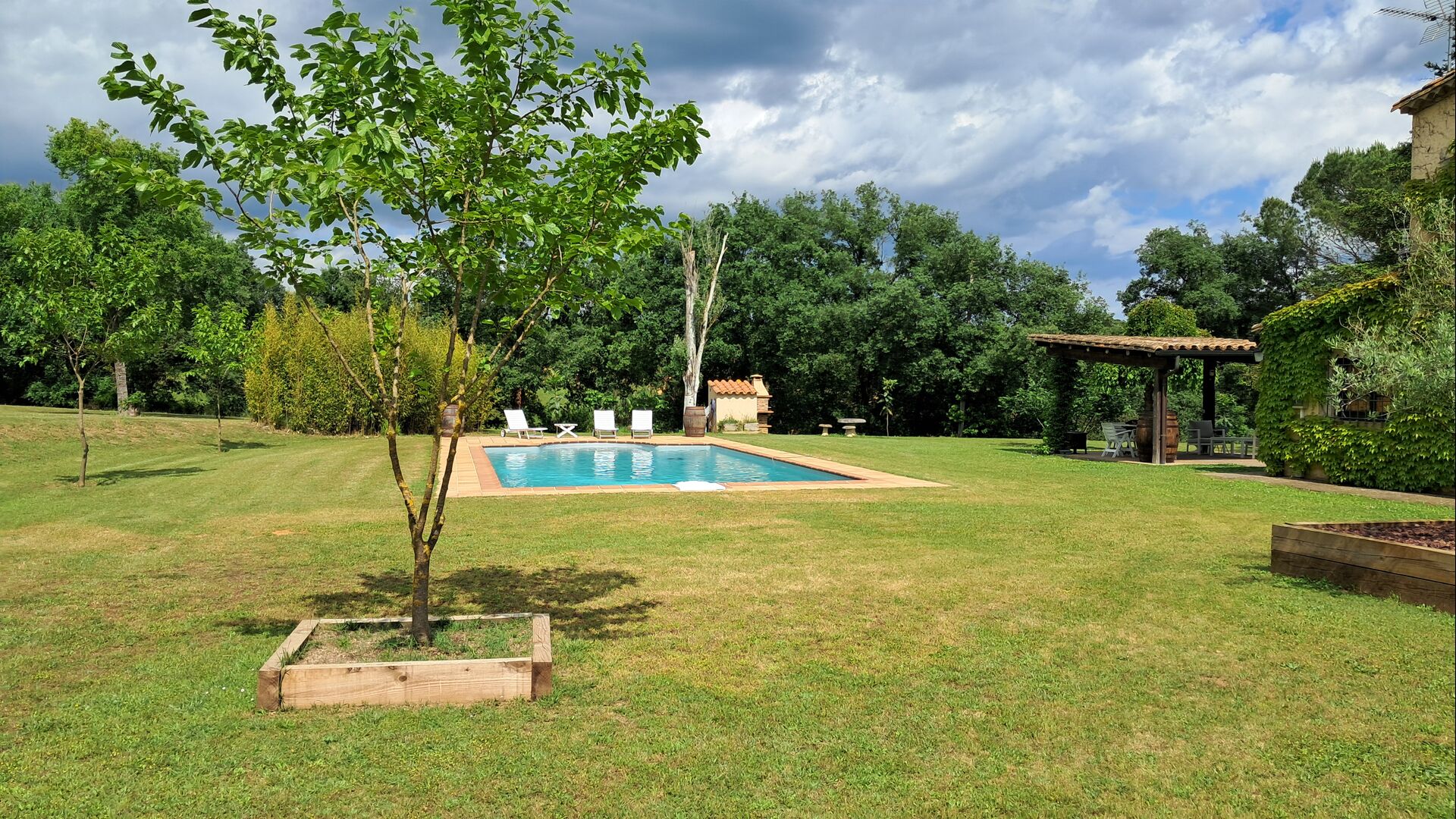 La propiedad consta de dos secciones: la casa principal, disponible para alquiler, y un anexo independiente reservado para los propietarios. Los huéspedes tendrán acceso exclusivo al gran jardín y a la piscina que rodean la casa principal, garantizando privacidad y comodidad.