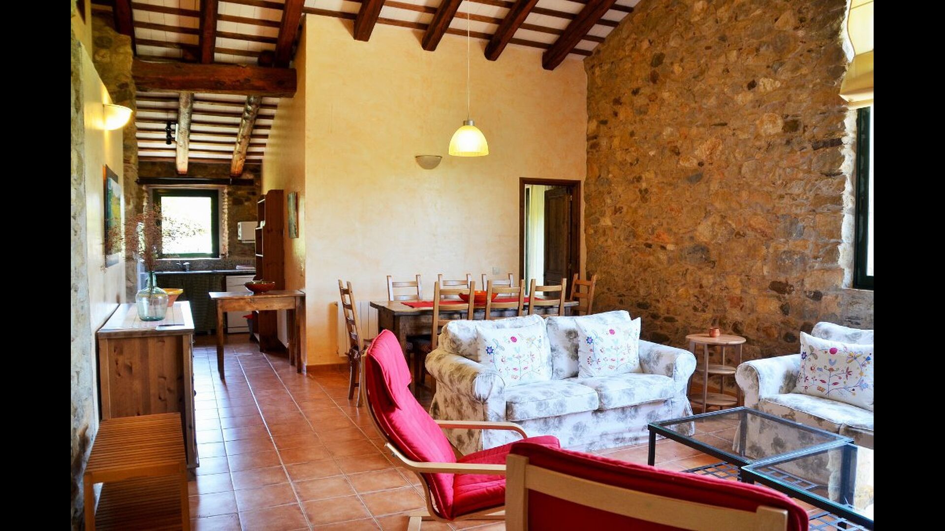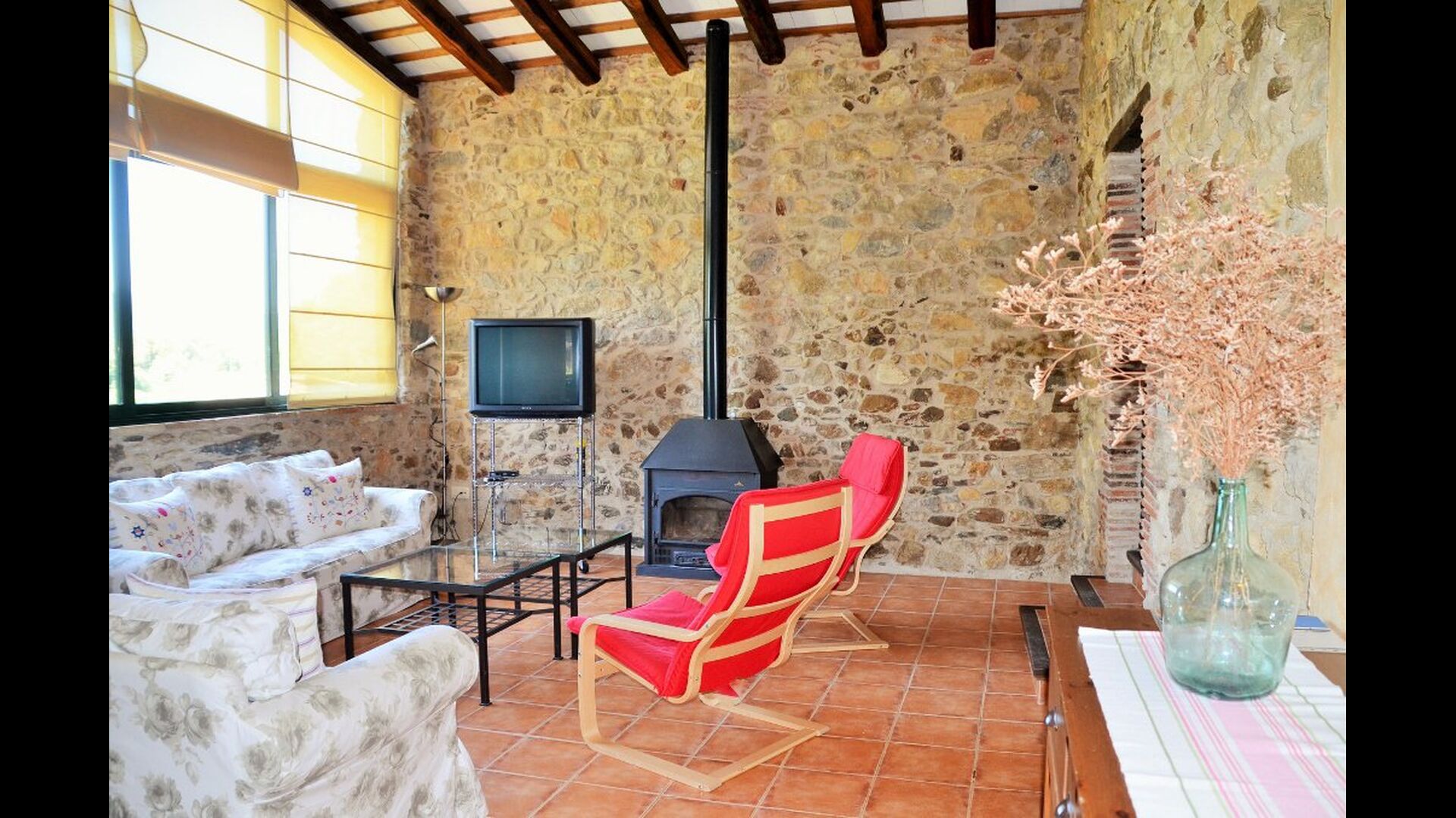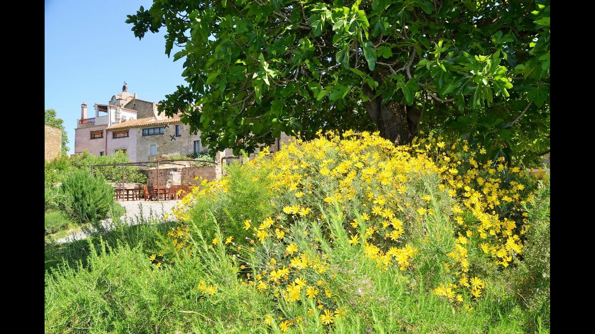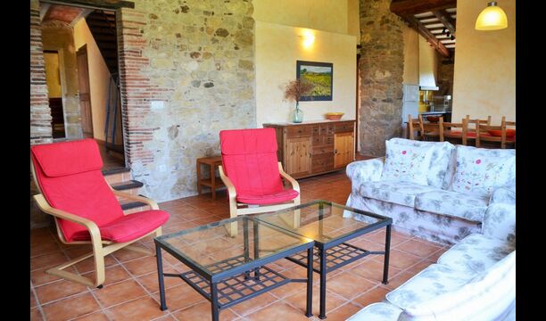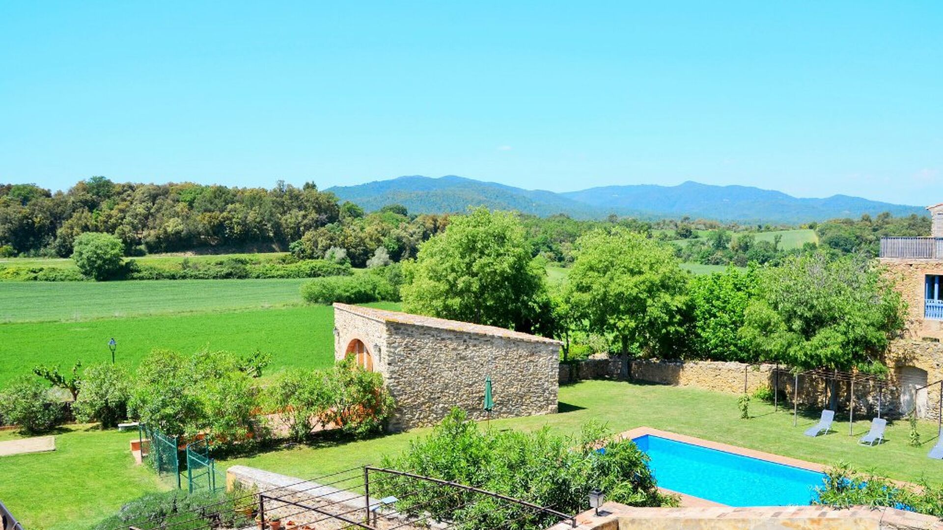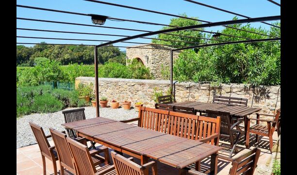 La casa tiene un jardín muy grande con una gran piscina, que está asegurada con una cerca y con tumbonas para que pueda relajarse, solo para ser interrumpido por un refrescante baño. En el resto del jardín, hay varias áreas de patio y naranjos y limoneros que brindan sombra y un toque de ambiente mediterráneo. En el pueblo, a poca distancia, hay algunos restaurantes y una tienda con un poco de todo. Todos los días a las 12:00, una furgoneta de pan llega a la plaza, por lo que puede comprar pan fresco para el almuerzo. Hay supermercados más grandes en La Bisbal, que es famoso por su cerámica. Esta localidad se encuentra a tan solo 5 km de la casa.