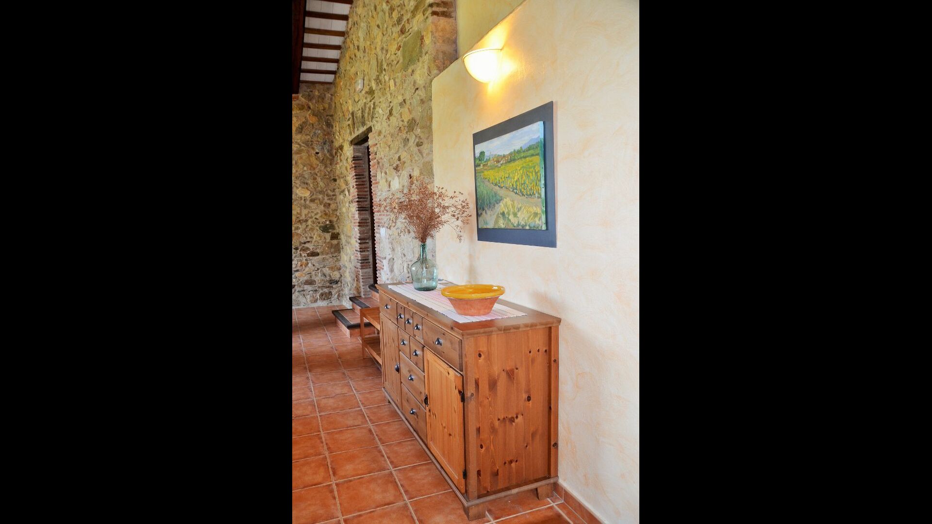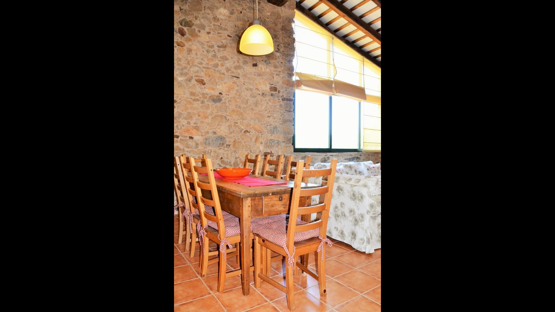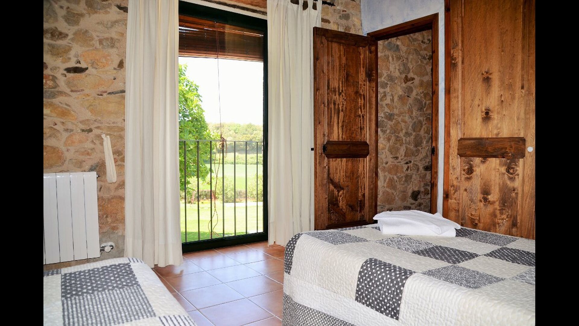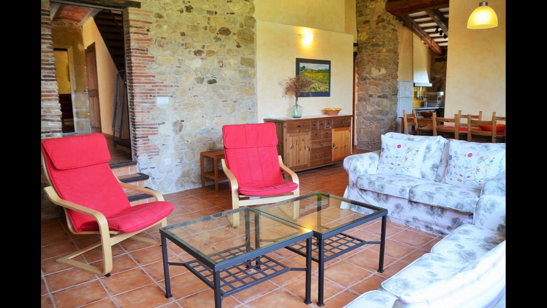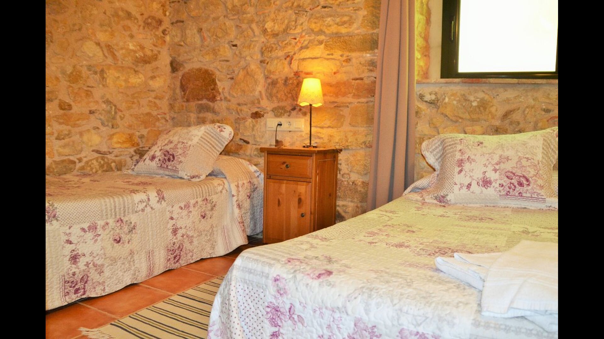 La casa tiene un jardín muy grande con una gran piscina, que está asegurada con una cerca y con tumbonas para que pueda relajarse, solo para ser interrumpido por un refrescante baño. En el resto del jardín, hay varias áreas de patio y naranjos y limoneros que brindan sombra y un toque de ambiente mediterráneo. En el pueblo, a poca distancia, hay algunos restaurantes y una tienda con un poco de todo. Todos los días a las 12:00, una furgoneta de pan llega a la plaza, por lo que puede comprar pan fresco para el almuerzo. Hay supermercados más grandes en La Bisbal, que es famoso por su cerámica. Esta localidad se encuentra a tan solo 5 km de la casa.
