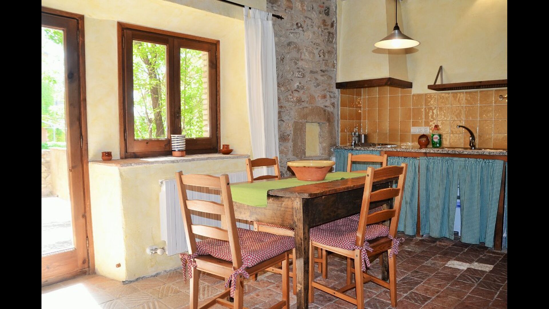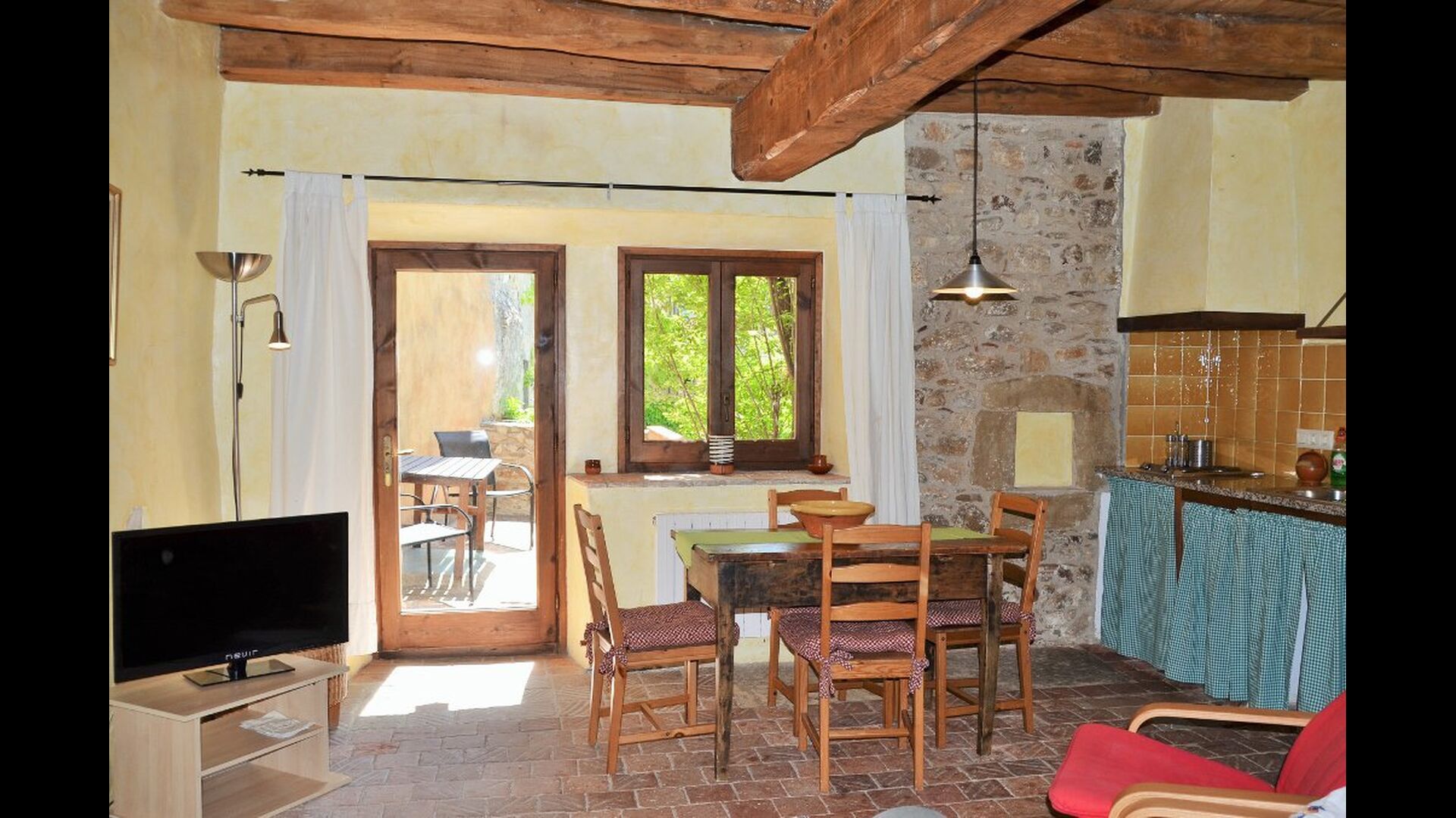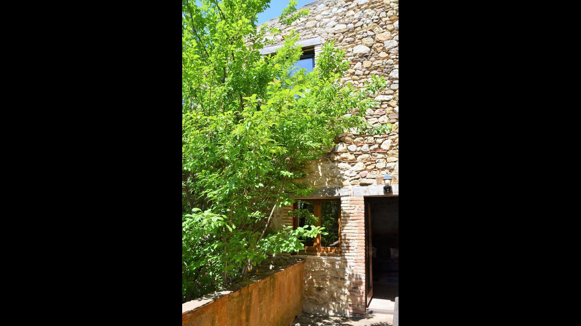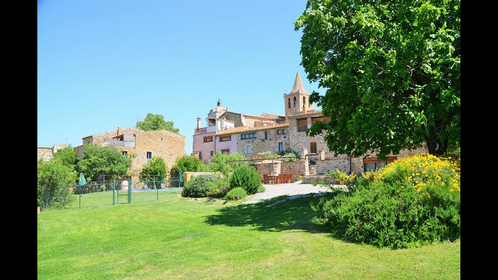 La casa tiene un jardín muy grande con una gran piscina, que está asegurada con una cerca y con tumbonas para que pueda relajarse, solo para ser interrumpido por un refrescante baño. En el resto del jardín, hay varias áreas de patio y naranjos y limoneros que brindan sombra y un toque de ambiente mediterráneo. En el pueblo, a poca distancia, hay algunos restaurantes y una tienda con un poco de todo. Todos los días a las 12:00, una furgoneta de pan llega a la plaza, por lo que puede comprar pan fresco para el almuerzo. Hay supermercados más grandes en La Bisbal, que es famoso por su cerámica. Esta localidad se encuentra a tan solo 5 km de la casa.