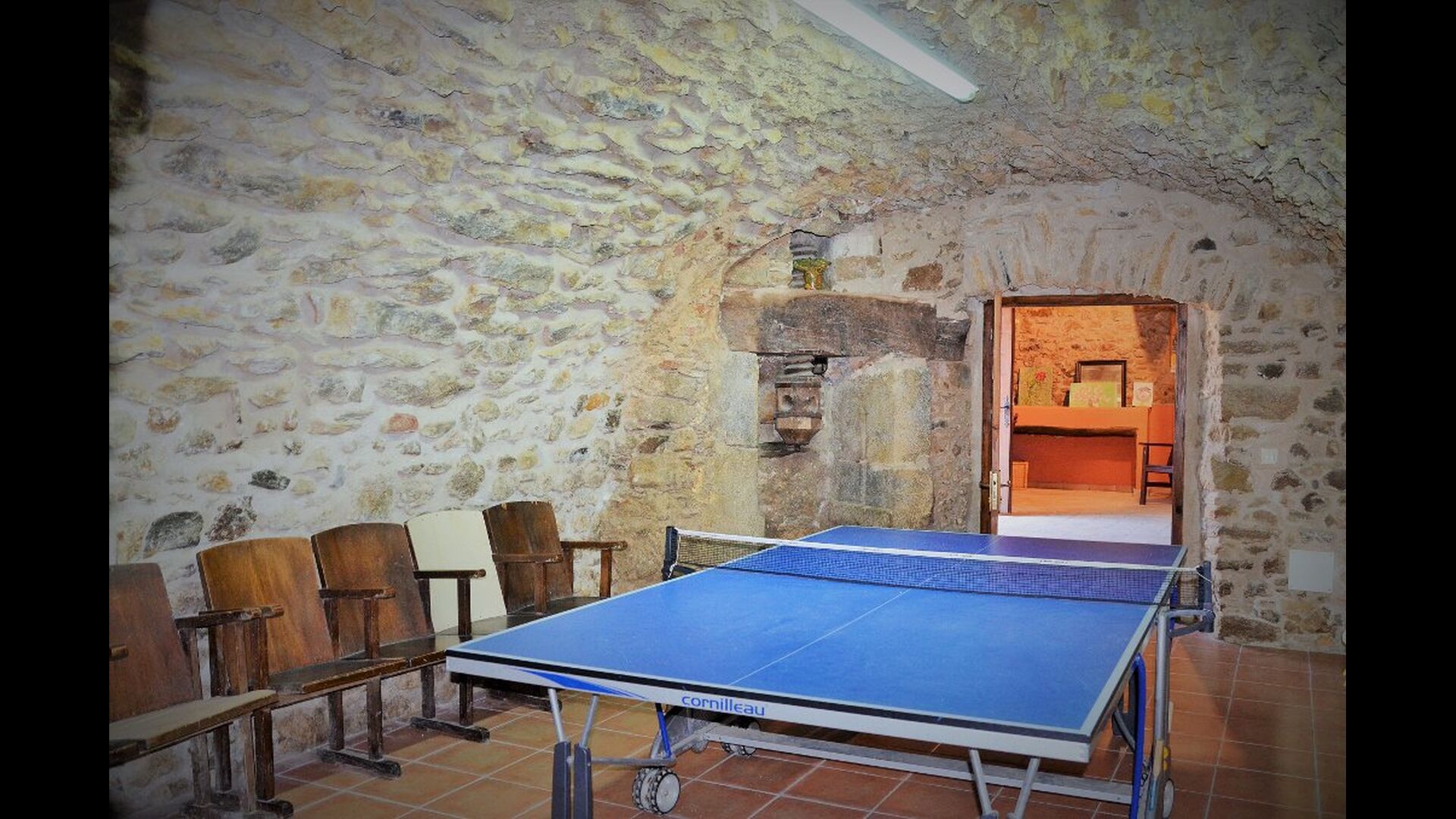 Sala de actividades compartidas con tenis de mesa y otros juguetes.