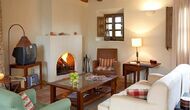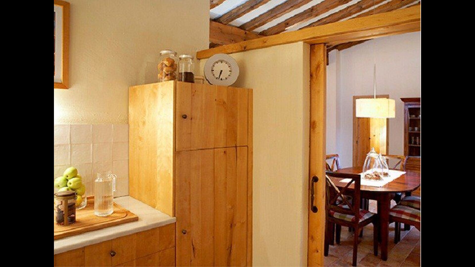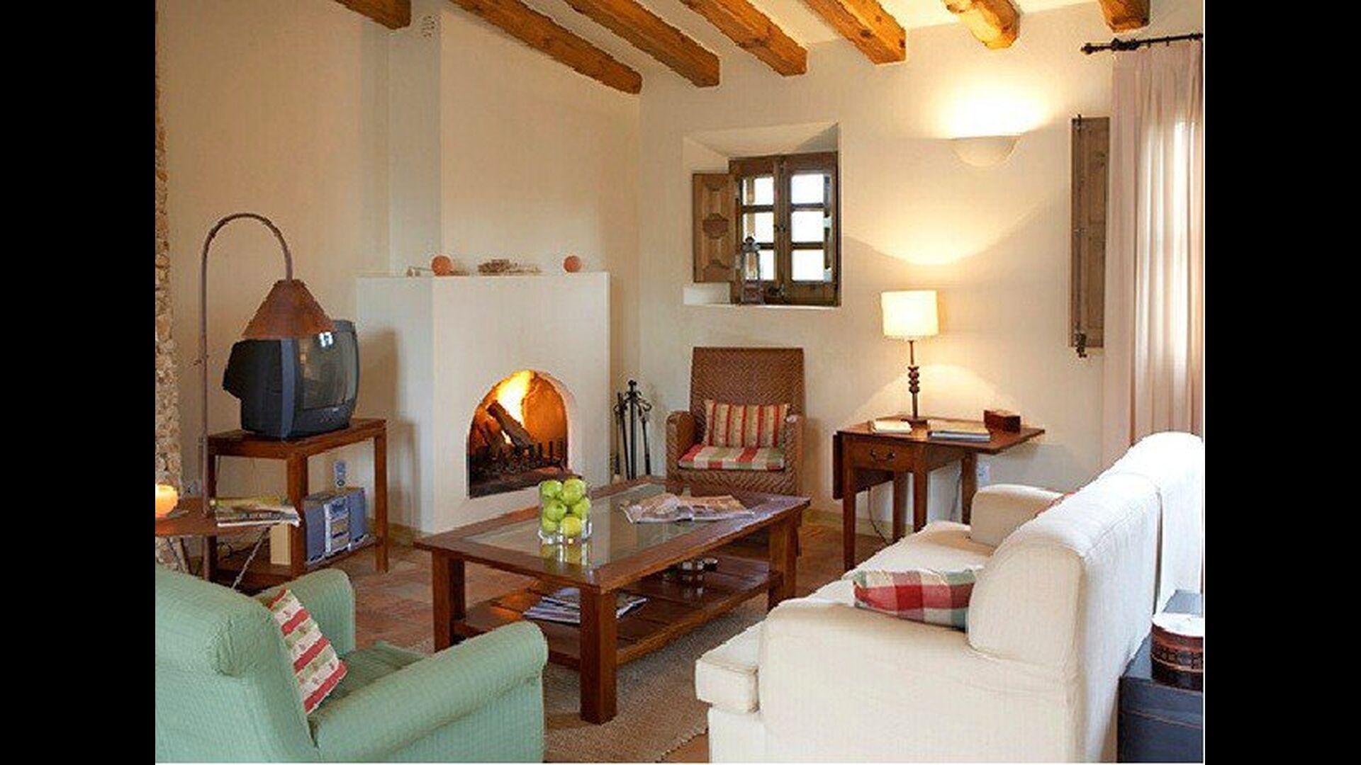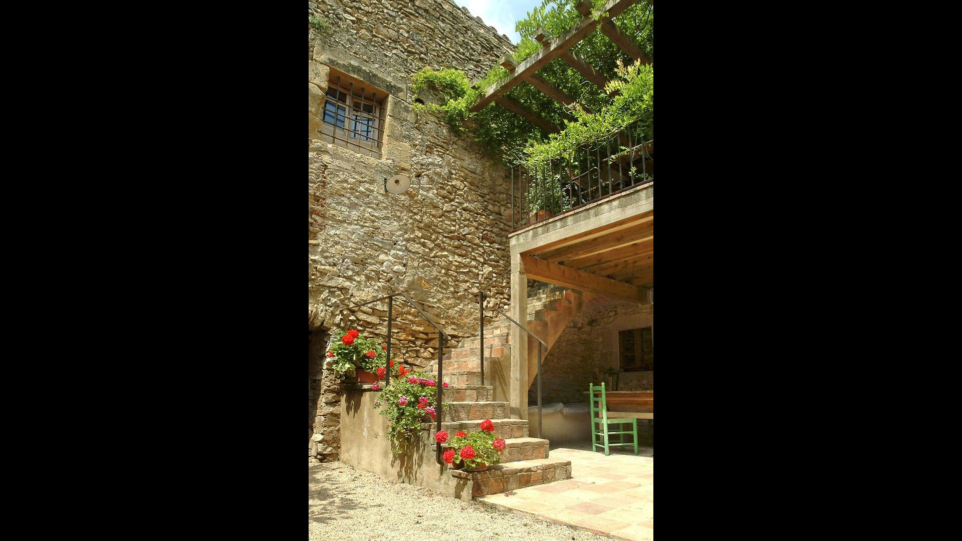 Este apartamento del primer piso se encuentra en el lado superior derecho del gran patio que se encuentra después de la gran puerta de madera. El patio y las casas están construidas en piedra, lo que le da un ambiente rústico y auténtico. Este apartamento tiene un acogedor patio cubierto en el patio, donde es obvio disfrutar de las comidas caseras durante las cálidas noches catalanas. Durante el día, también es un lugar perfecto para relajarse, ya que hay una sombra refrescante.