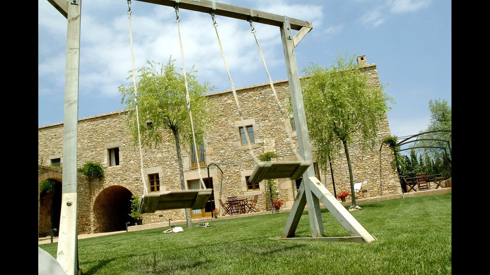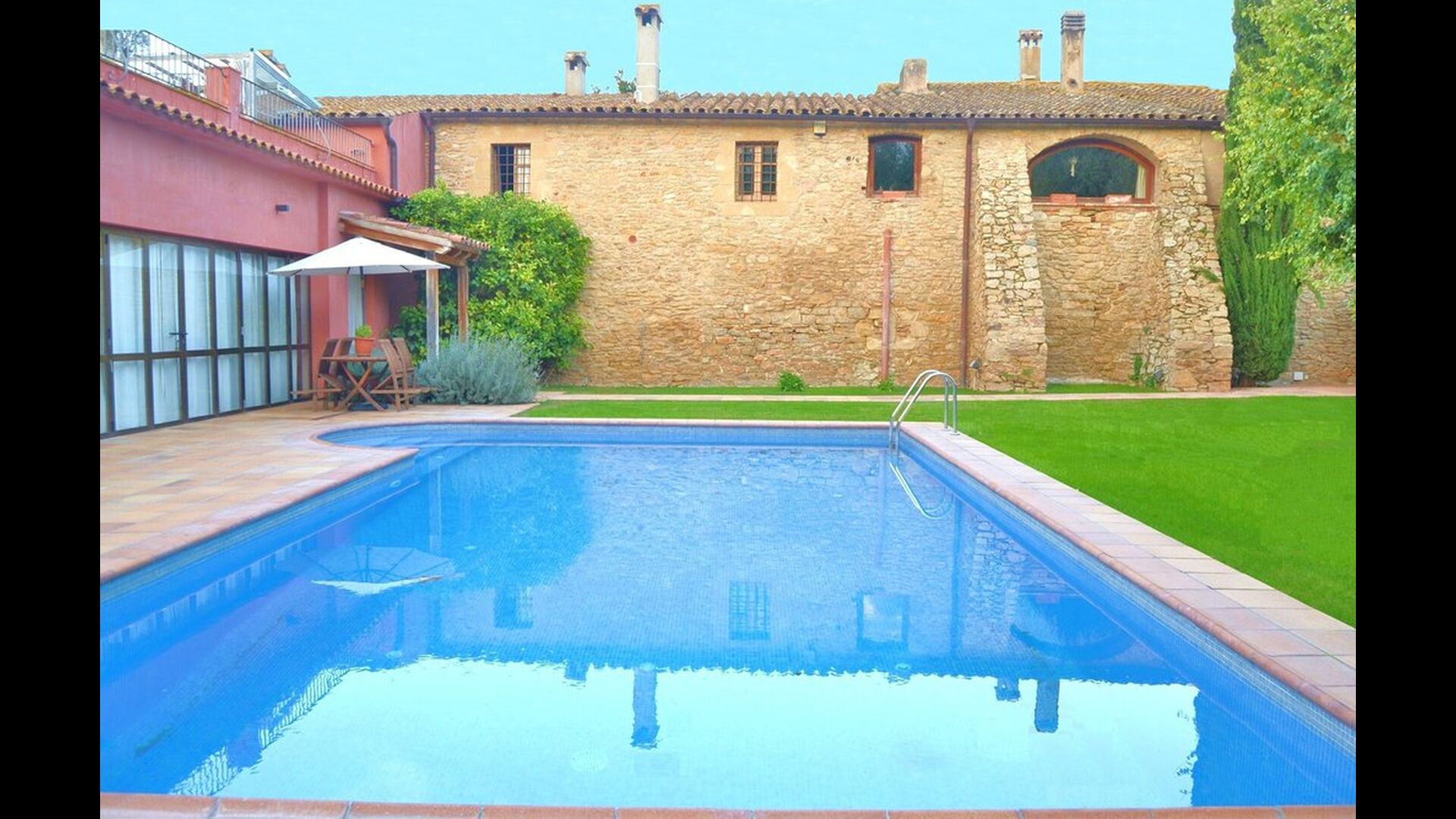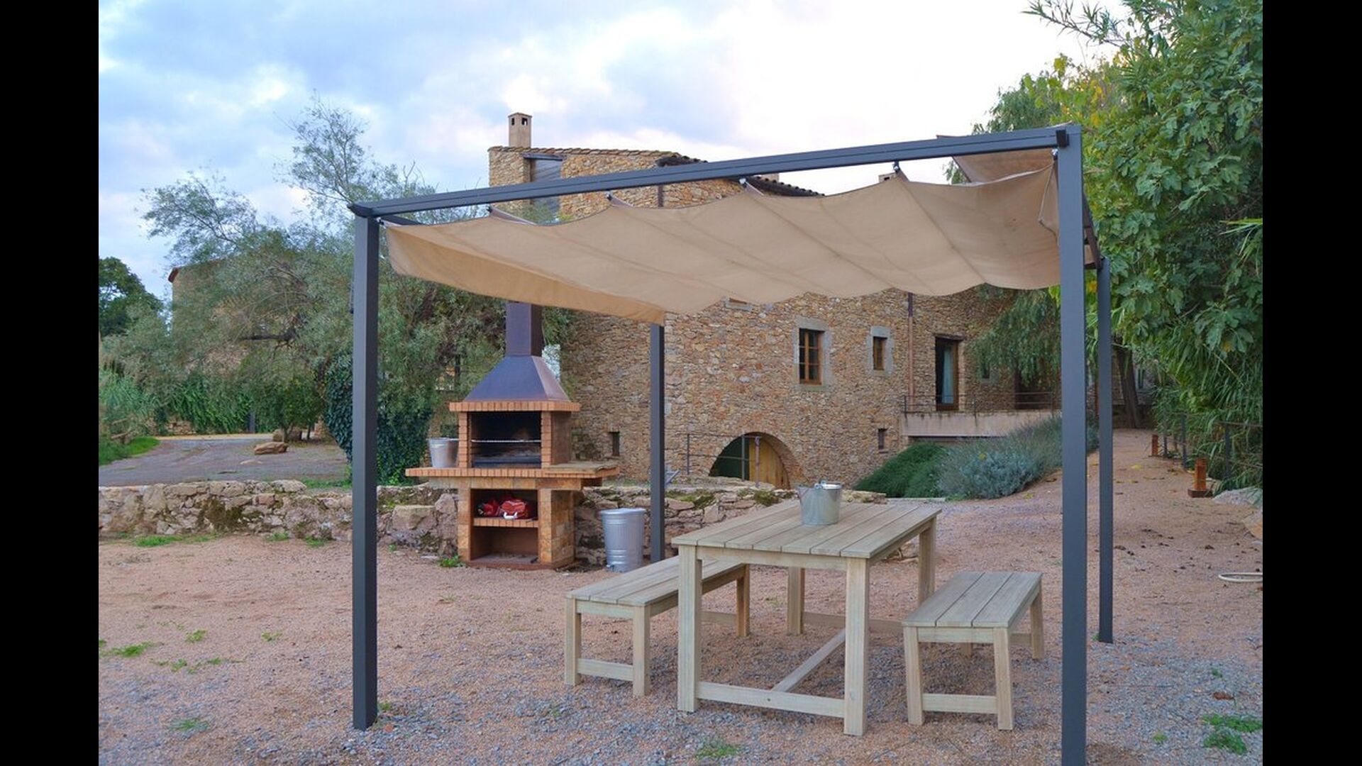 Afuera hay un área de jardín relativamente grande. Hay una piscina compartida con un tamaño de 50m2. Este es un éxito seguro entre los niños que seguramente pasarán mucho tiempo en él. Especialmente durante los meses de verano, cuando hace mucho calor en Cataluña, es una instalación esencial porque se puede enfriar en muy poco tiempo. Además, hay una gran parrilla de barbacoa en el jardín con una mesa de comedor cubierta, donde podrá disfrutar de la comida recién preparada durante las cálidas noches catalanas. Además, hay varias áreas de descanso alrededor del jardín. Para el grupo más pequeño hay un pequeño parque infantil con casita de juegos y columpios.