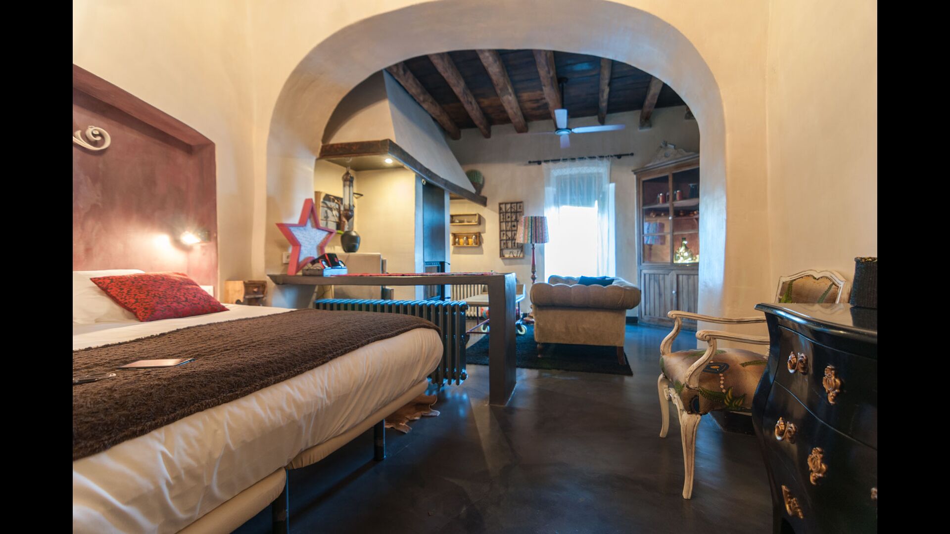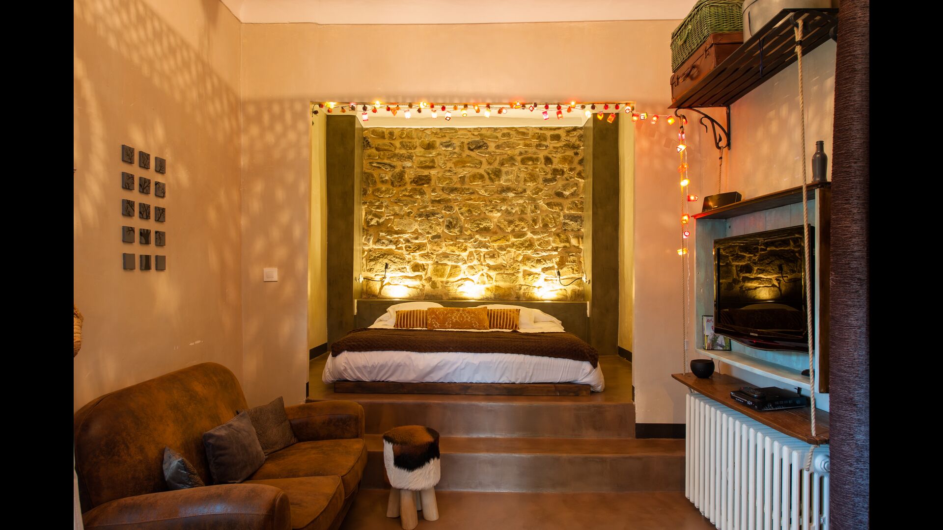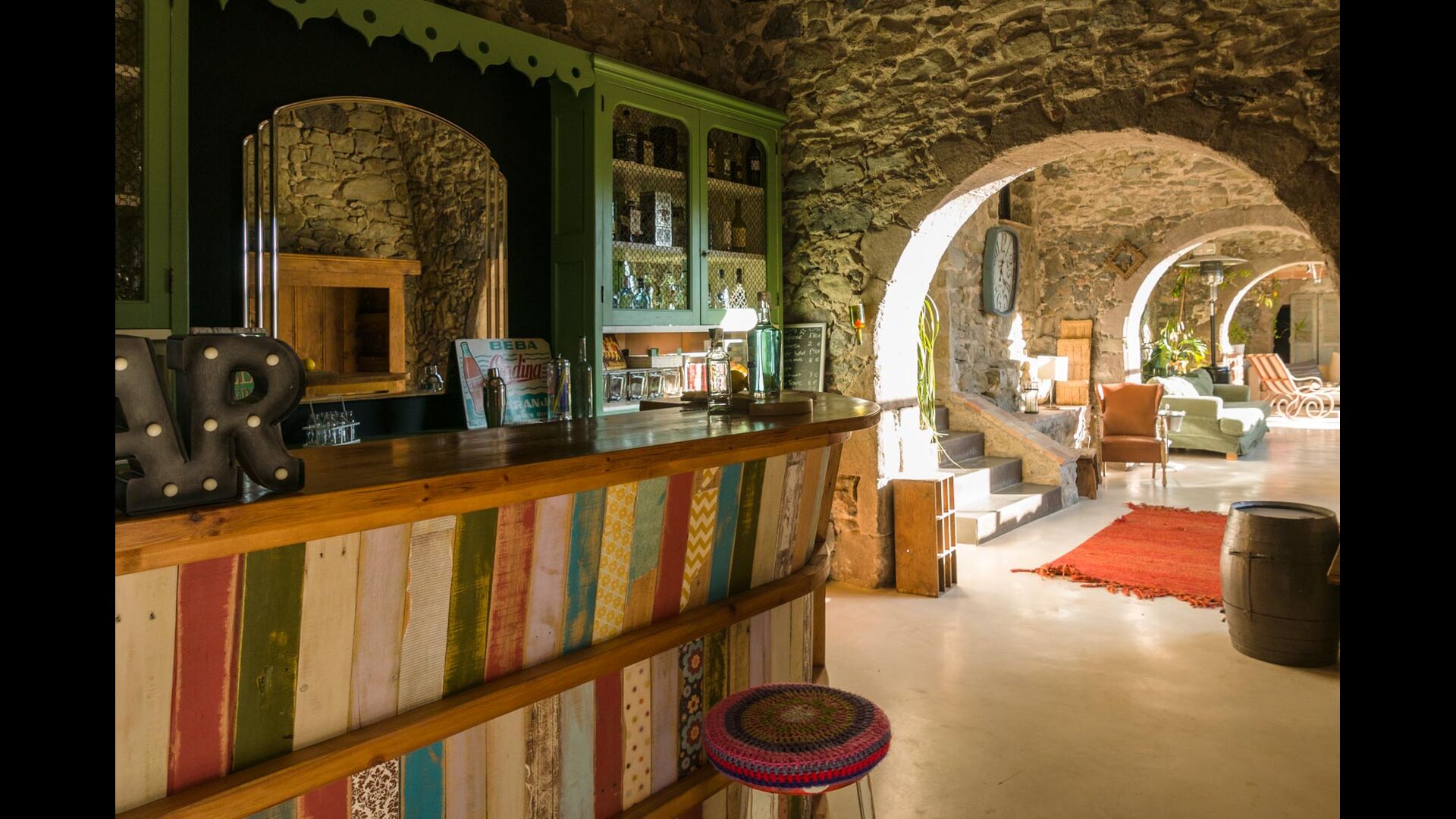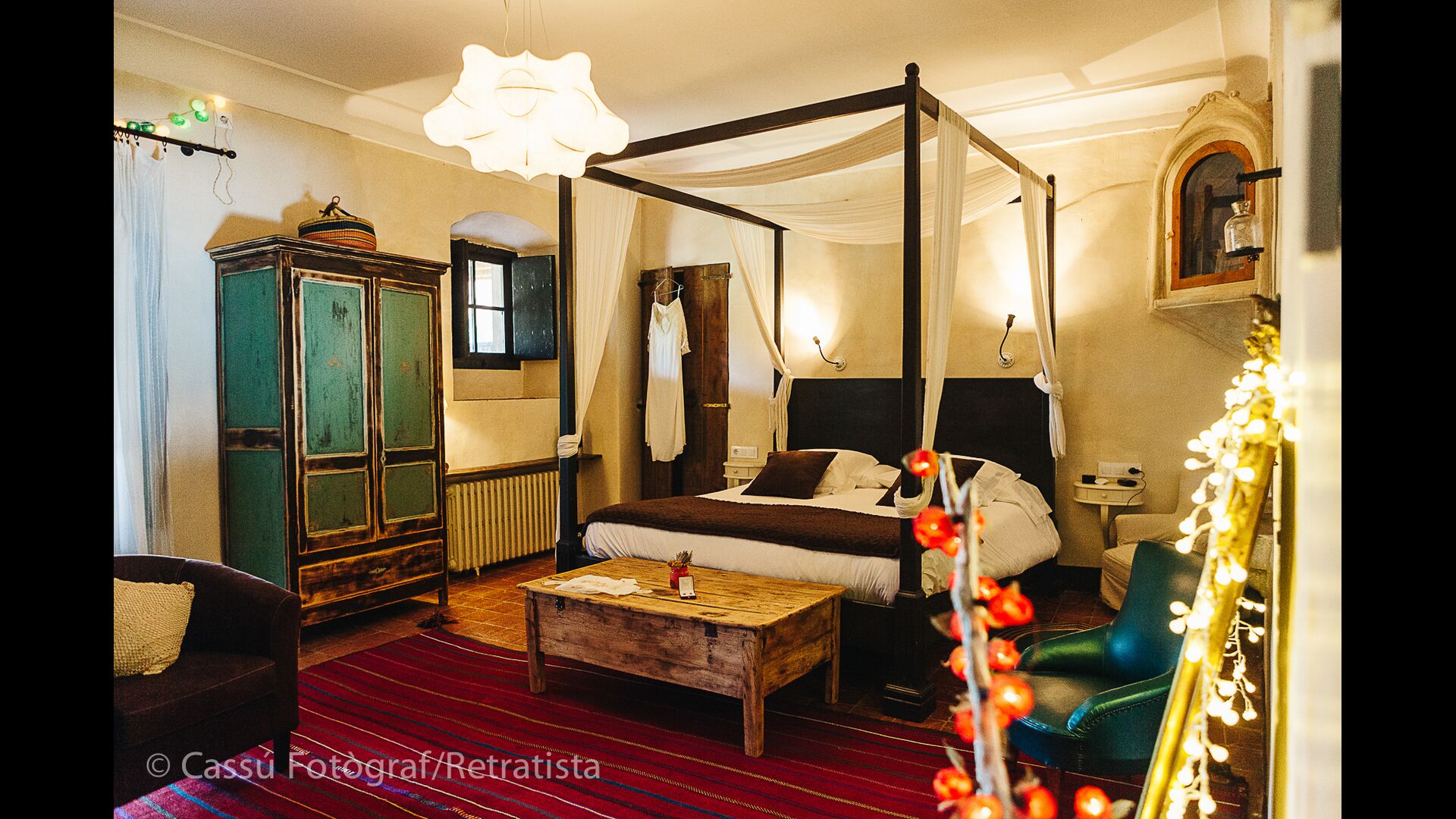 La casa tiene sus orígenes en el s. X y actualmente dispone de 5 suites principales y una pequeña habitación con dos literas. Las suites tienen su propia terraza o balcón privados y una de ellas dispone de su propio patio. Las camas son de 180x200 con sábanas de algodón blanco y vienen equipadas con todas las comodidades actuales. En las zonas comunes encontraréis un salón con chimenea, una biblioteca, un comedor soleado, una cocina inmensa y hasta un bar para alargar las noches con toda tranquilidad! Toda la casa está perfectamente equipada y decorada con originalidad.