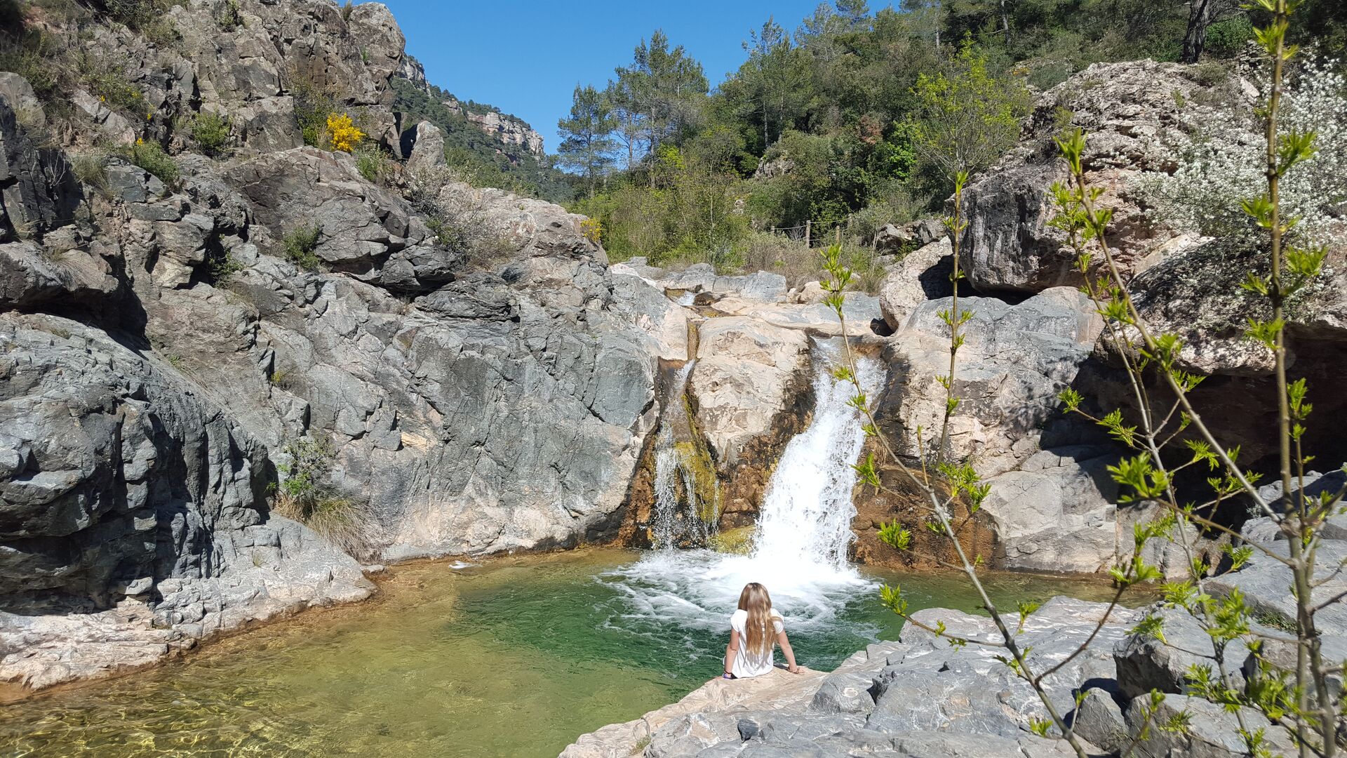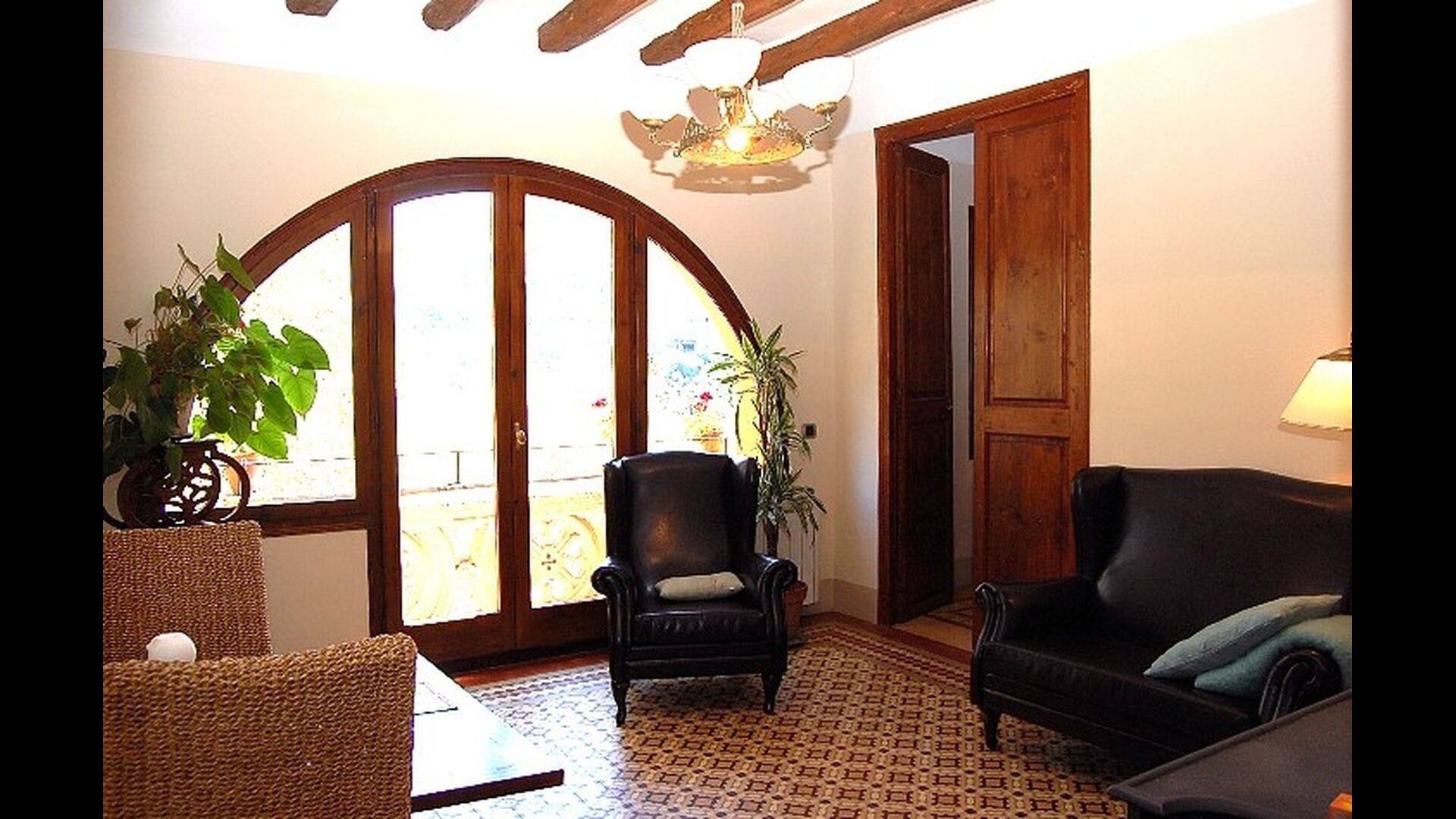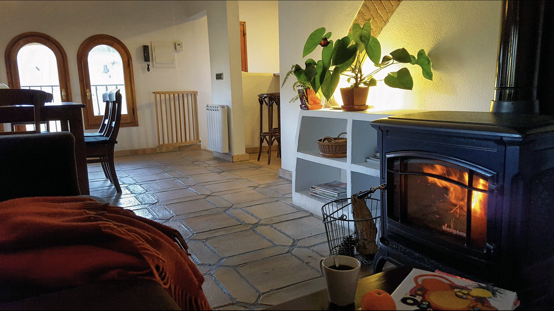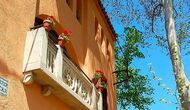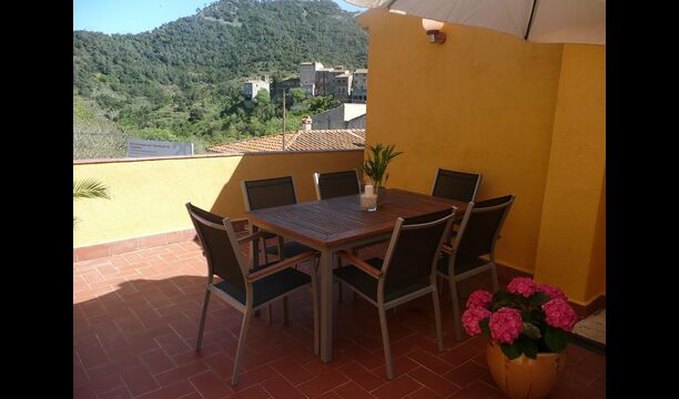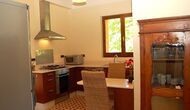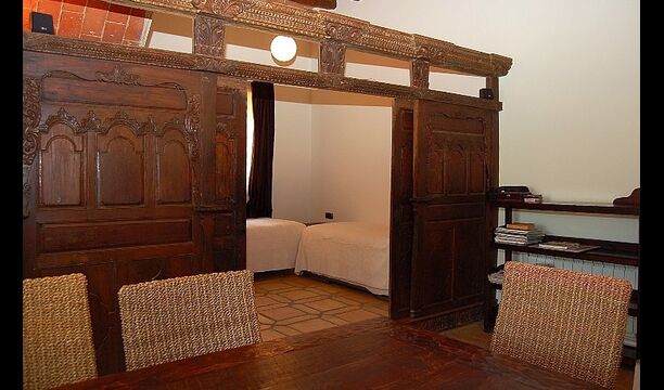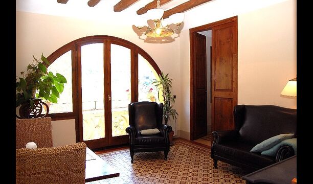 El primer piso tiene dos habitaciones dobles, una de ellas con baño, una habitación individual y un baño independiente. Una sala de estar con una chimenea de leña y acceso al balcón, desde donde se ven las bonitas vistas del pueblo, el castillo y la montaña. Una cocina completamente equipada, con comedor y acceso al jardín. Este era el piso principal de la casa, donde el estilo de principios de siglo ha sido mantenido pero adaptado al confort de hoy en día. Cada habitación tiene su dibujo de baldosas hidráulicas originales.