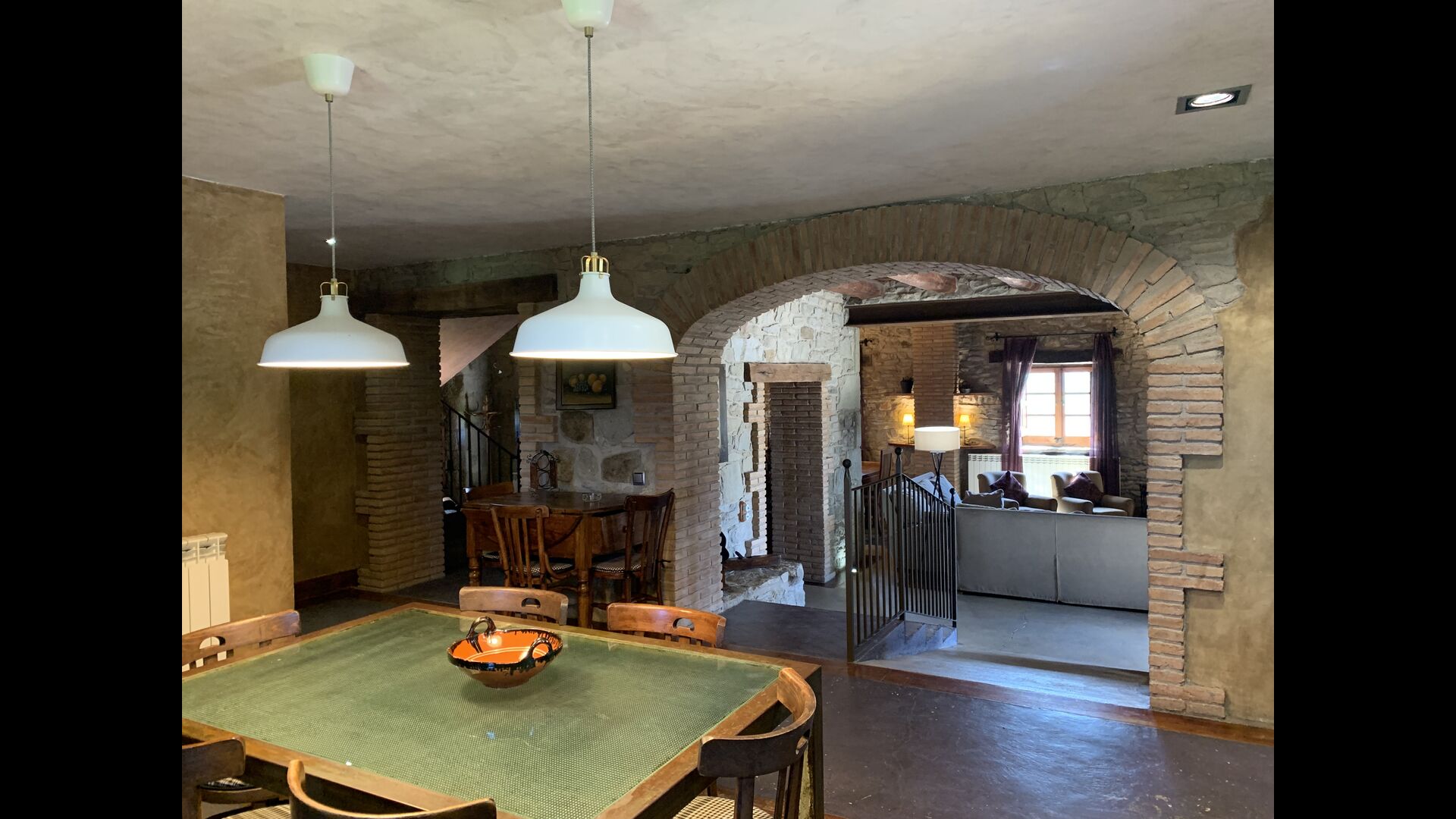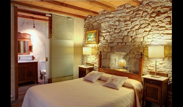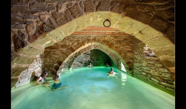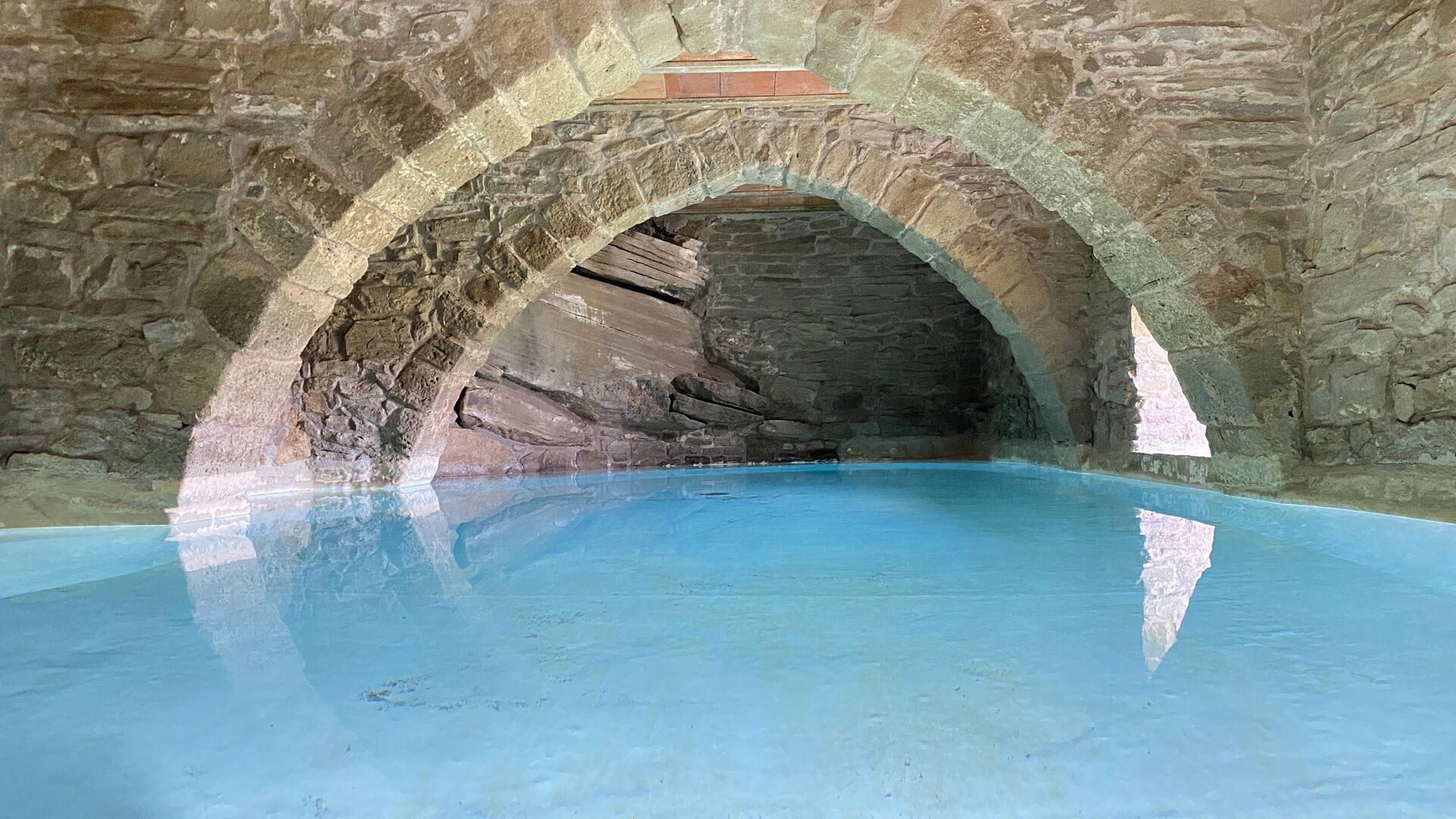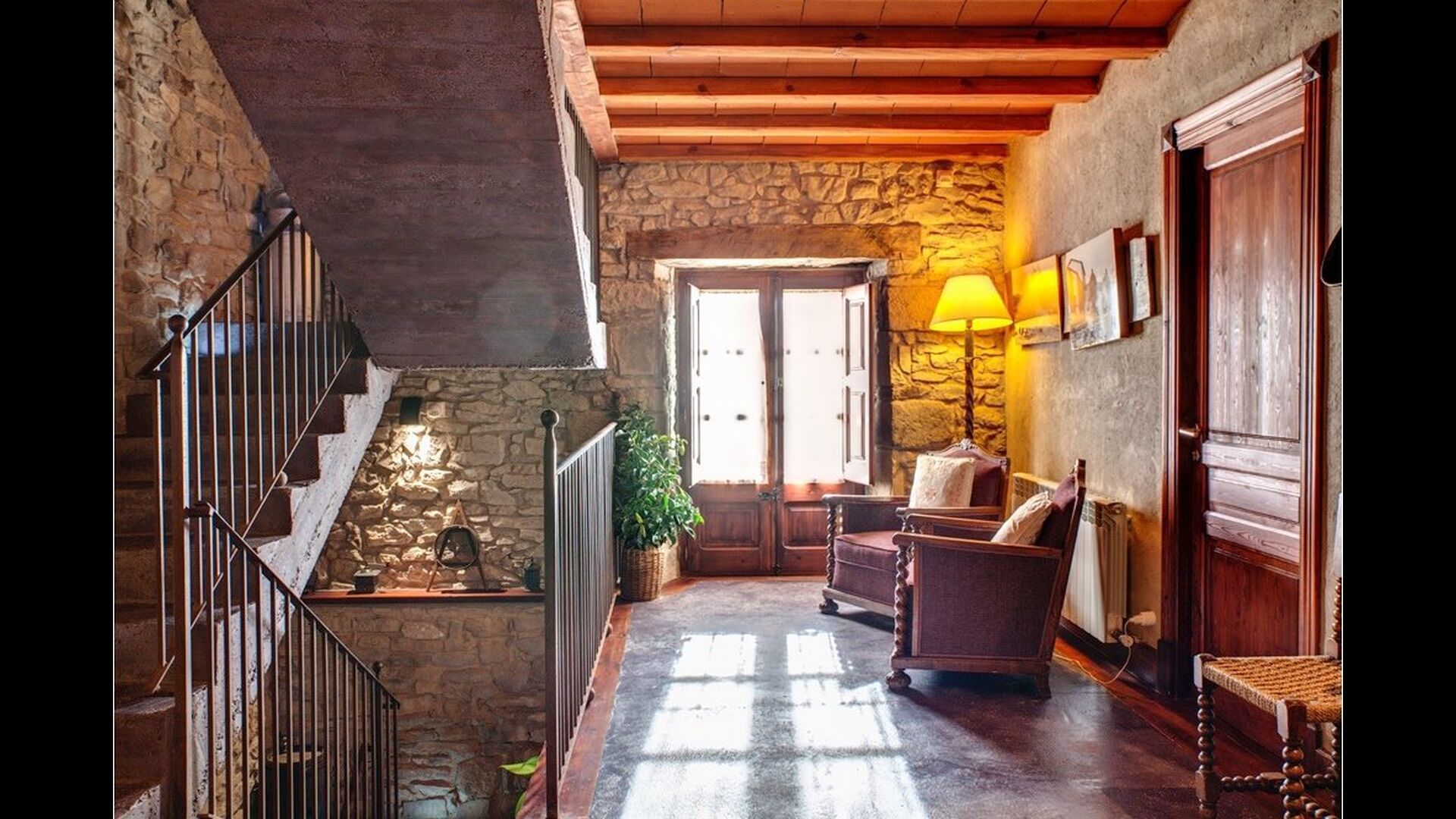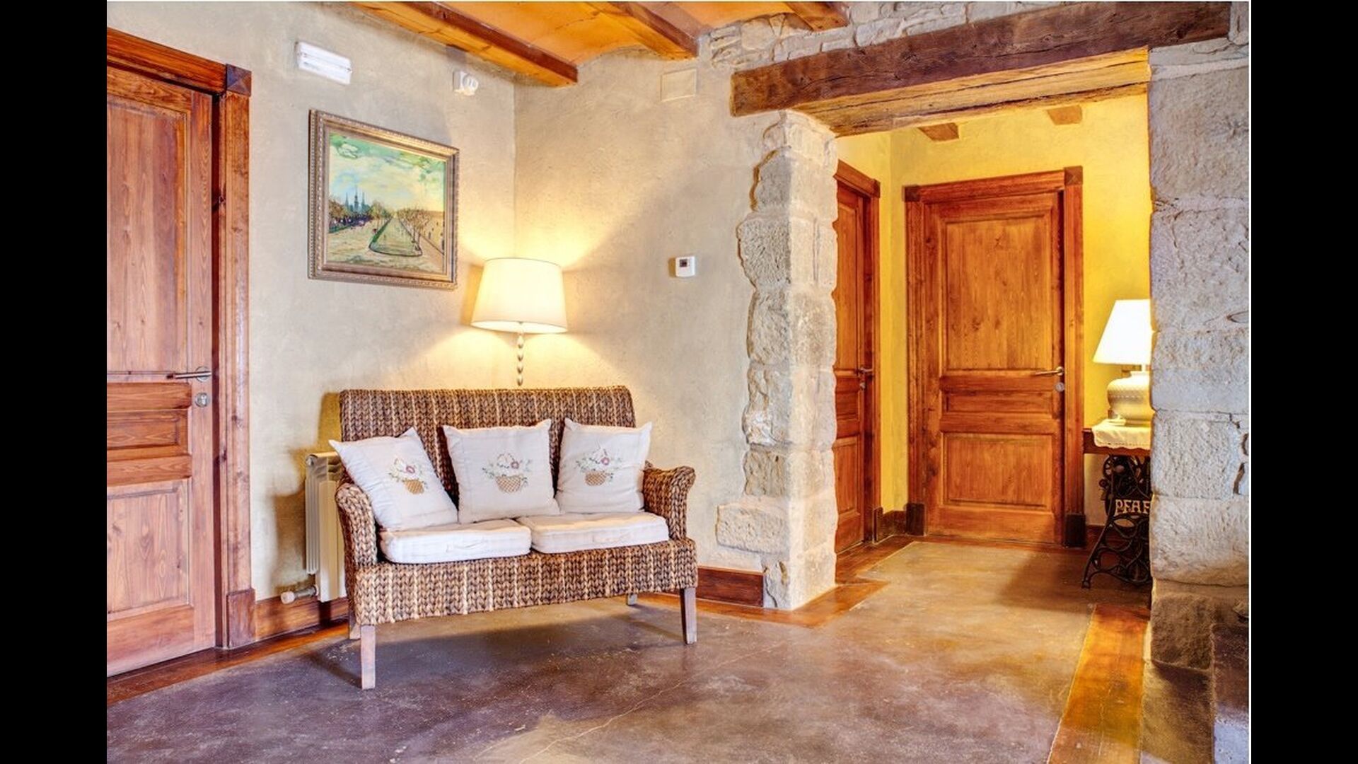Los 450 m2 en total divididos en tres plantas han sido renovados respetando el estilo rústico y ofrecen una cocina totalmente equipada, una hermosa sala de estar curva con chimenea, seis habitaciones dobles y una habitación triple, todas con baño privado. Como se mencionó, hay una piscina cubierta, que permite nadar durante todo el año.
