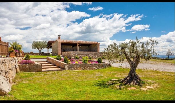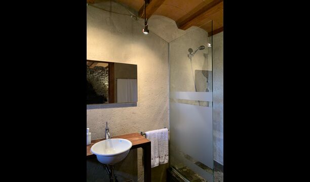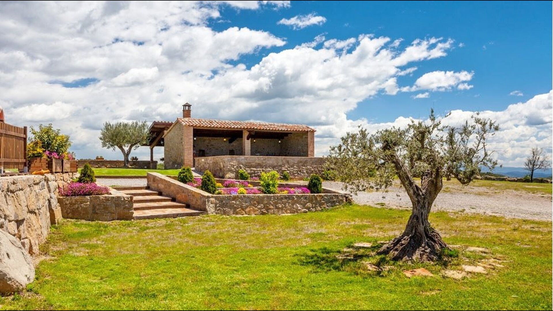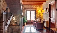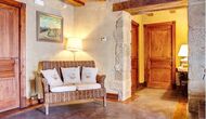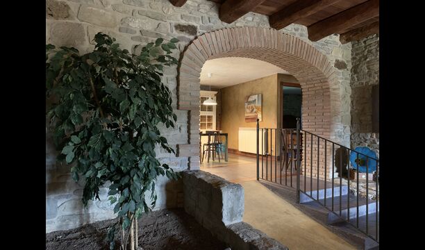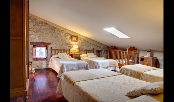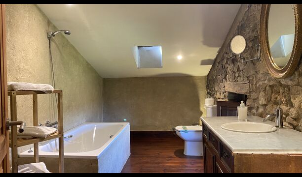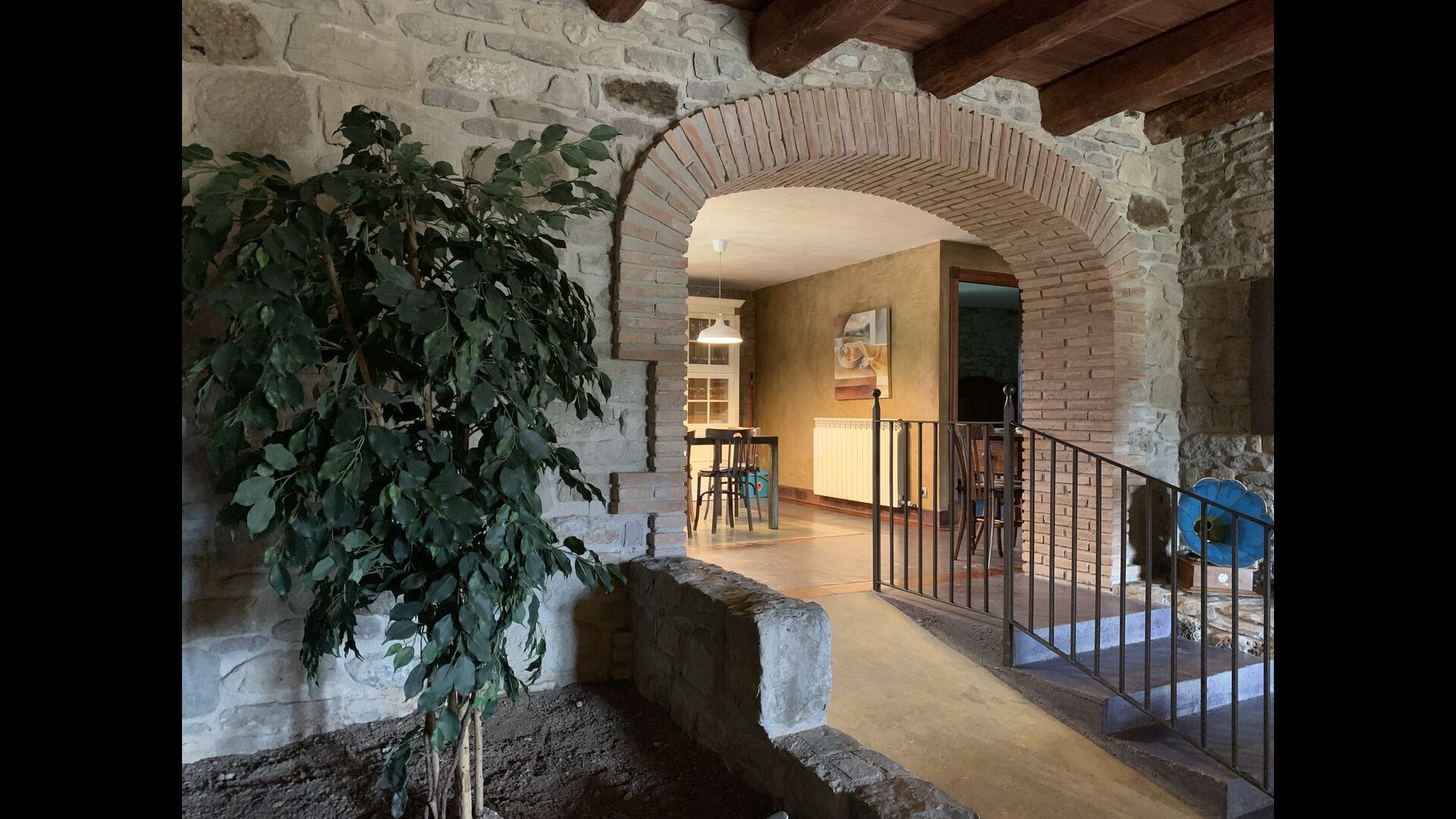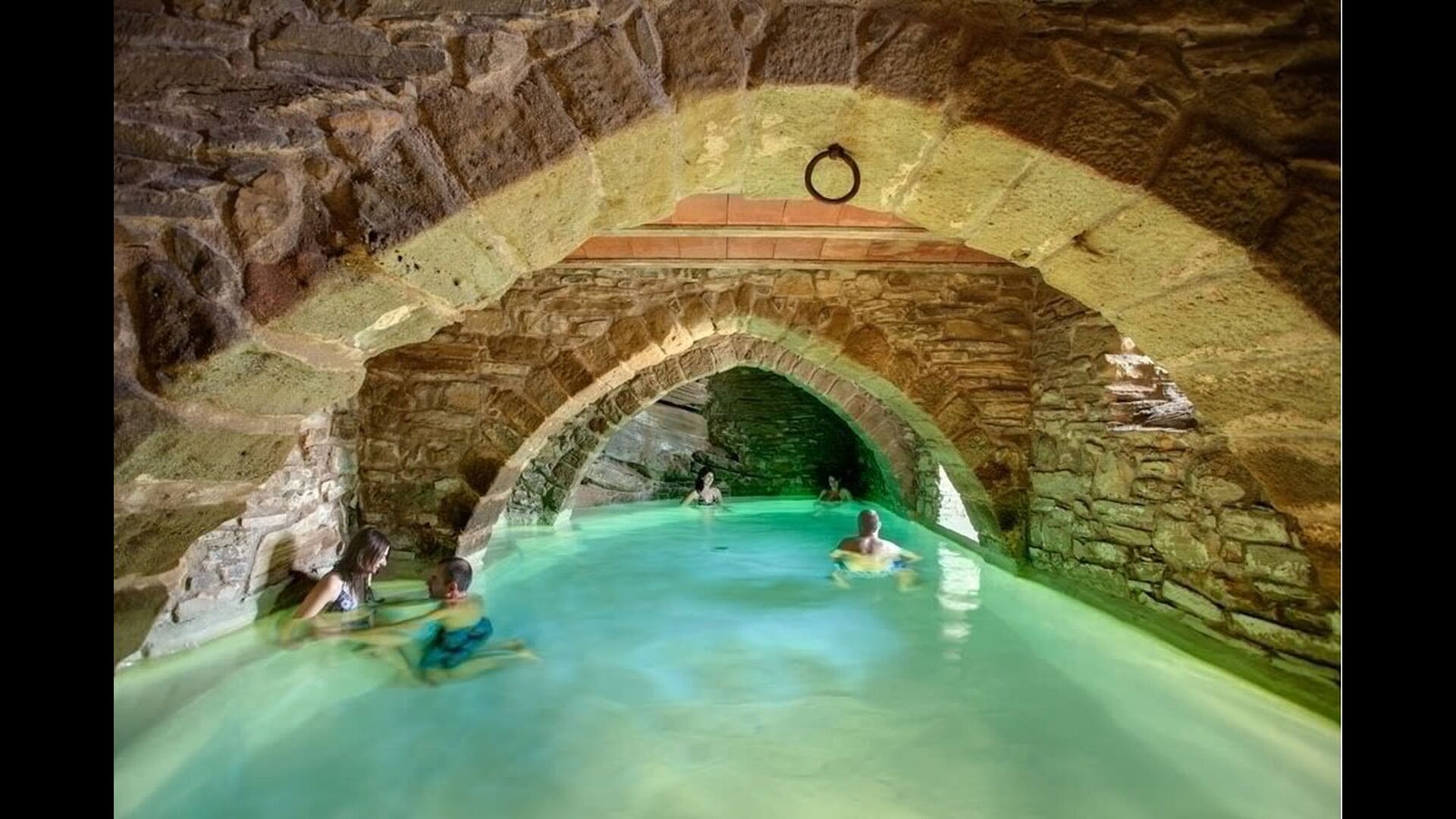 Los 450 m2 en total divididos en tres plantas han sido renovados respetando el estilo rústico y ofrecen una cocina totalmente equipada, una hermosa sala de estar curva con chimenea, seis habitaciones dobles y una habitación triple, todas con baño privado. Como se mencionó, hay una piscina cubierta, que permite nadar durante todo el año.