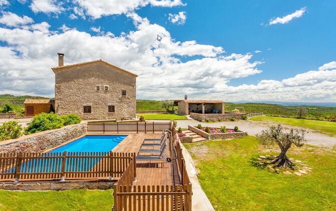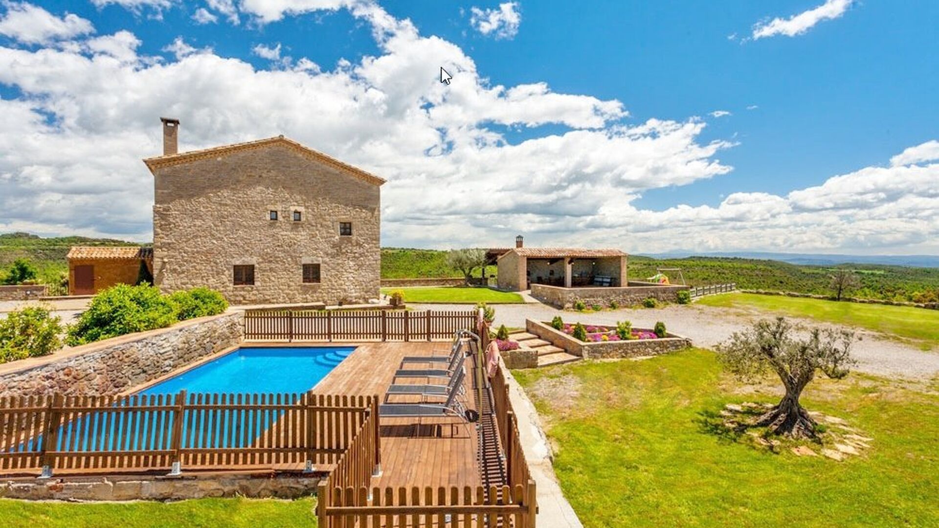 Casa Torres es una hermosa casa de piedra caliza del siglo XV, situada en una colina con vistas panorámicas a los Pirineos. El detalle más impresionante es la piscina cubierta que está rodeada de muros de piedra en el piso inferior de la casa, una solución única. En 2010, se agregó una piscina al aire libre a las numerosas instalaciones de la casa. Está cercado para la protección de niños pequeños.