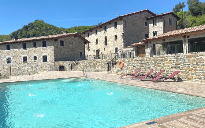 Con Can de Batiña, Eva y su familia han hecho un trabajo impresionante al transformar una casa de piedra en desuso en una fantástica casa de vacaciones con un estándar que pocas casas pueden igualar. . Y por no hablar de la situación en las montañas de Olot, solo se ven cimas de montañas, campos verdes, solo podemos recomendarte que vengas a pasar tus merecidas vacaciones en este apacible entorno.