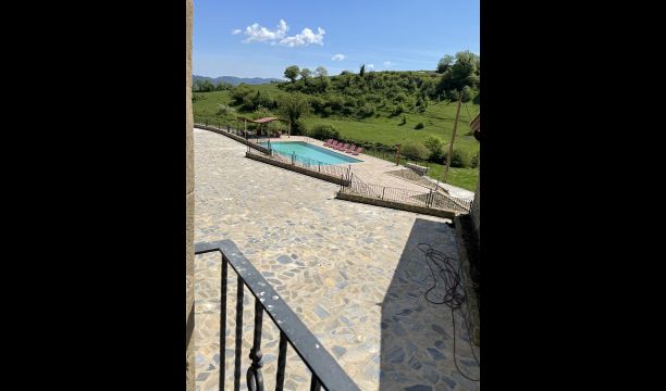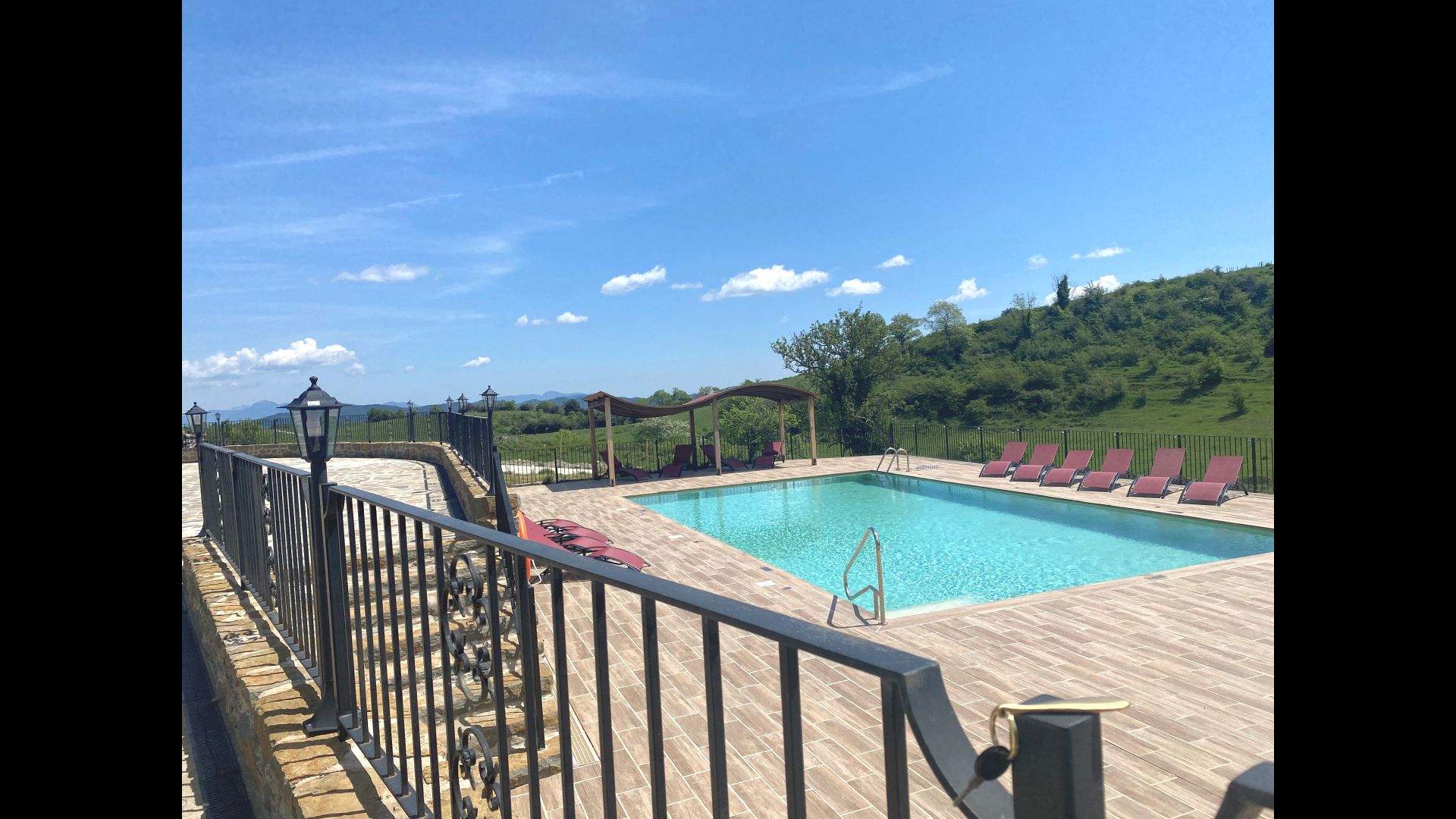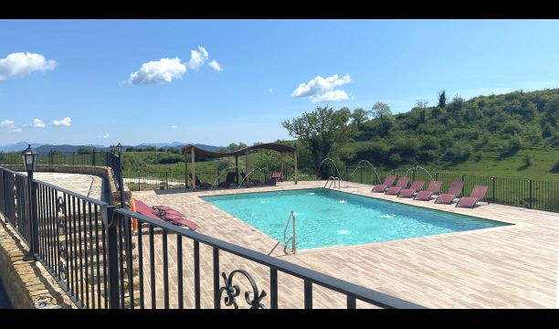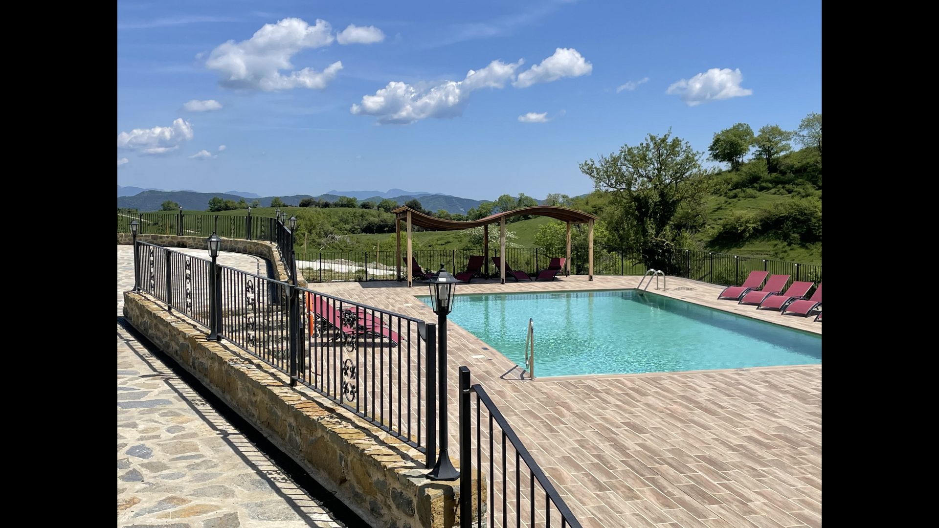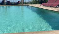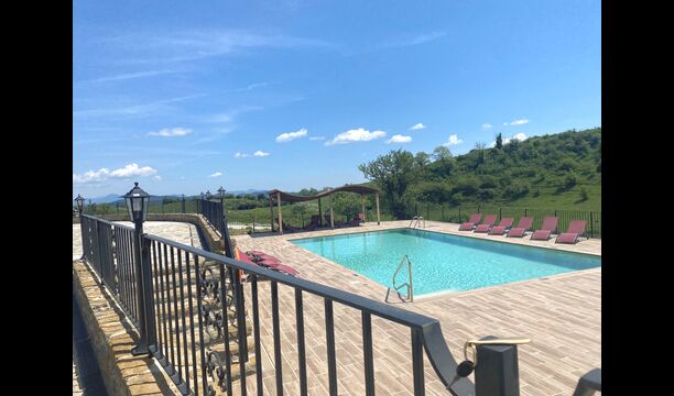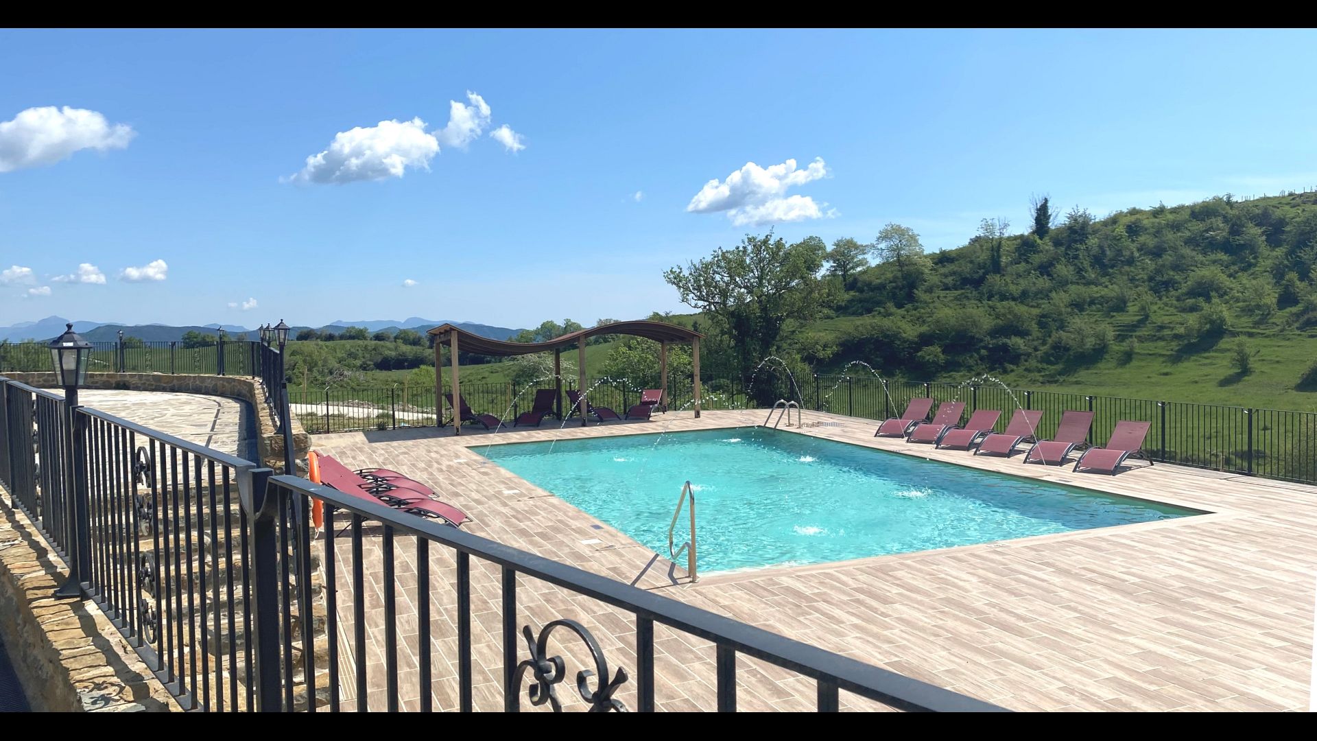 La gran zona de la piscina es el punto natural de relajación. Hay un montón de tumbonas, y si hace demasiado calor, puede darse un baño en la gran piscina de 12 x 7 metros, o puede beneficiarse de la sombra bajo la pérgola al final de la piscina.