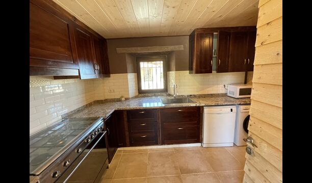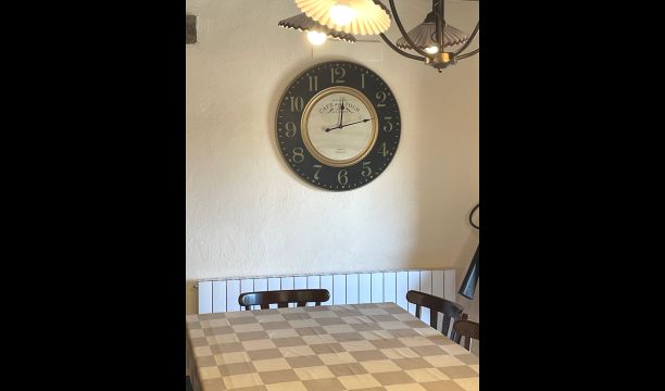 En la primera planta hay una cocina muy grande, muy bien equipada con lavavajillas, vitrocerámica, horno, microondas</strong >, una nevera triple y mucho más. En la misma sala grande, hay una mesa de comedor larga para que podáis comer todos juntos.