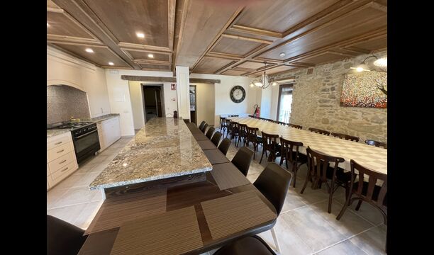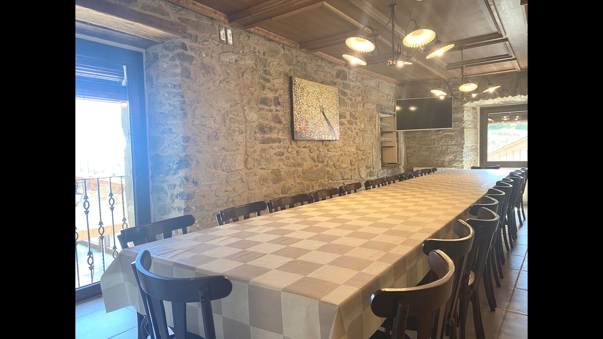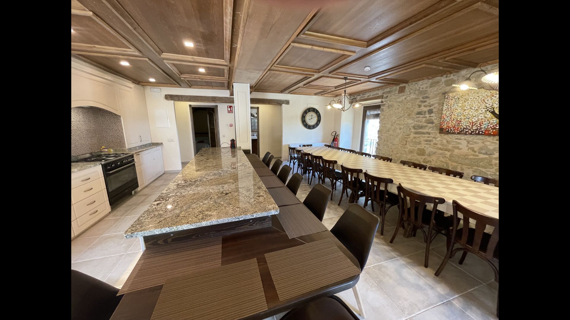 Previo suplemento, se puede alquilar el salón para celebraciones, que además está equipado con cocina de catering completa y cámara frigorífica. Can de Batiña es ideal para celebraciones, ya que Eva también puede ofrecer alojamiento adicional en su otra casa de vacaciones Cal Frexadeñas y en sus apartamentos en Coromina. Para bodas, la entrada que es un poco como una capilla también es ideal para esto.