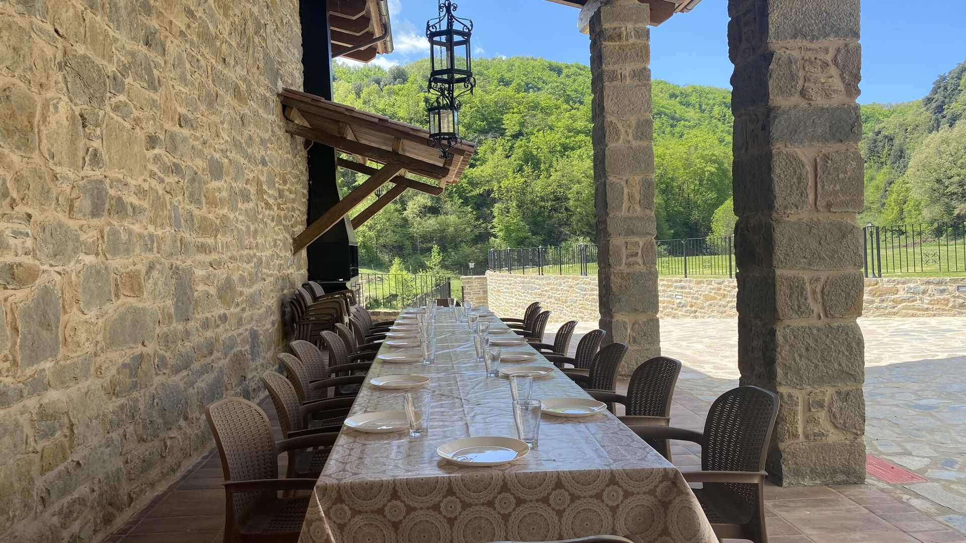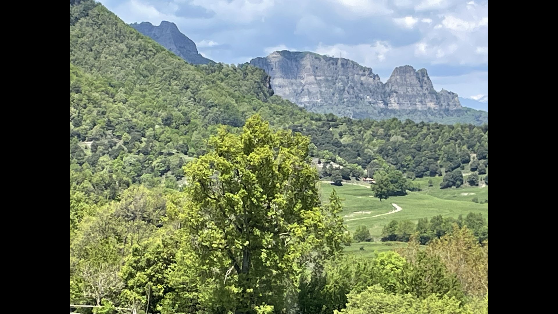 Mima tus sentidos y disfruta de la impresionante vista de las montañas hasta finales de mayo, incluso algunas cimas aún con nieve, acompañadas del silencioso silbido del pequeño arroyo que pasa debajo la casa, los pájaros y las abejas, y en la distancia las campanas acogedoras de las vacas de Eva más arriba en la colina. Todo ello, mientras el caliente sol catalán y la brisa de la montaña llenan de confort la vida.