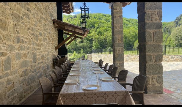 A pesar de la situación remota, la buena y carretera sinuosa de la montaña te llevará sorprendentemente rápido al primer pueblo con varios restaurantes en solo 15 minutos. E incluso la capital regional Olot con un animado centro de la ciudad, restaurantes y un mercado semanal está a solo 30 minutos.