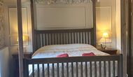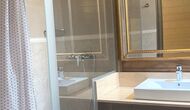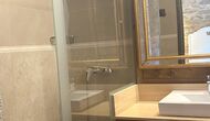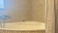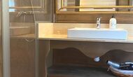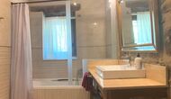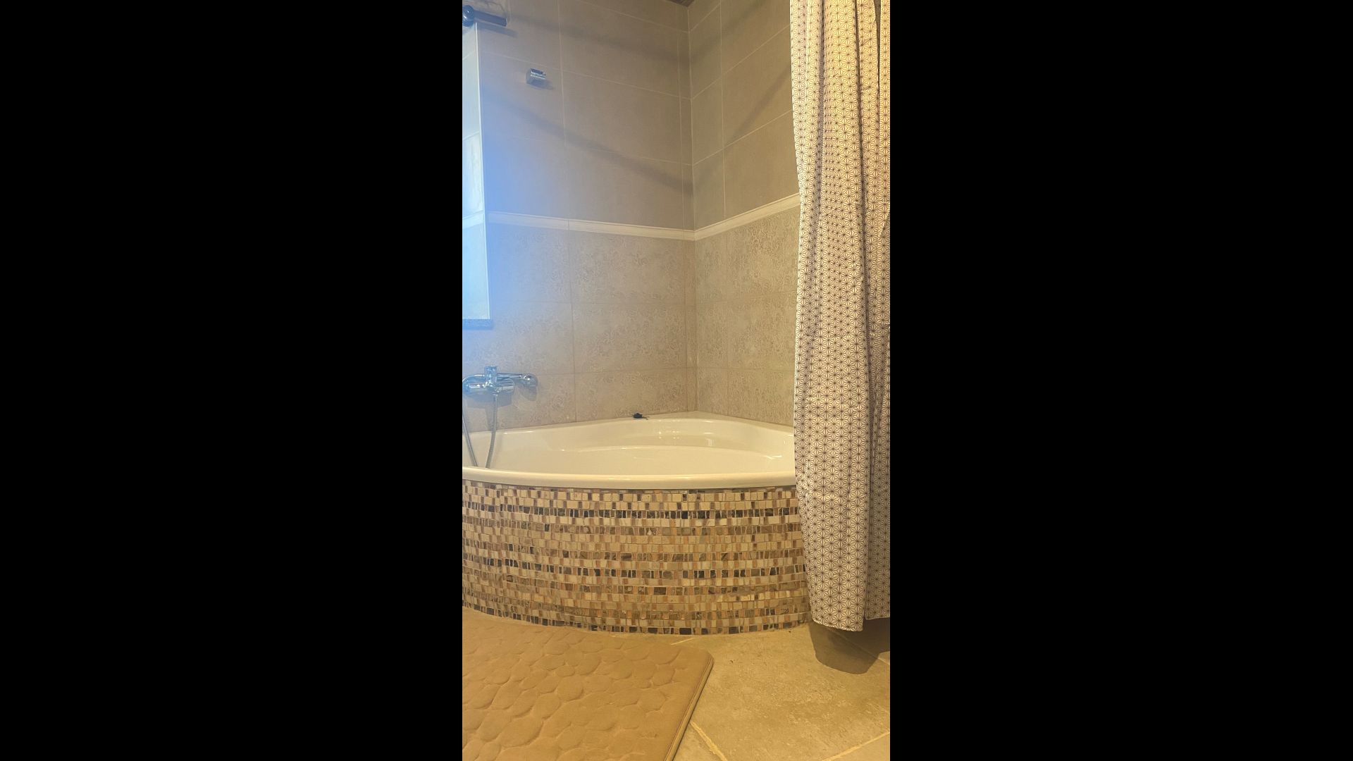 En el pasillo de la cocina hay un área de dormitorio doble con vista a la piscina y un baño con bañera. En el otro extremo hay un dormitorio con una cama doble y una (sofá) cama individual. Este dormitorio tiene un balcón con vista al patio y un baño con bañera.