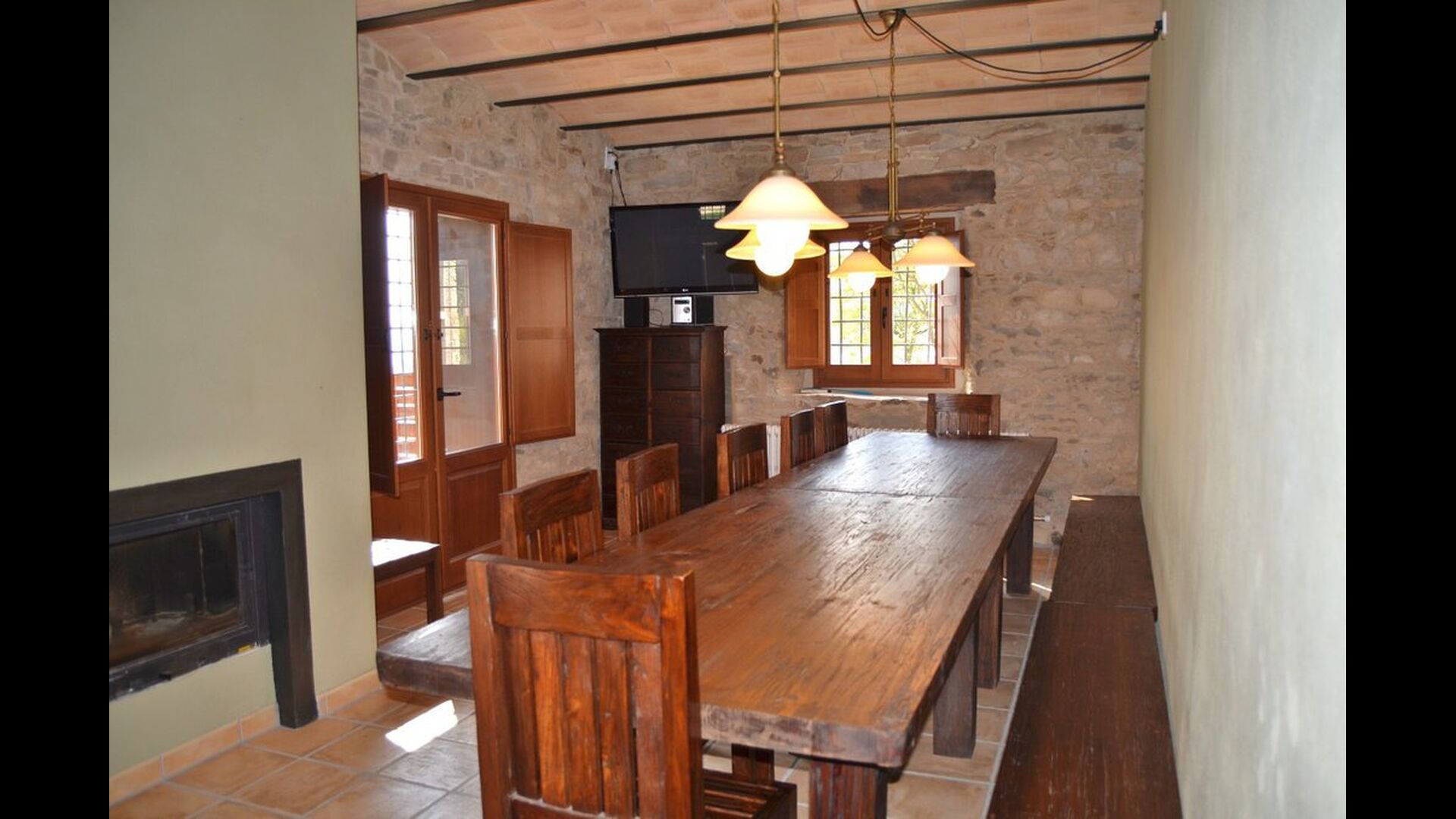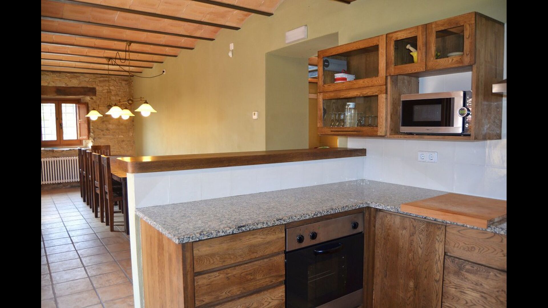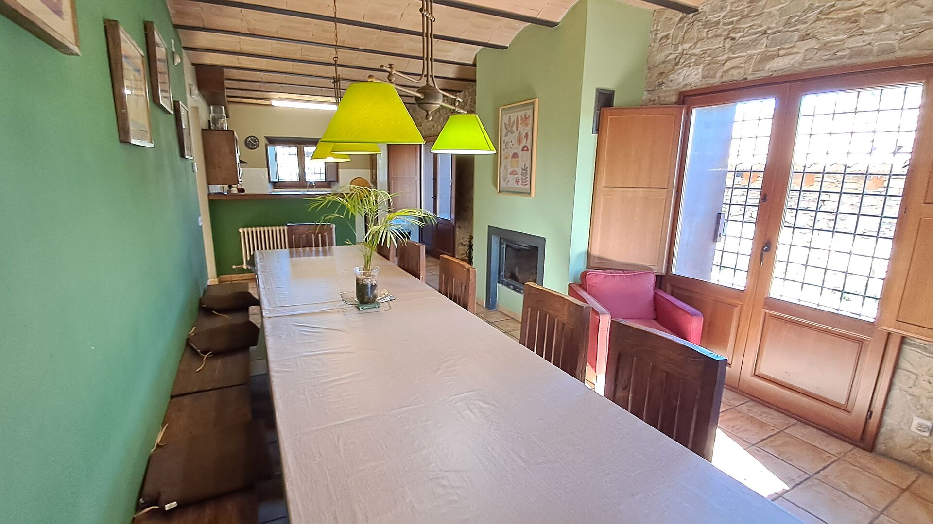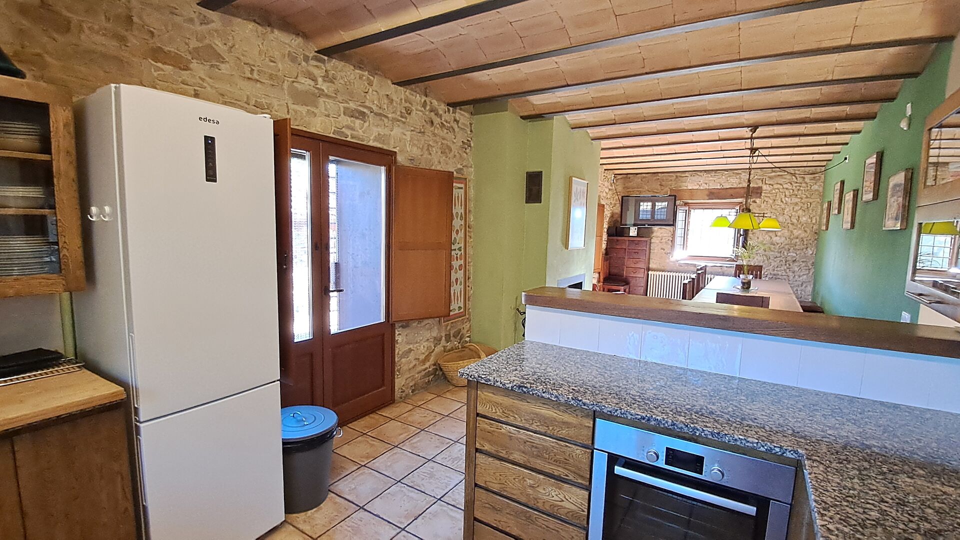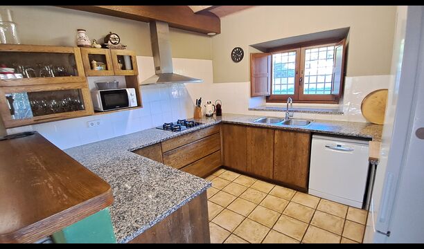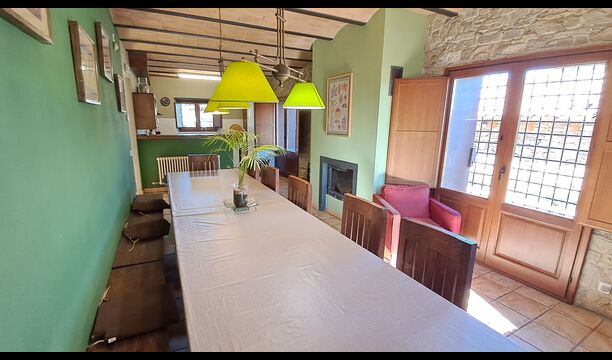 En la planta baja, la cocina está comunicada con la zona de comedor con una larga mesa de comedor y con acceso directo a la terraza exterior cubierta que también dispone de una barbacoa. Es excelente que el grupo pueda estar junto, incluso cuando algunos están en la cocina, otros en la terraza y otros en la parrilla.
