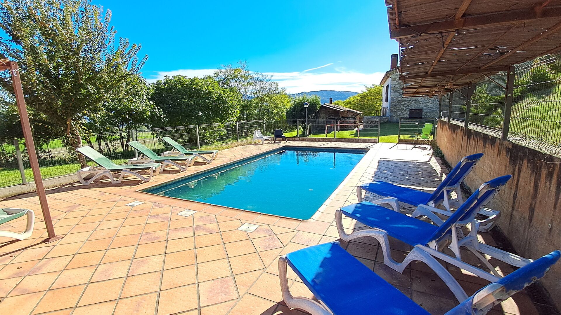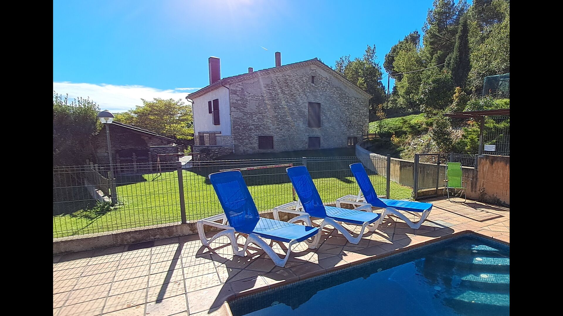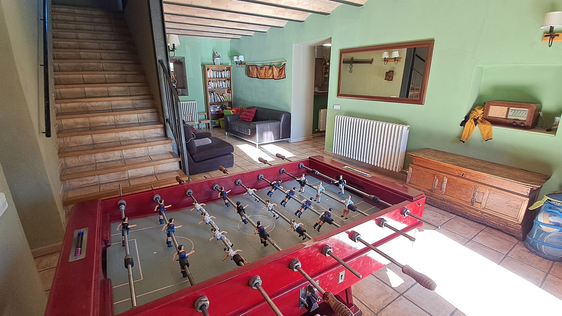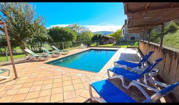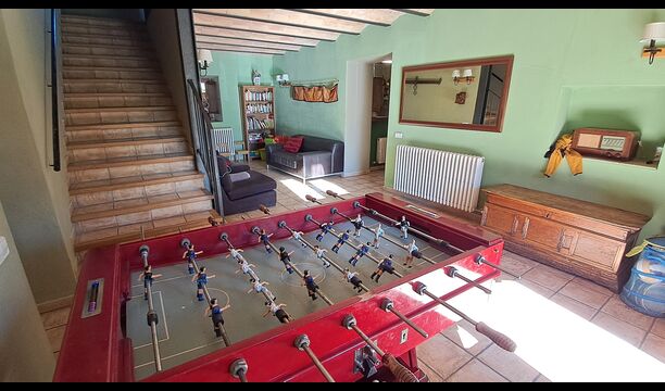 Desde la terraza, puede ver el área de la piscina al otro lado del jardín. Al cruzar el jardín entrarás en la zona de la piscina, donde podrás disfrutar del sol en las numerosas tumbonas, o darte un chapuzón. En general, esta casa es perfecta para familias con niños o grupos que buscan un lugar tranquilo pero bien comunicado. La casa dispone de ping-pong, futbolínl y conexión a internet.