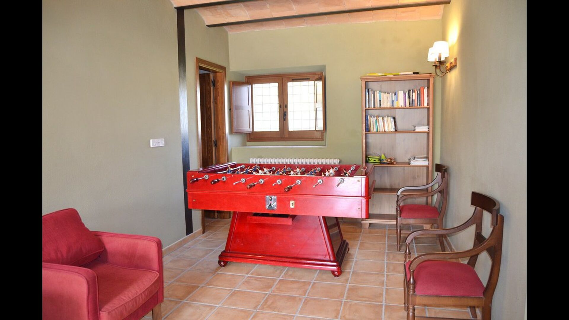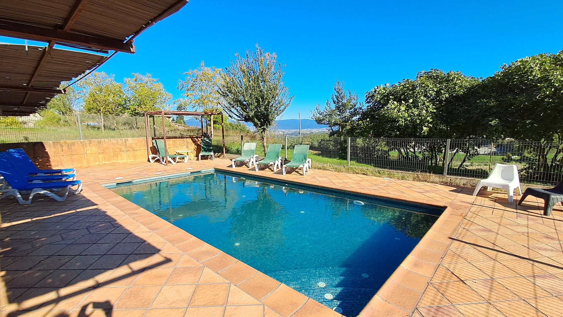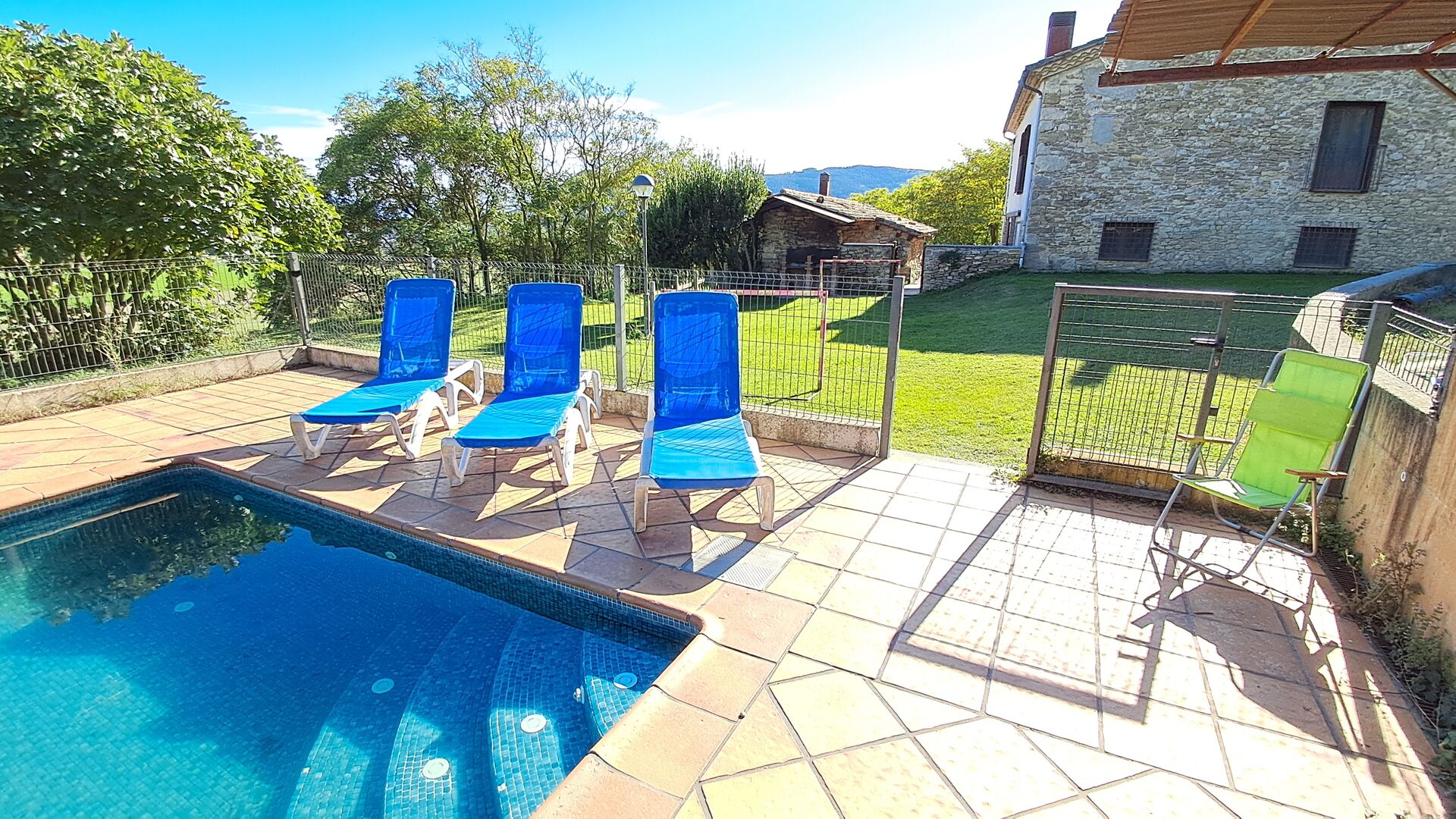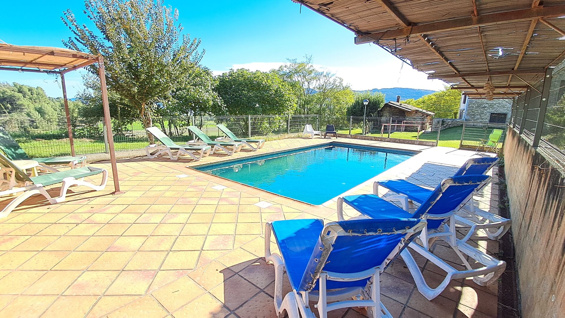 Desde la terraza, puede ver el área de la piscina al otro lado del jardín. Al cruzar el jardín entrarás en la zona de la piscina, donde podrás disfrutar del sol en las numerosas tumbonas, o darte un chapuzón. En general, esta casa es perfecta para familias con niños o grupos que buscan un lugar tranquilo pero bien comunicado. La casa dispone de ping-pong, futbolínl y conexión a internet.