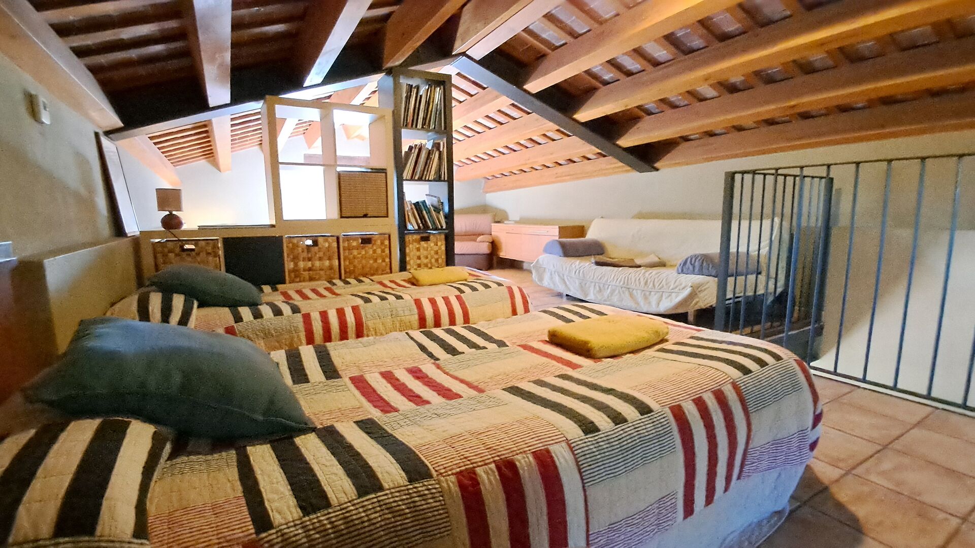 La casa tiene 6 dormitorios modernos. Un dormitorio está ubicado en la planta baja con el baño al lado, por lo que también puede ser utilizado durante el día por el dormitorio tipo loft del segundo piso. En el primer piso, encontrará 4 dormitorios adicionales, cada uno con baño en suite. Finalmente, el loft del segundo piso está equipado con una cama doble, por lo que sirve como el sexto dormitorio, compartiendo un baño con el dormitorio de la planta baja.