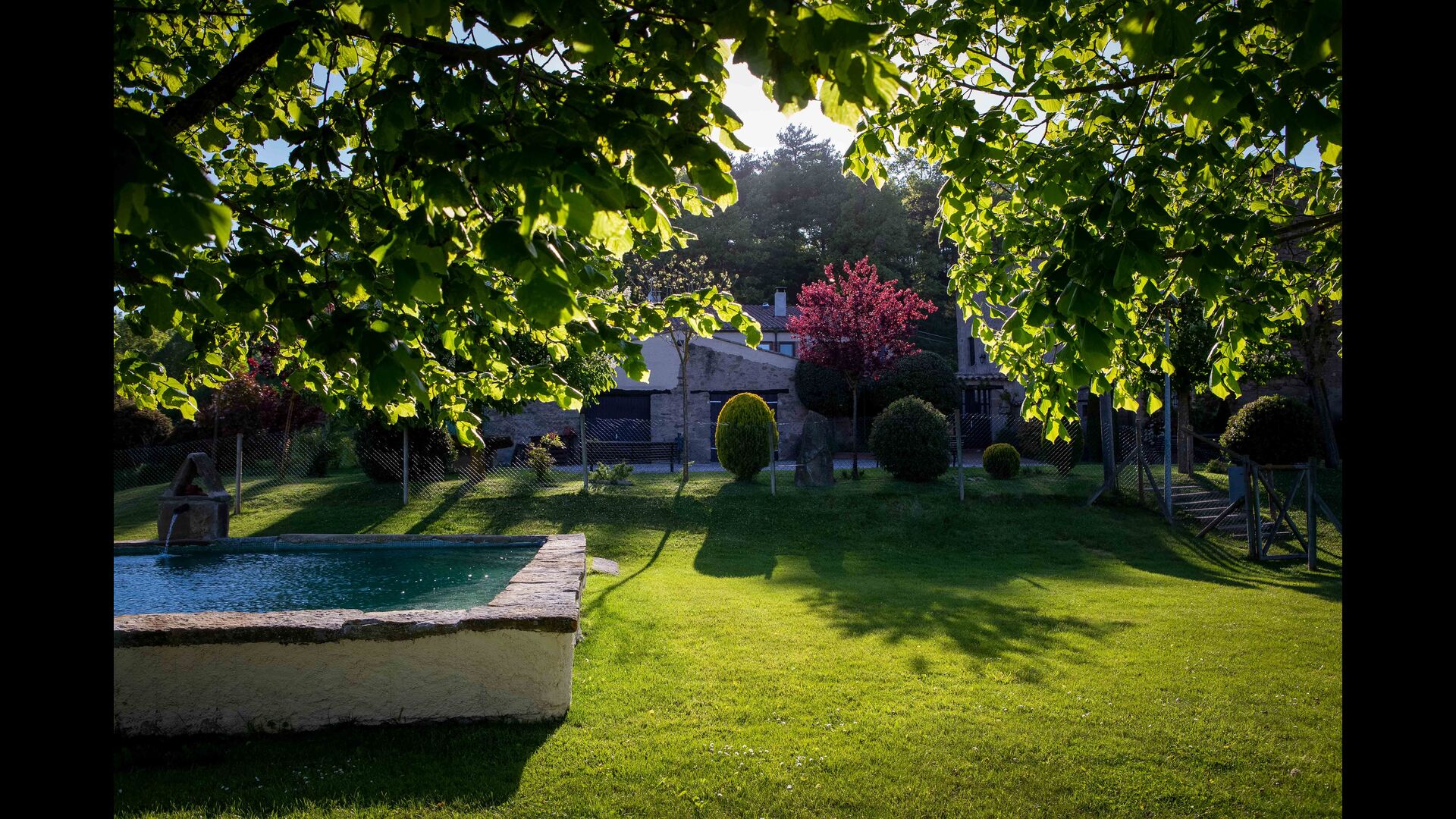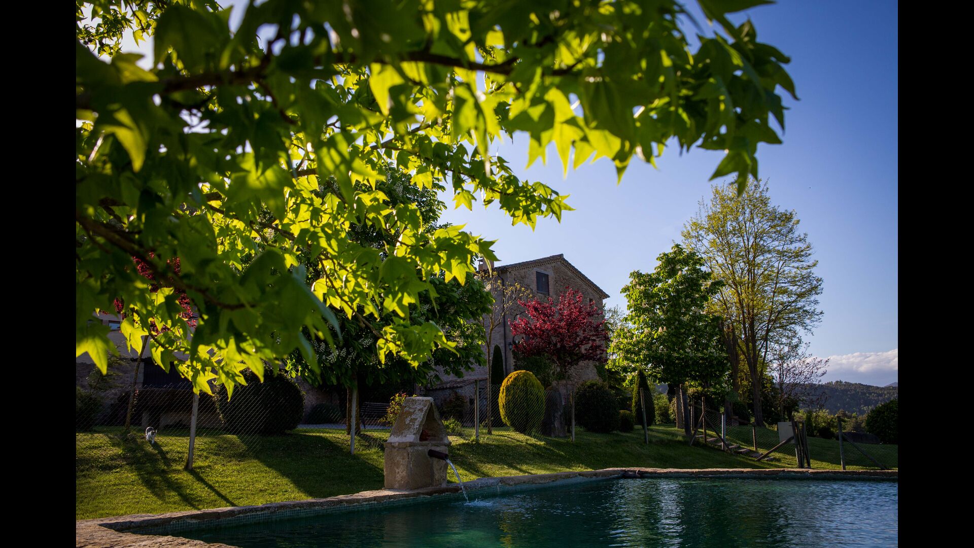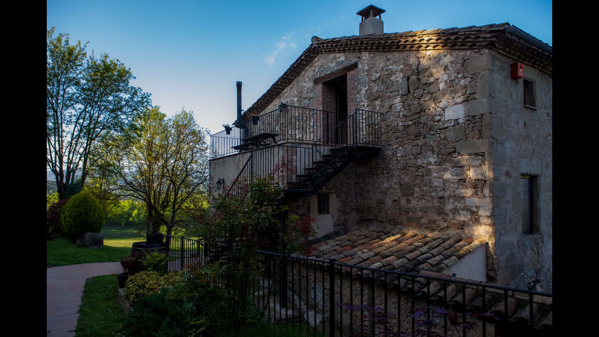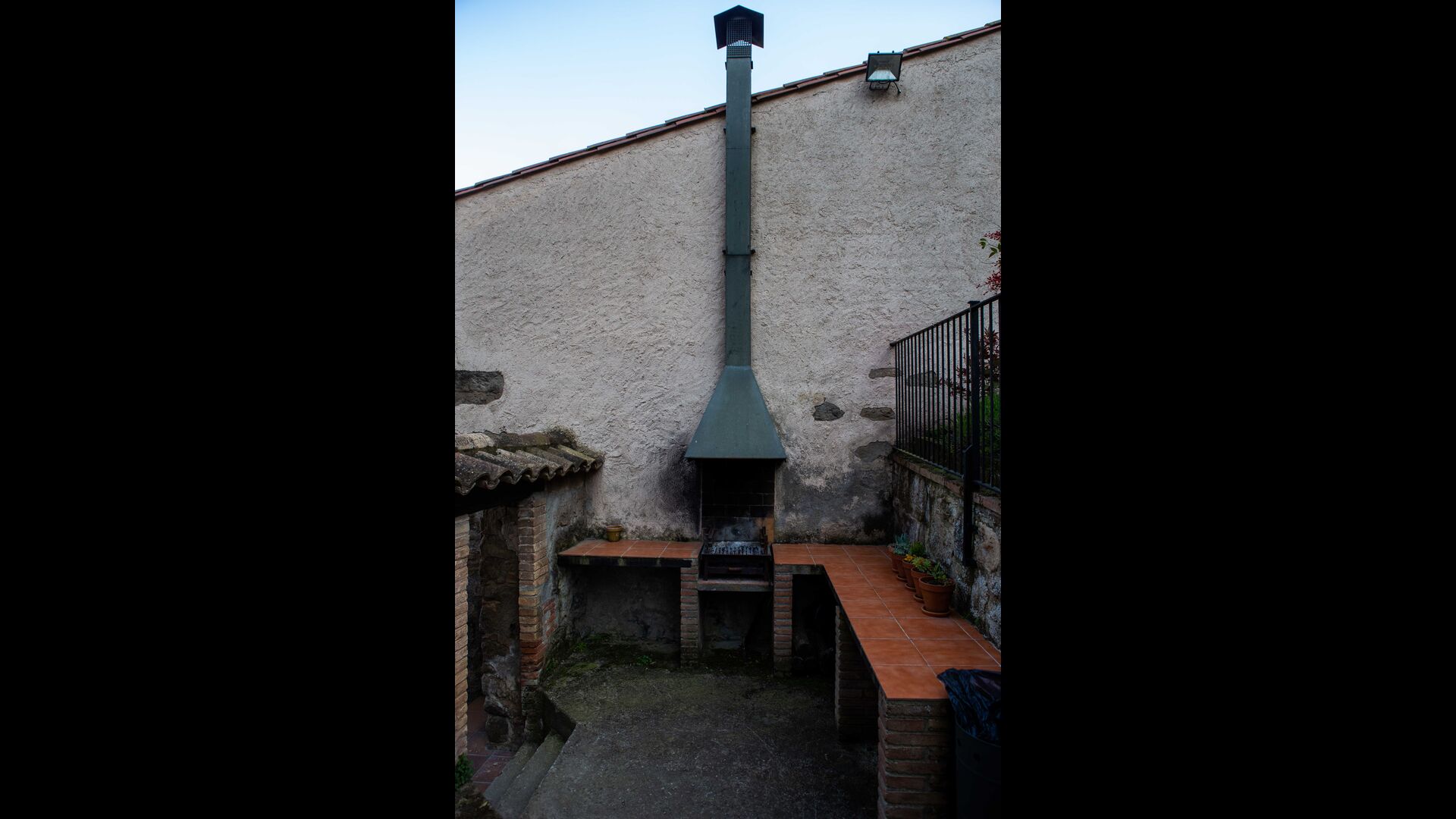 En el exterior, hay un patio con barbacoa, ideal para comer al aire libre. También hay una terraza en el nivel con el piso superior, si prefiere cenar con una vista. La piscina es muy especial. En lugar de construir una piscina tradicional, Joan y Alicia decidieron hacer una piscina, que en mayor medida coincide con la casa y la historia. Por ello, la piscina se ha realizado con rocas y con una pequeña fuente que circula por el agua. Es muy grande (9 x 8 metros) y funciona como una piscina habitual.